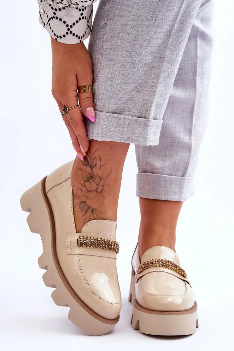 Loafersy Damskie|Mokasyny Płaskie>Laura Messi Modne Mokasyny Na Platformie Z Ozdobą 2600 Beżowe Beżowy