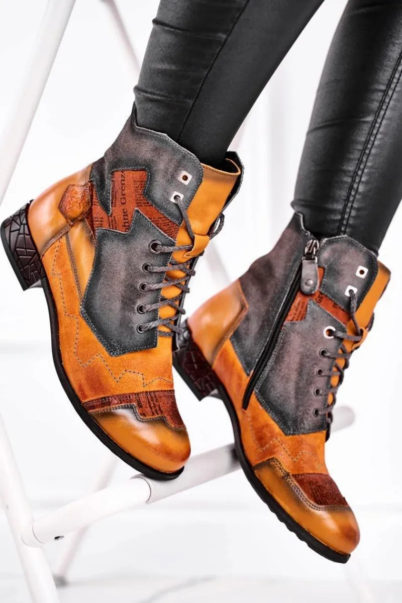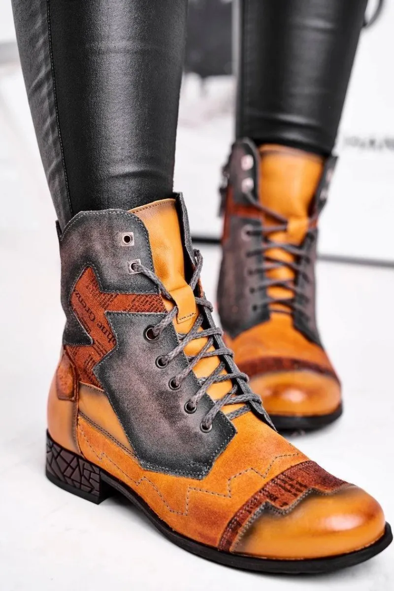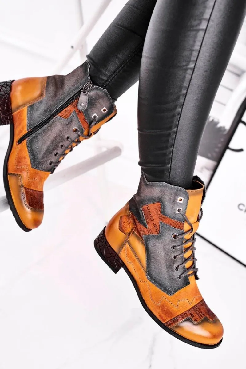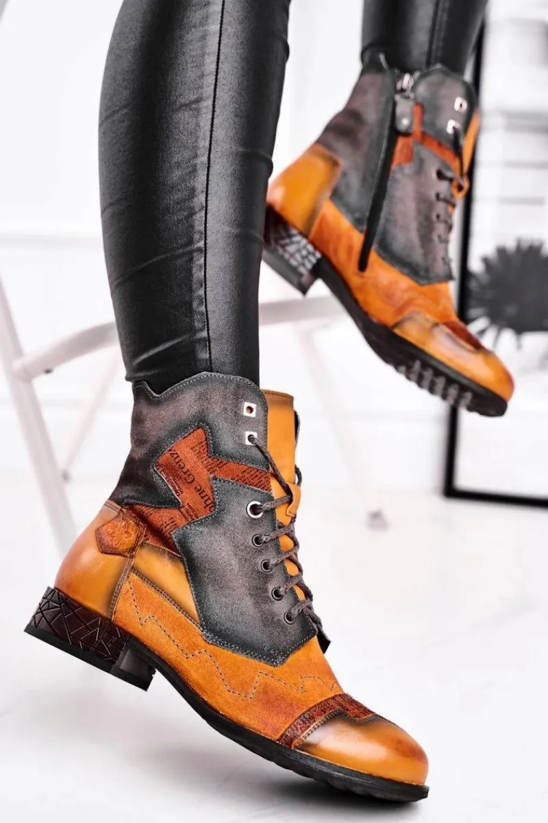 Maciejka Botki Damskie Skórzane Trzewiki Ocieplane Żółte 04625-07