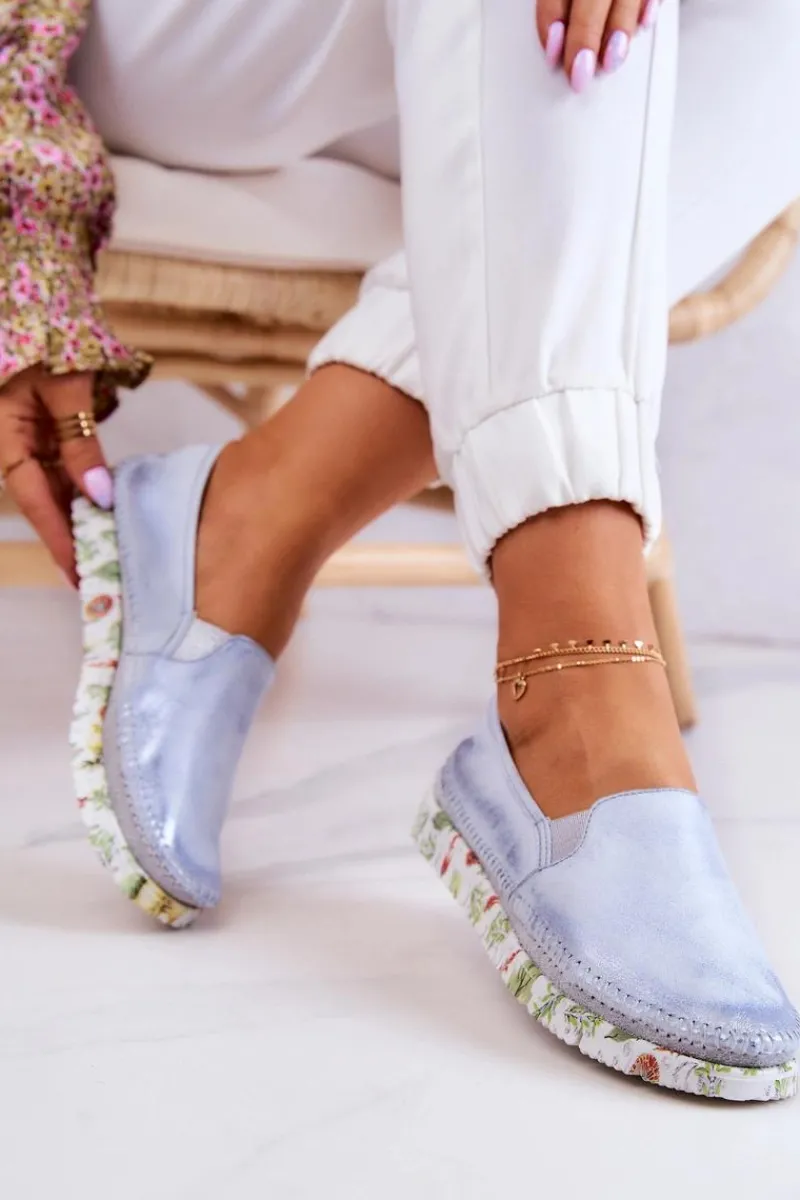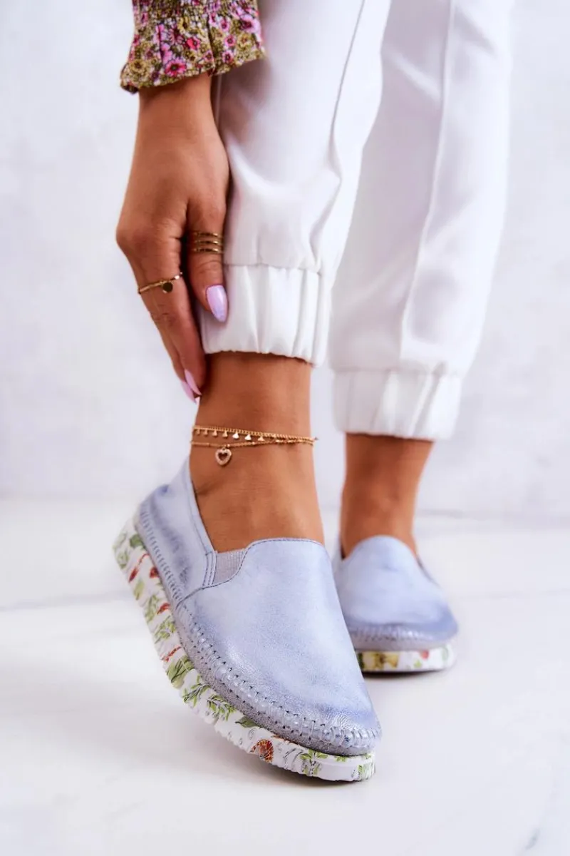 Maciejka Damskie Półbuty Wsuwane Skórzane 03512-40 Jasnoniebieskie
