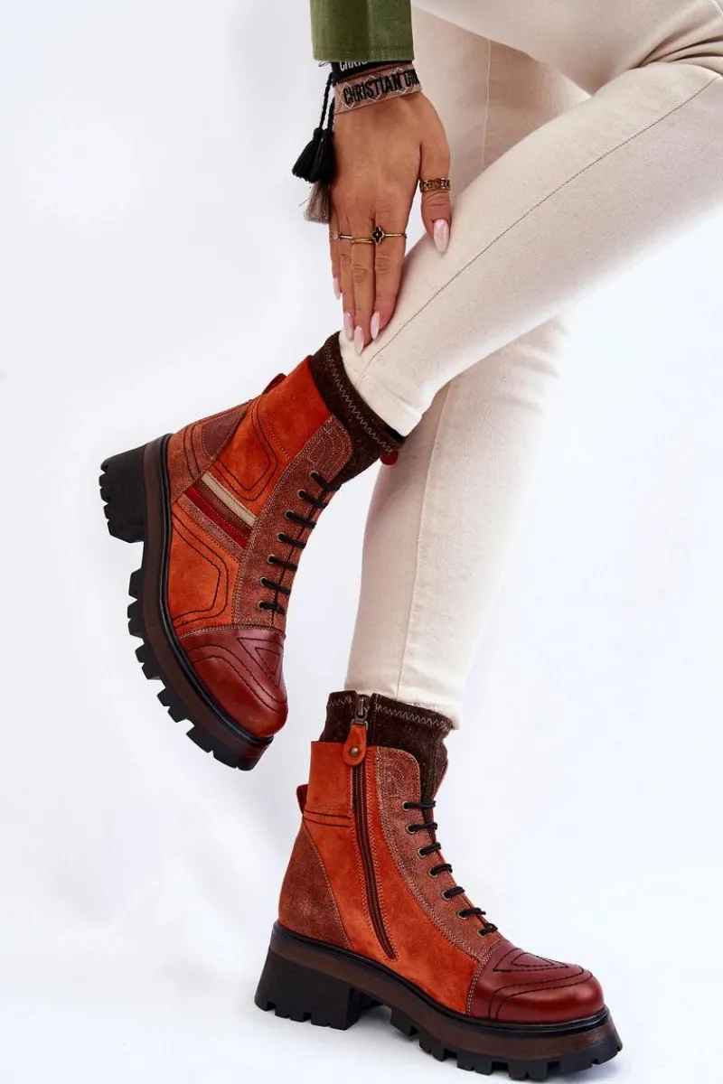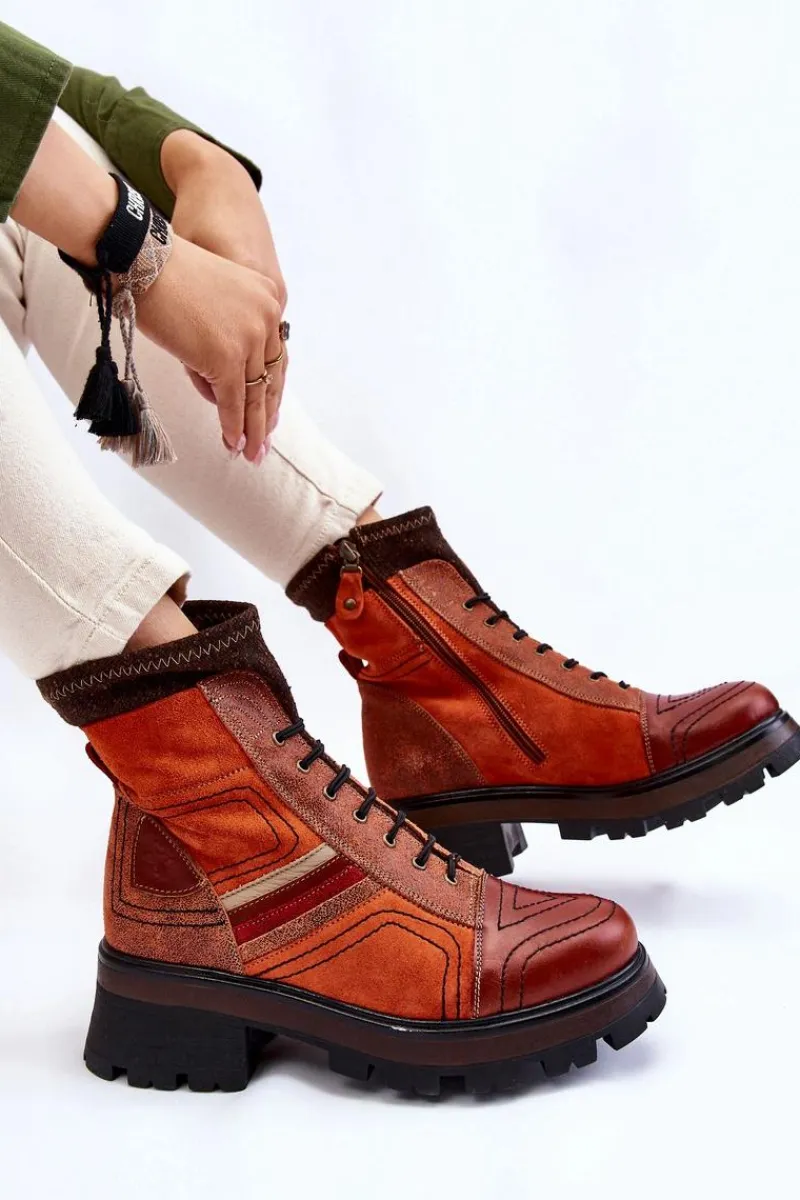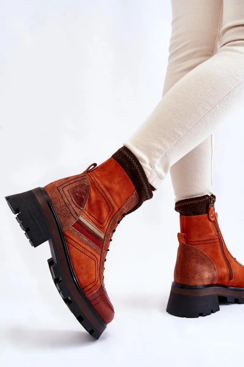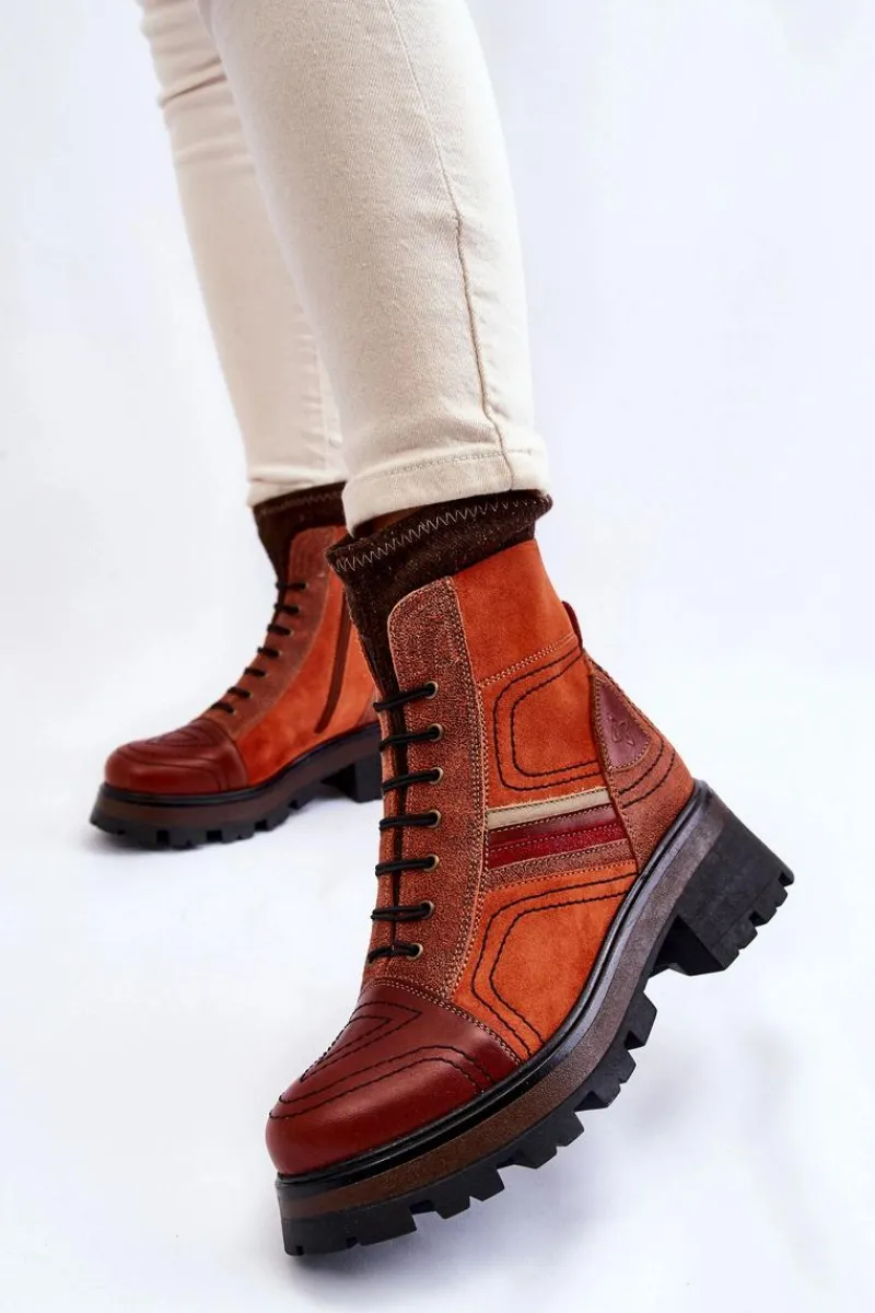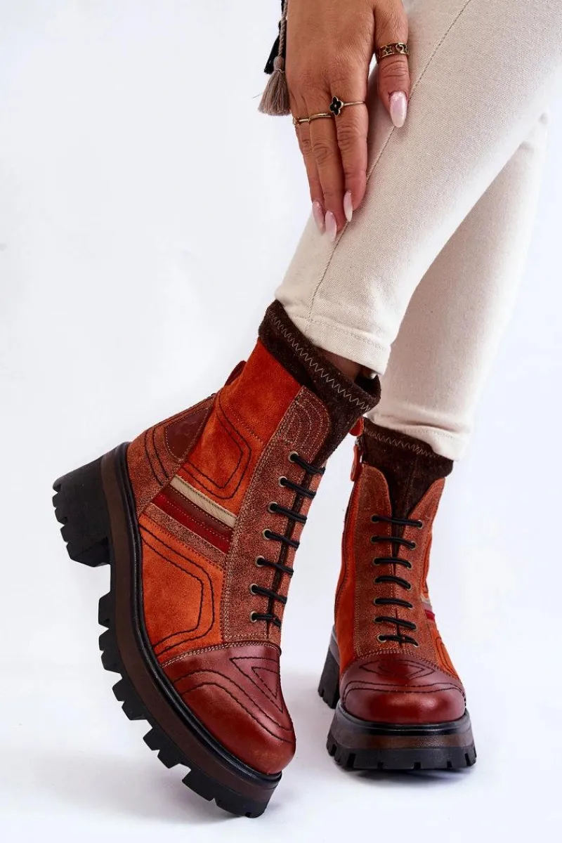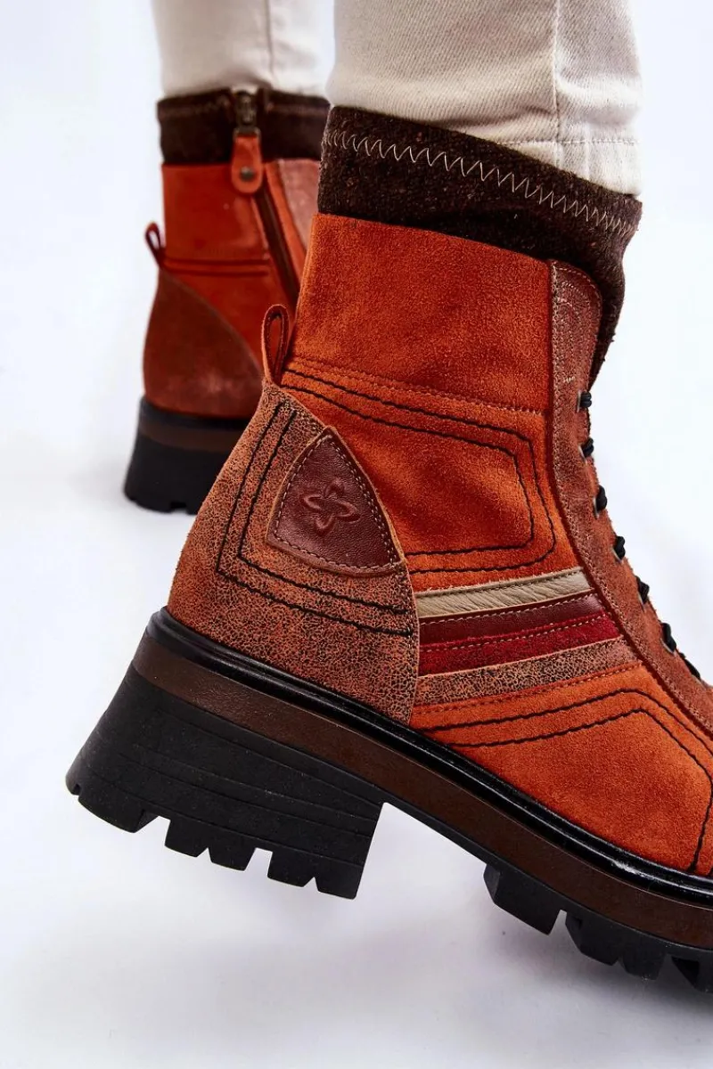 Modne, damskie botki marki Maciejka zostały wykonane z wysokiej jakości naturalnych skór oraz materiału tekstylnego. Posiadają klasyczne suwak z boku cholewki oraz gumki imitujące sznurówki. Model ten posiada usztywniany zapiętek oraz ocieplaną wkładkę. Botki osadzono na płaskim obcasie oraz masywnej platformie z bieżnikiem. Przy wyborze rozmiaru prosimy sugerować się tabelą rozmiarów.
