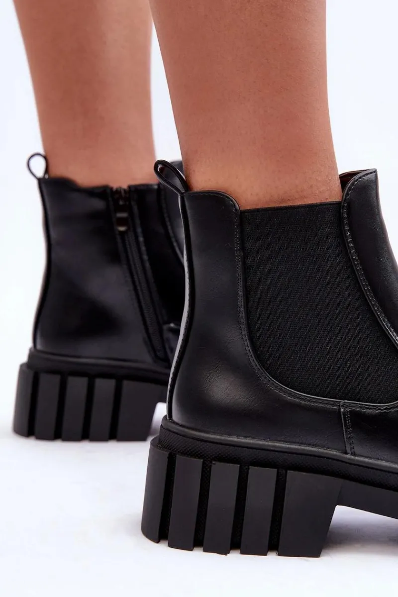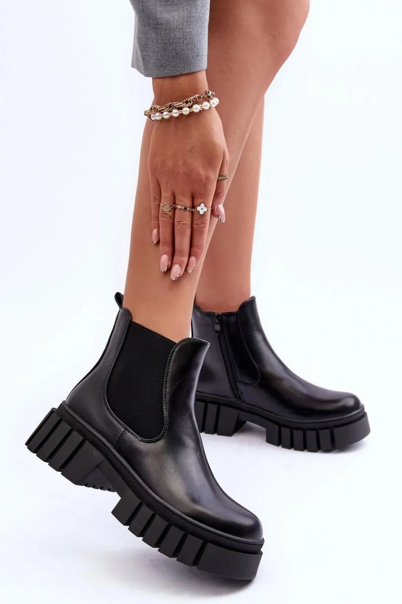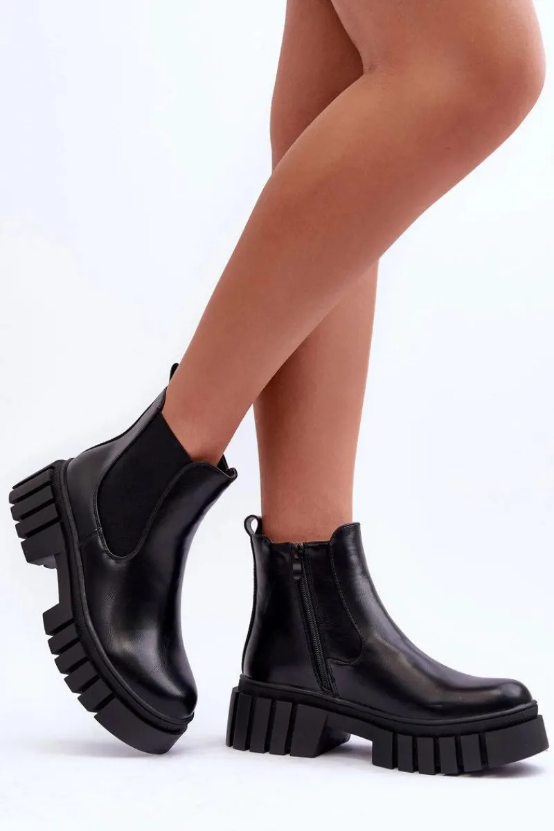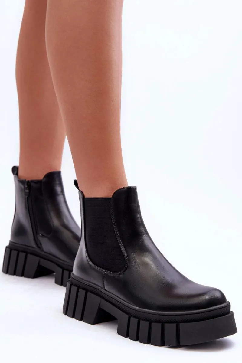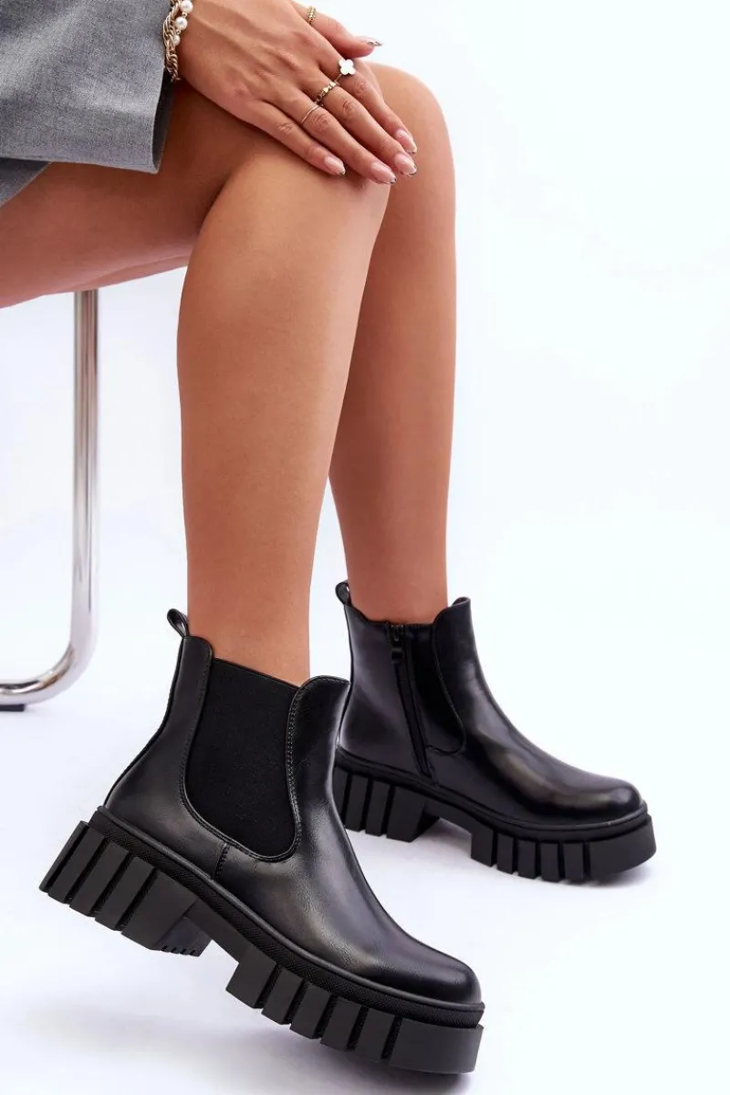Niskie botki damskie zostały wykonane ze skóry ekologicznej. Zapinane na suwak po wewnętrznej stronie buta. Model ten posiada elastyczną wstawkę na cholewce. Osadzone na masywnej platformie oraz płaskim obcasie. Koniecznie sprawdź całą naszą ofertę damskich botków. Przy wyborze rozmiaru prosimy sugerować się tabelą rozmiarów.