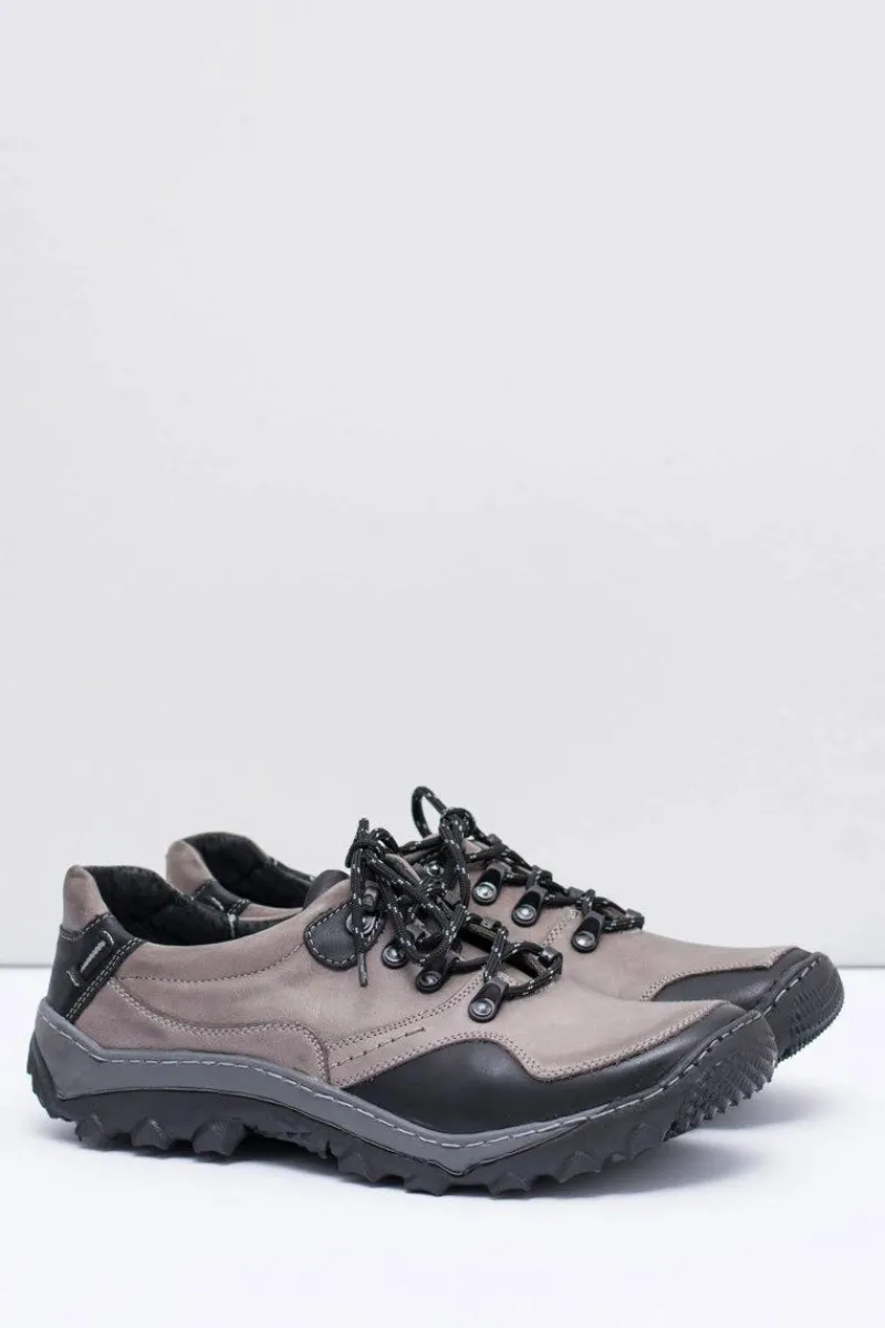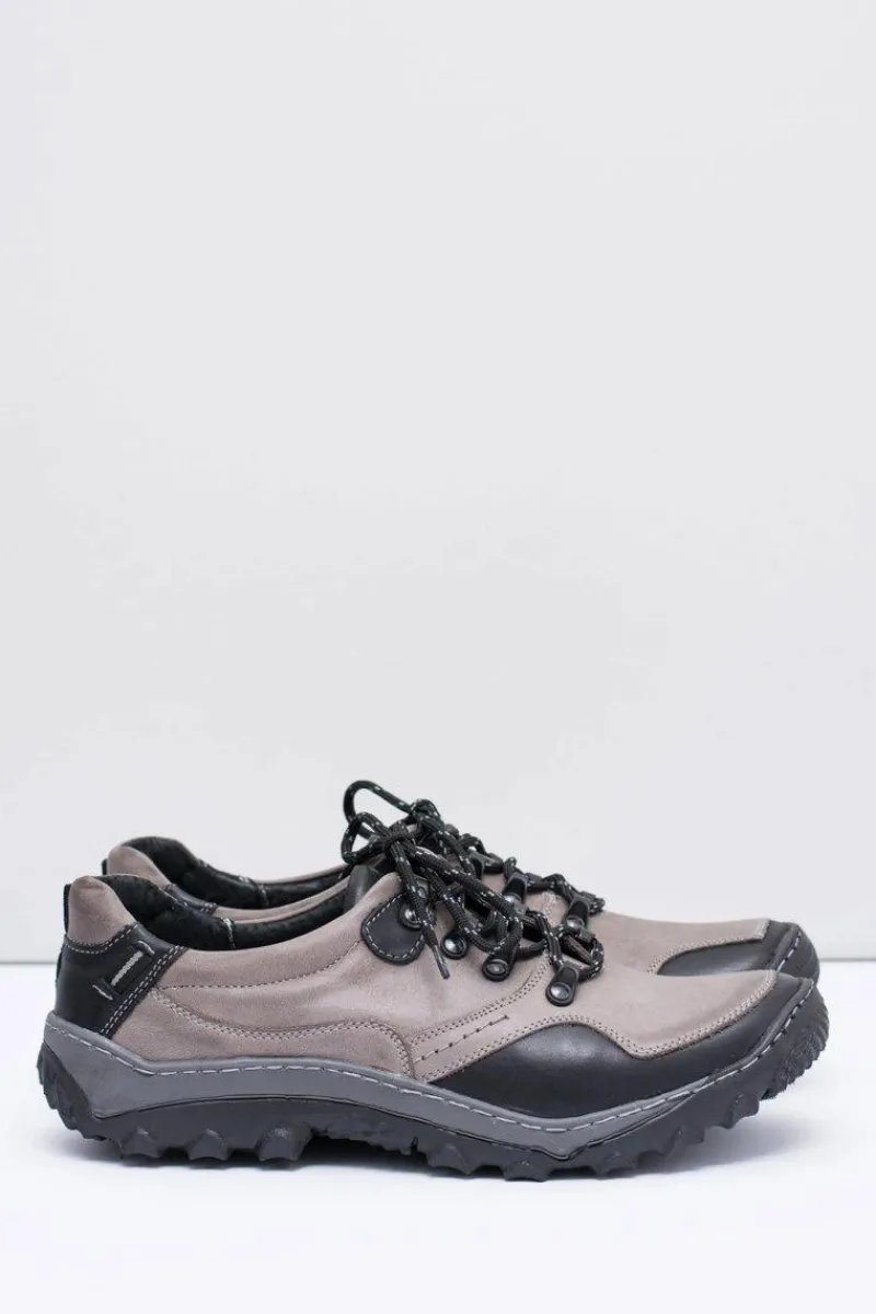 Męskie Skórzane Szare Półbuty Trekkingowe Gretin Męskie Obuwie Trekkingowe Męskie