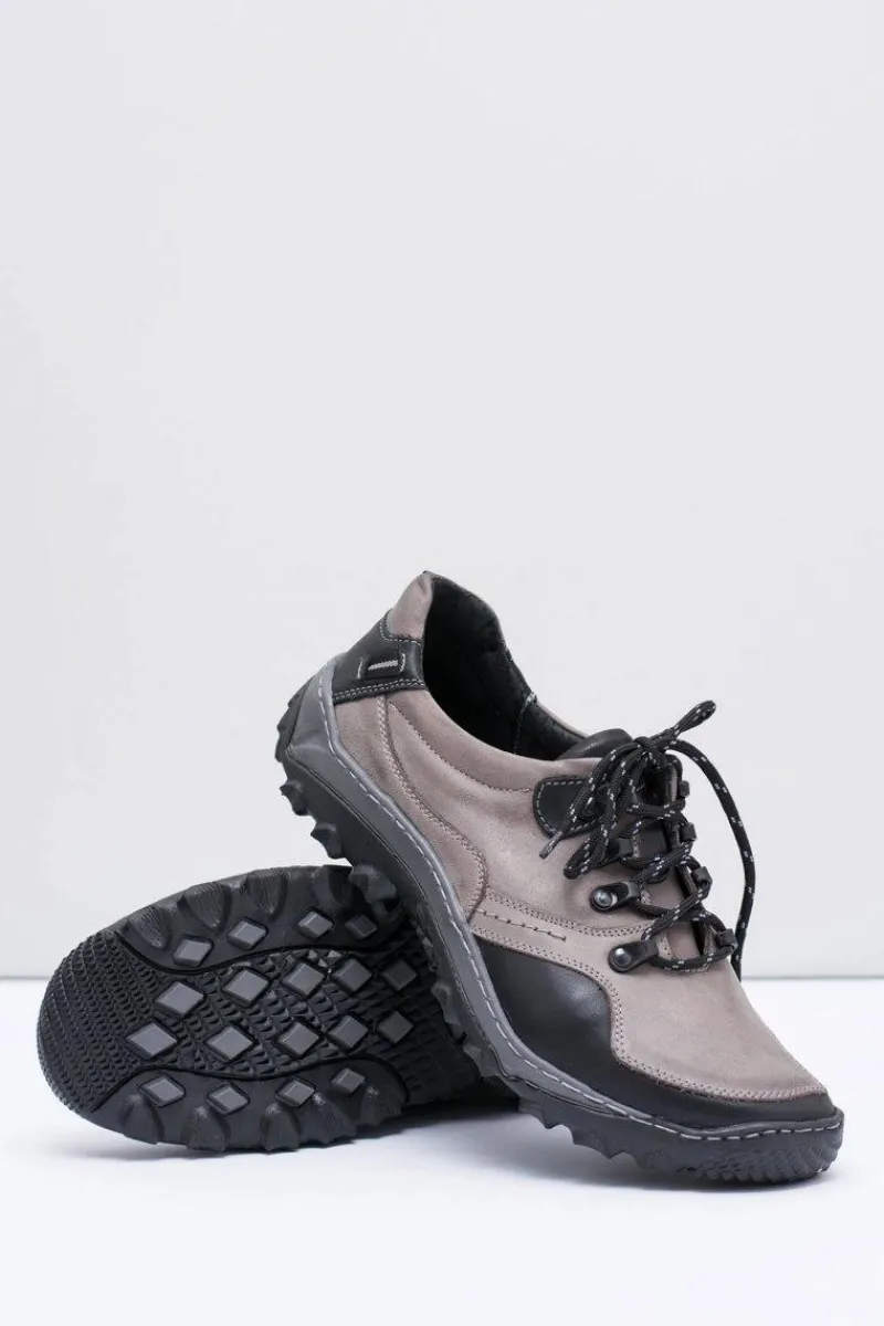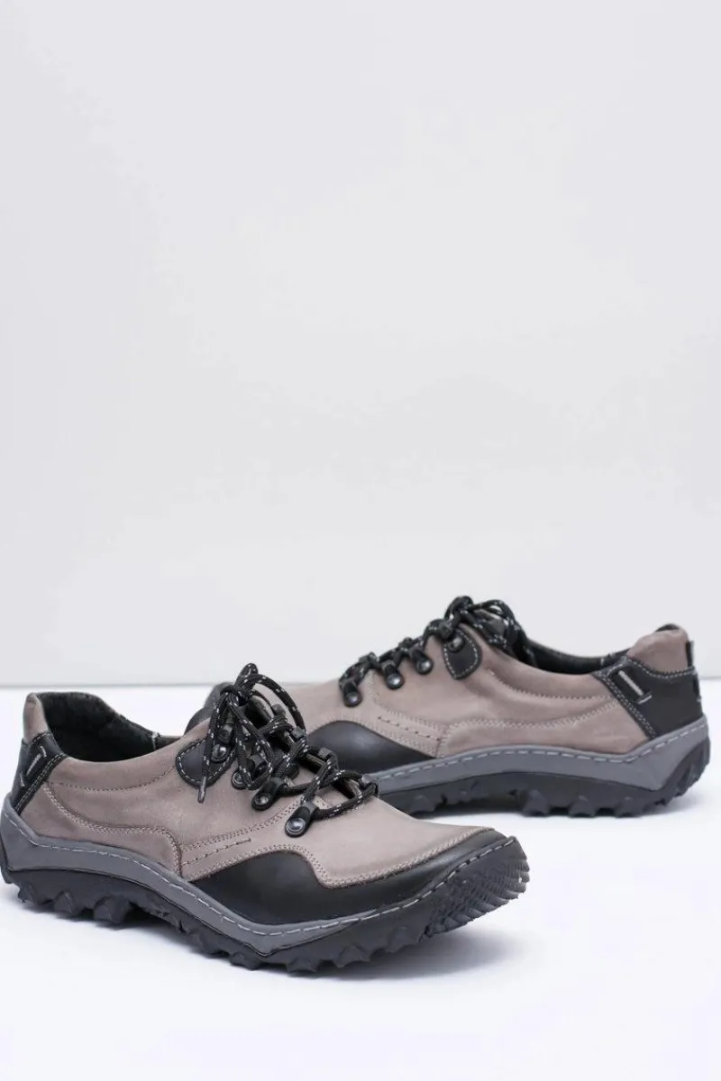 Męskie półbuty trekkingowe o interesującym designie! W całości wykonane z bardzo dobrej jakości skóry naturalnej. Klasyczny wzór nadaje elegancji oraz wpasowuje się w aktualne trendy mody. Solidna podeszwa zapewni nam ochronę na trudnych nawierzchniach natomiast dopasowanie do stopy zapewni solidne sznurowanie. Nie czekaj, kup teraz i powiększ swą kolekcję półbutów.