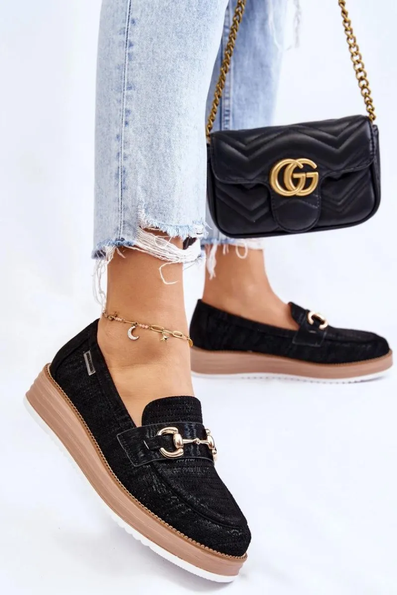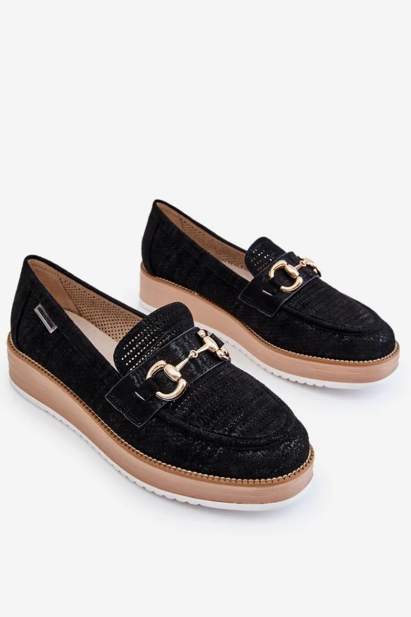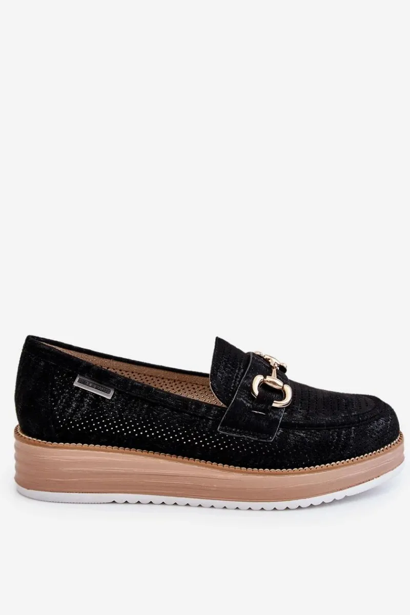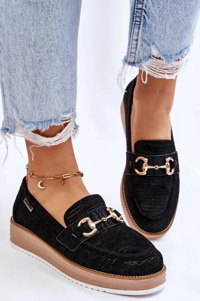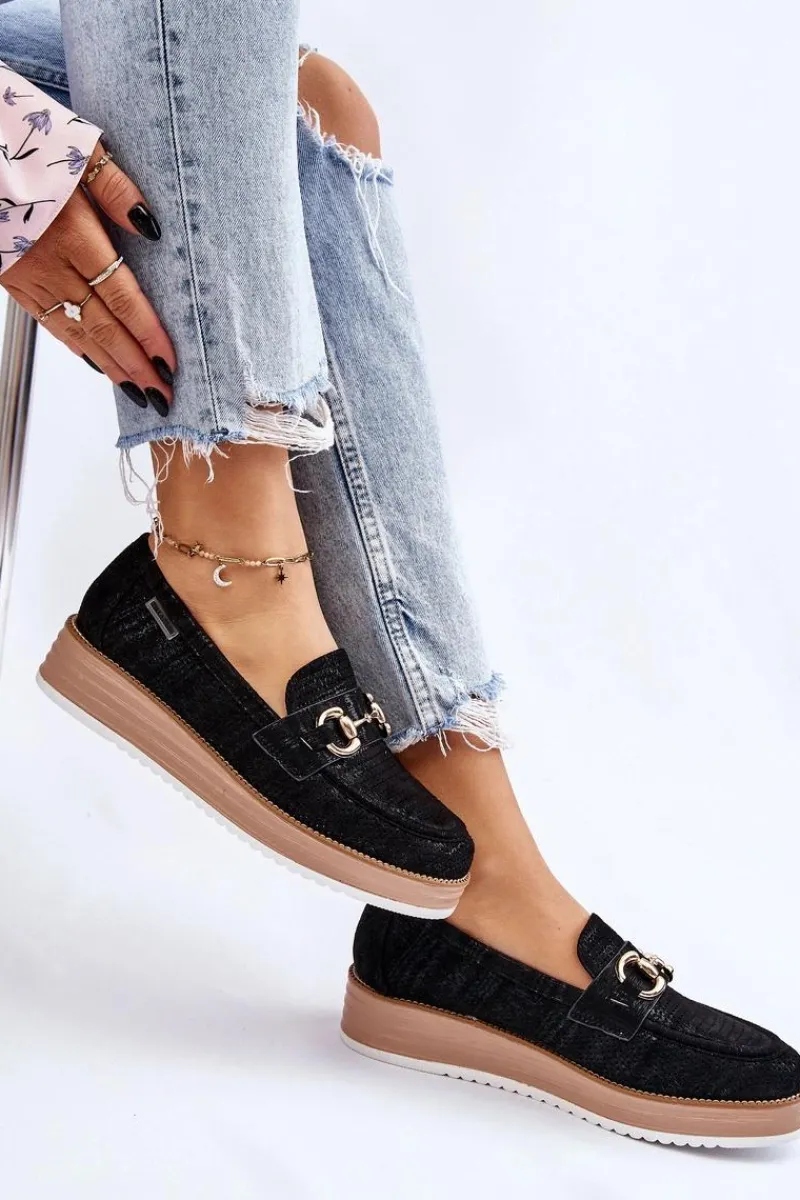 Klasyczne mokasyny damskie zostały osadzone na delikatnym koturnie i platformie. Wykonane z materiału przypominającego eko zamsz. Miękka wkładka z naturalnej skóry zapewni wygodę podczas użytkowania. Dodatkowo mokasyny te posiadają usztywniany zapiętek. Na przodzie znajduje się ozdobny element. Idealne do wielu wiosenno-jesiennych stylizacji. Przy wyborze rozmiaru prosimy sugerować się tabelą rozmiarów.