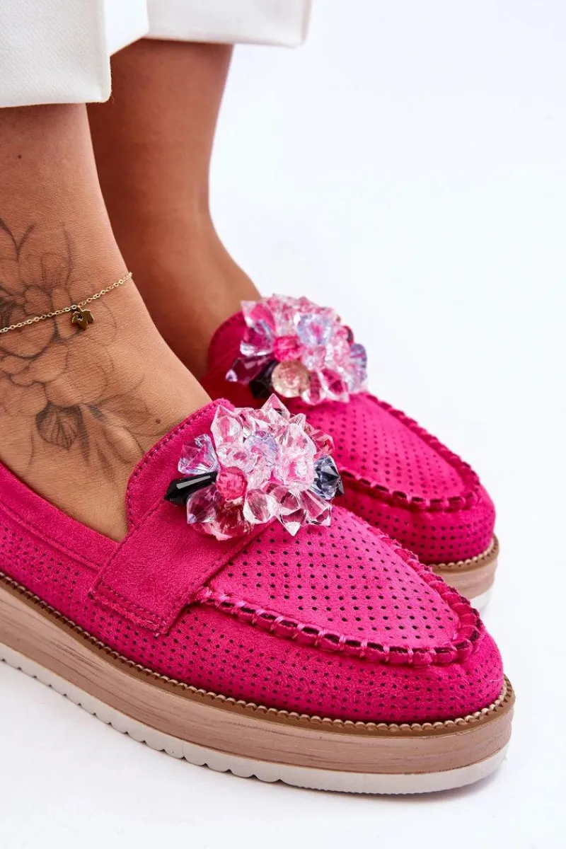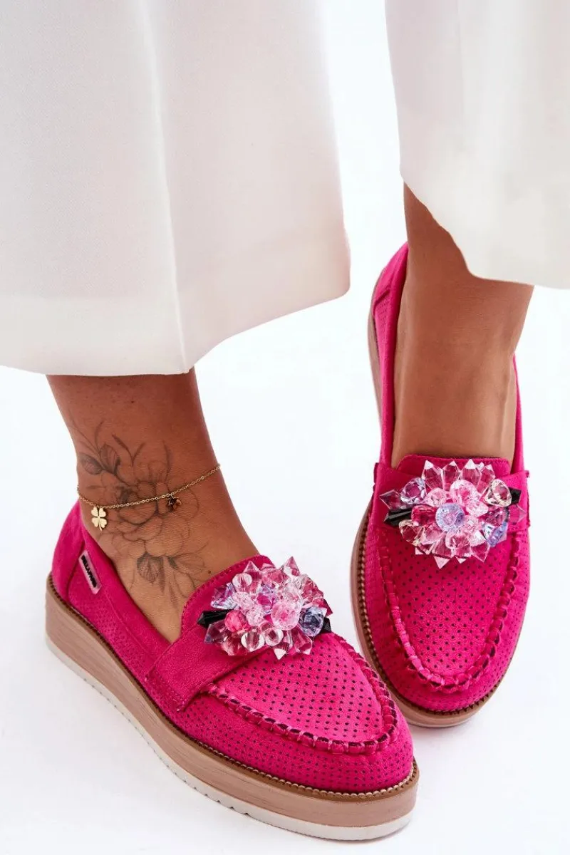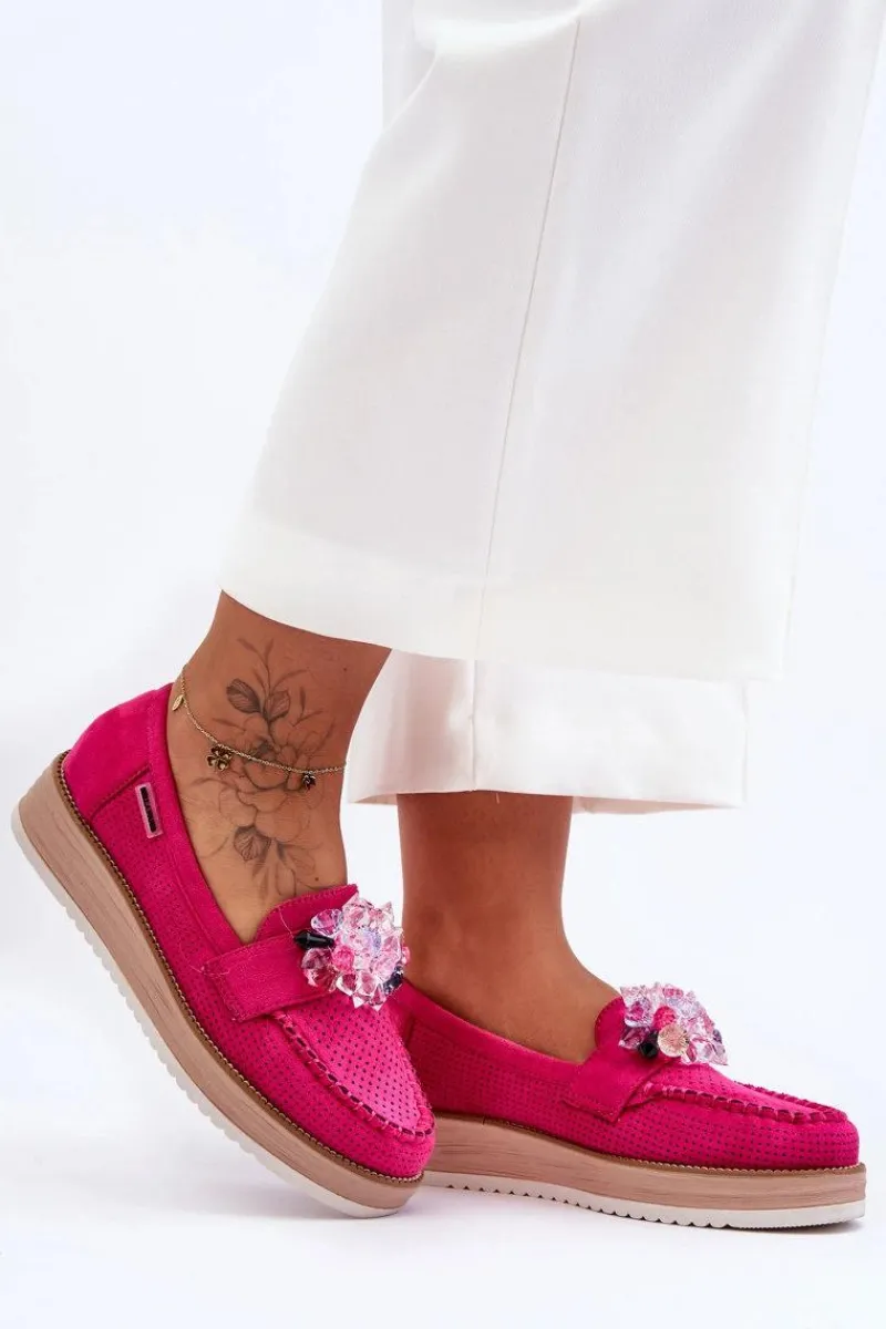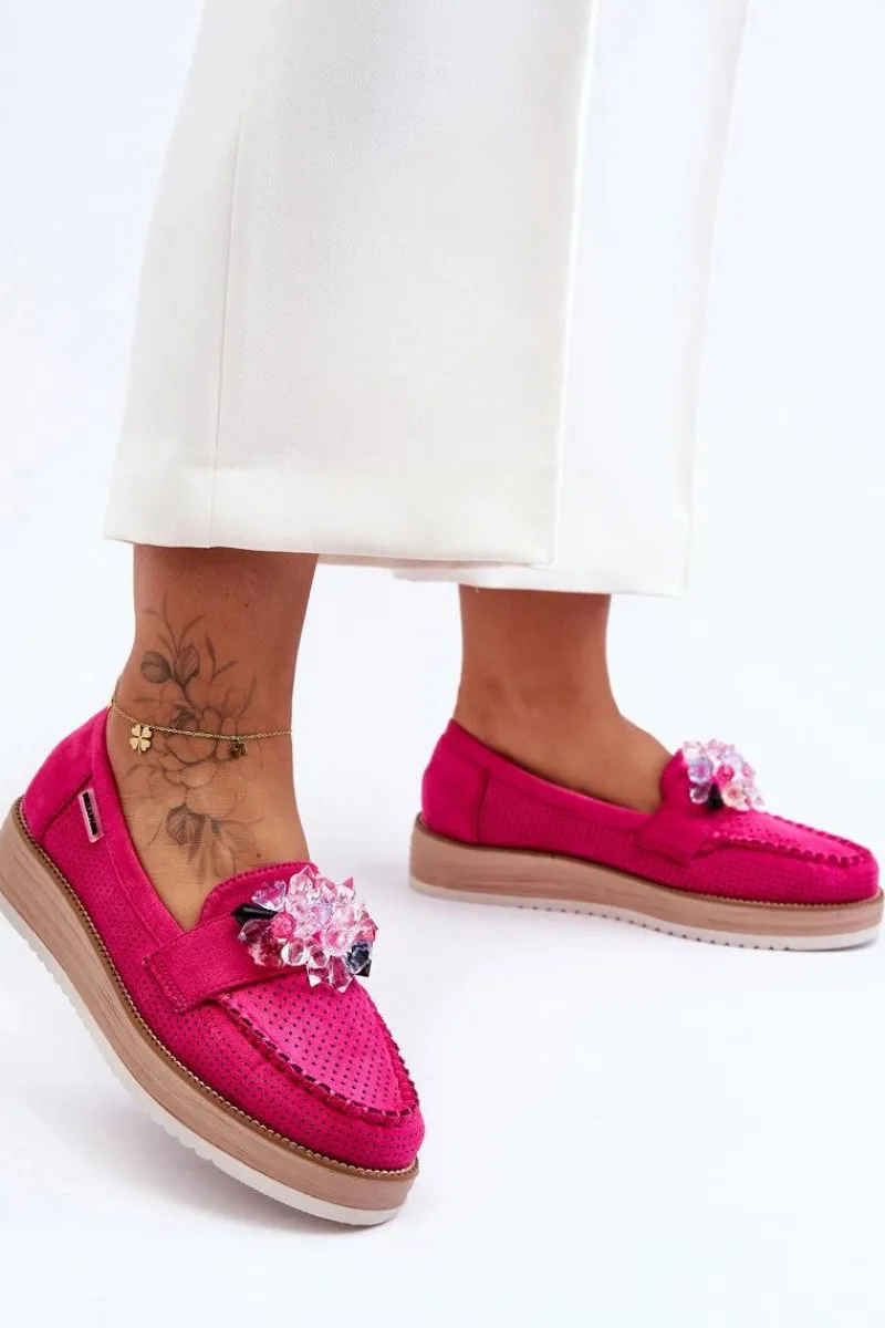 Mokasyny Na Platformie|Mokasyny Damskie Zamszowe>Boto Damskie Mokasyny Na Platformie Z Kamieniami Fuksja Elonore
