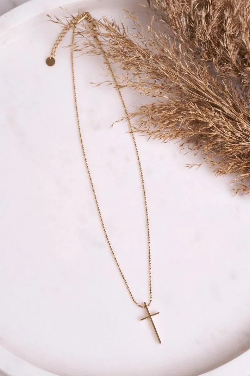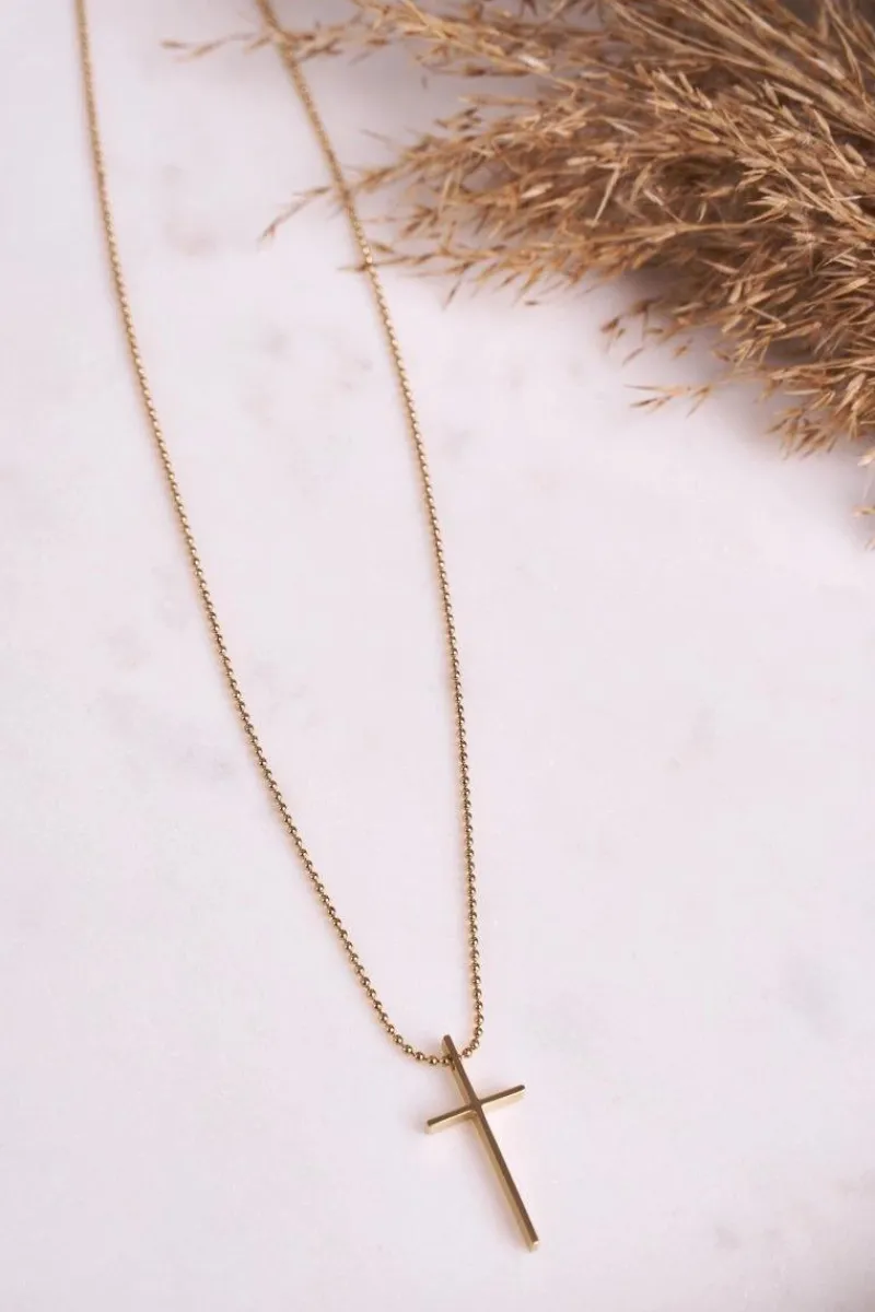 Naszyjniki>Boto Naszyjnik Łańcuszek z Krzyżykiem Złoty Simple