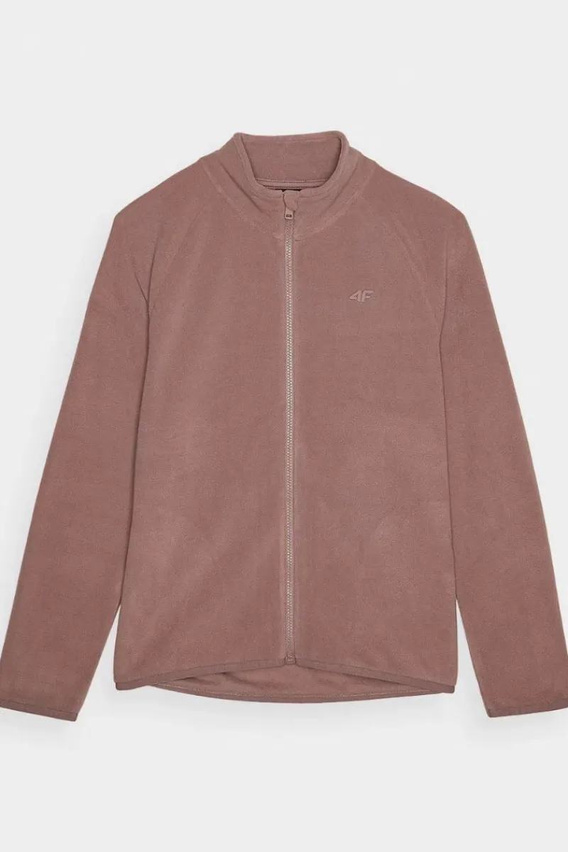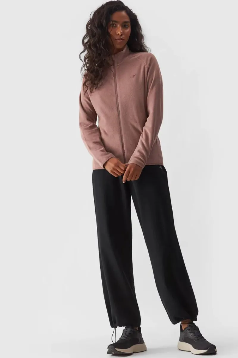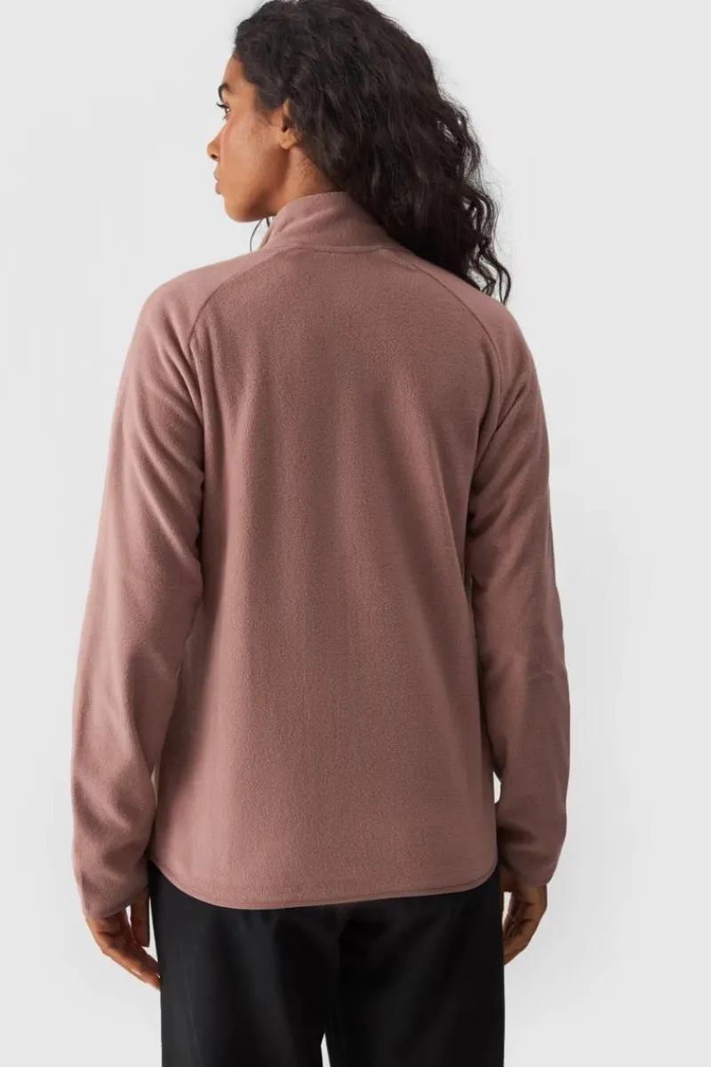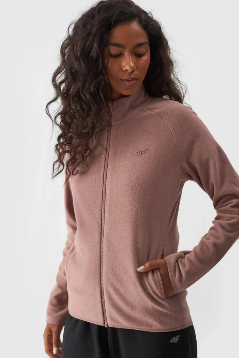 Bluza z polaru dla kobiety jest wykonana z cienkiego mikropolaru, który cechuje się dobrą izolacją termiczną przy wyjątkowo lekkiej wadze. Materiał ten oddycha i szybko schnie. Technologia 4F Warm wspiera komfort cieplny. Posiada krój regular, który wygodnie dopasowuje się do sylwetki oraz standardową długość sięgającą do linii bioder. Bluza z polaru dla kobiety posiada stójkę, która osłania szyję. Klasycznie wykończone mankiety. Po bokach znajdują się 2 kieszenie otwarte. Zapinany na jednokierunkowy zamek główny. Raglanowe rękawy nie ograniczają ruchów. Materiał dodatkowy: Bawełna 60%, Poliester 40% Materiał główny: Poliester 100%