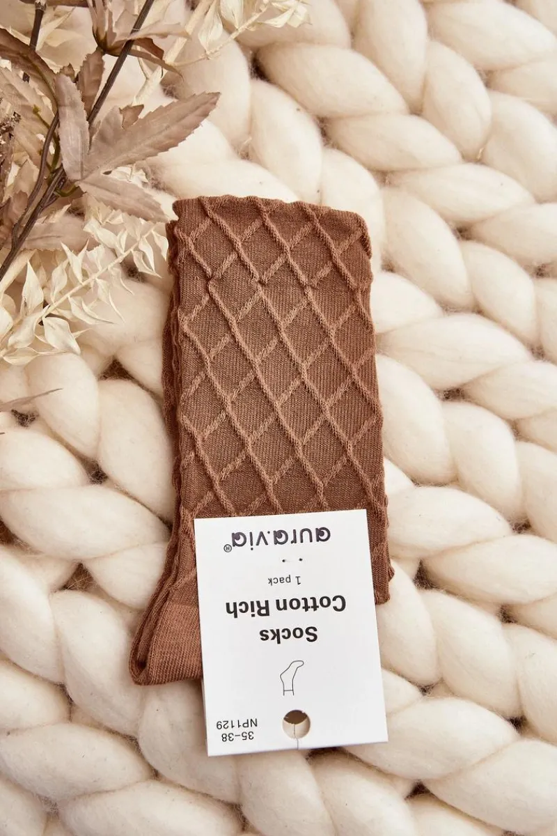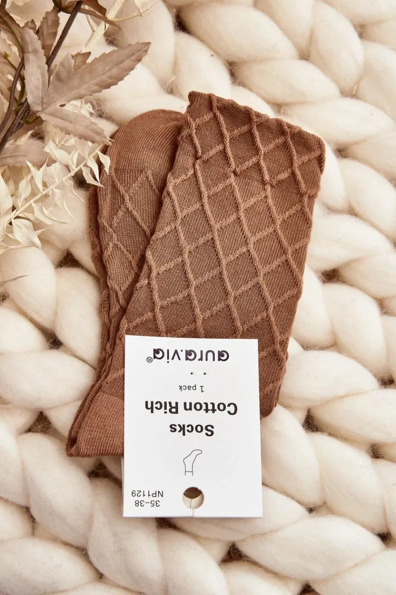 New Aura.via Skarpety Damskie Z Ozdobnym Tłoczeniem Jasnobrązowe