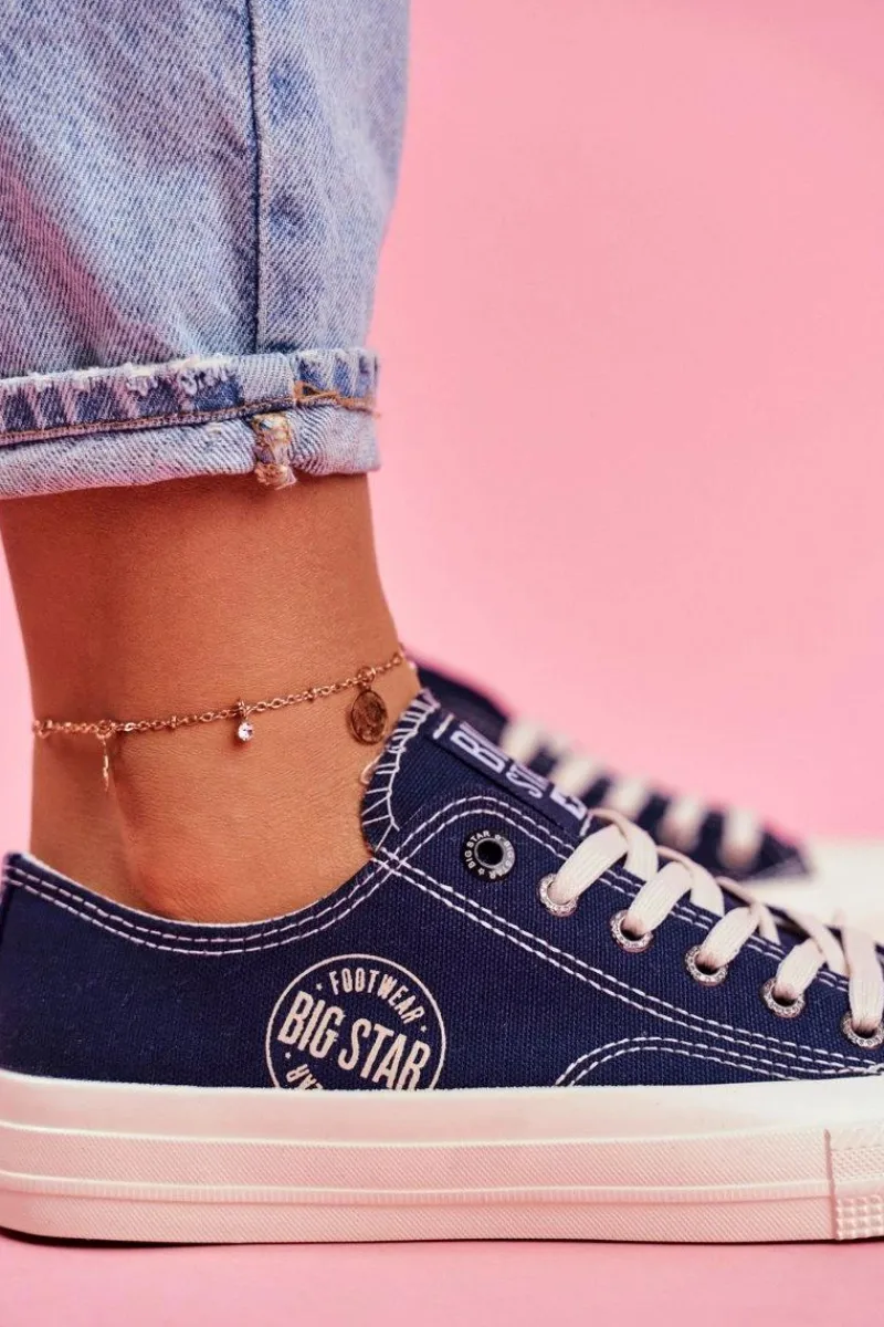 Klasyczne damskie trampki od firmy Big Star! Logo po zewnętrznej stronie cholewki. Materiałowe wnętrze z miękką pianką, która daje uczucie miękkości i podnosi komfort użytkowania. Antypoślizgowa podeszwa. Nie czekaj dłużej i kup teraz! Przy wyborze rozmiaru prosimy kierować się tabelą rozmiarów.