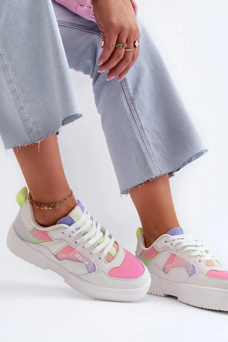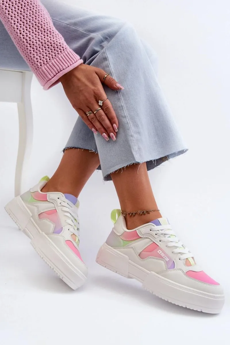 Lekkie sneakersy damskie marki Big Star to połączenie stylowego designu i wygody. Wykonane z wysokiej jakości eko skóry, zapewniają trwałość i nowoczesny wygląd. Osadzone na platformie. Wkładka MEMORY FOAM SYSTEM dostosowuje się do kształtu stopy, absorbując wstrząsy i zapewniając stabilność. Ponadto piankowa struktura pozwala na swobodny przepływ powietrza, regulując temperaturę i zapobiegając nadmiernemu poceniu się stóp. Ten modny fason z pewnością dopełni wiele stylizacji! Przy wyborze rozmiaru prosimy sugerować się tabelą rozmiarów.