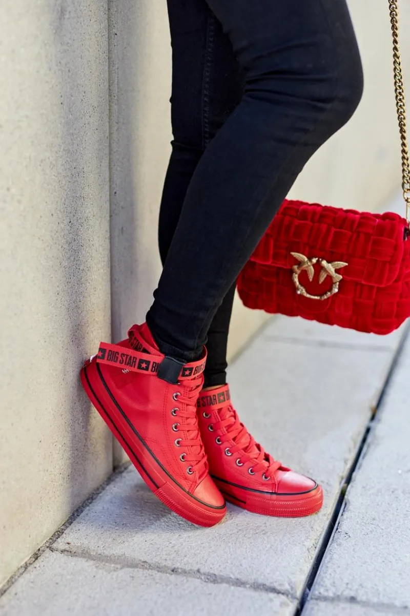 Damskie trampki polskiej marki BIG STAR. Kultowe już trampki zostały ozdobione paskiem. Wykonane z eko skóry. Posiadają ocieplenie w postaci miłego w dotyku futerka, dzięki któremu chłodne dni nie będą już takie straszne! Z boku cholewki znajduje się element ozdobny w postaci suwaka. Koniecznie sprawdź całą naszą kolekcję butów BIG STAR. Przy wyborze rozmiaru prosimy sugerować się tabelą rozmiarów.
