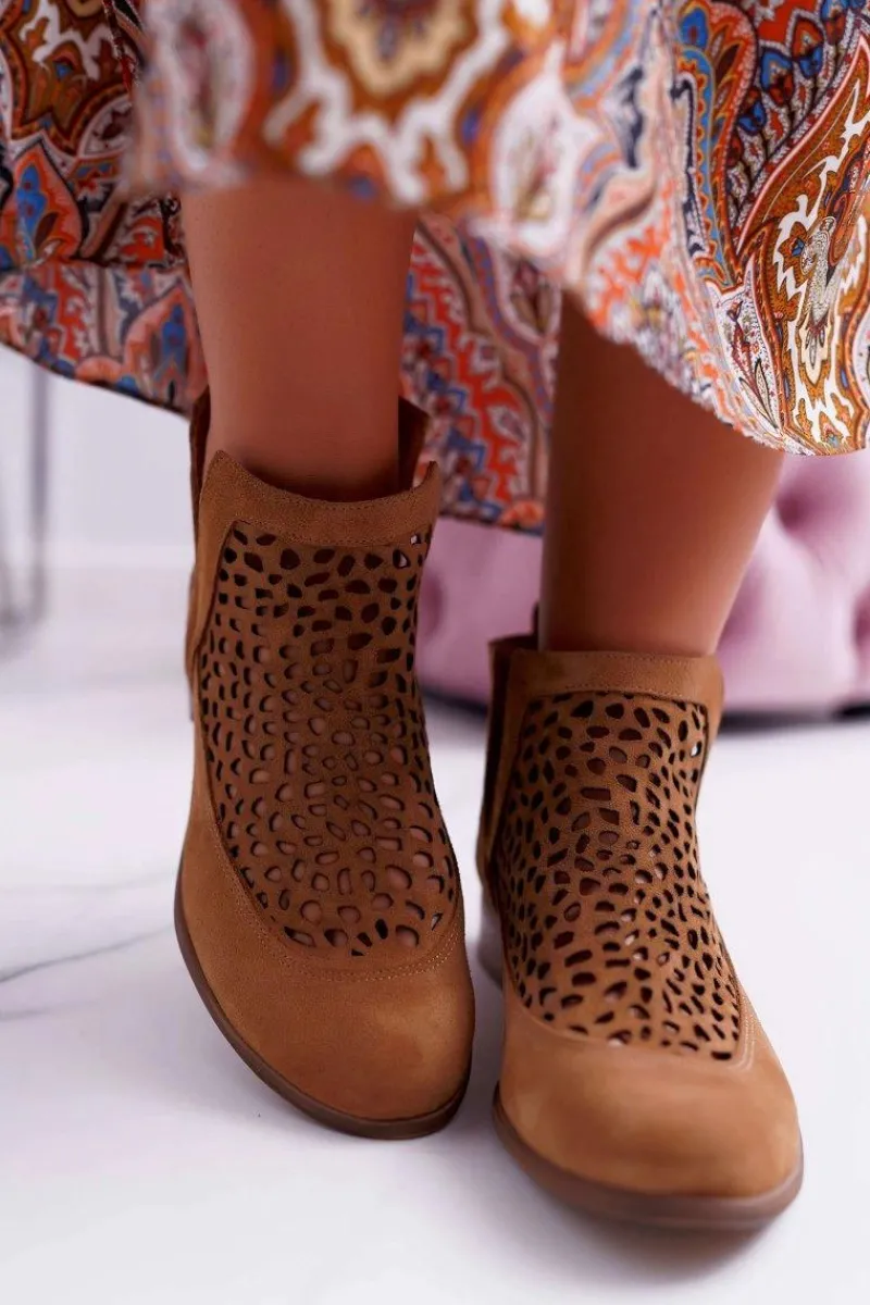 New Botki Damskie Wiosenne Kowbojki Camel 2366 Draw Damskie Botki Wiosenne|Brązowe I Beżowe Botki