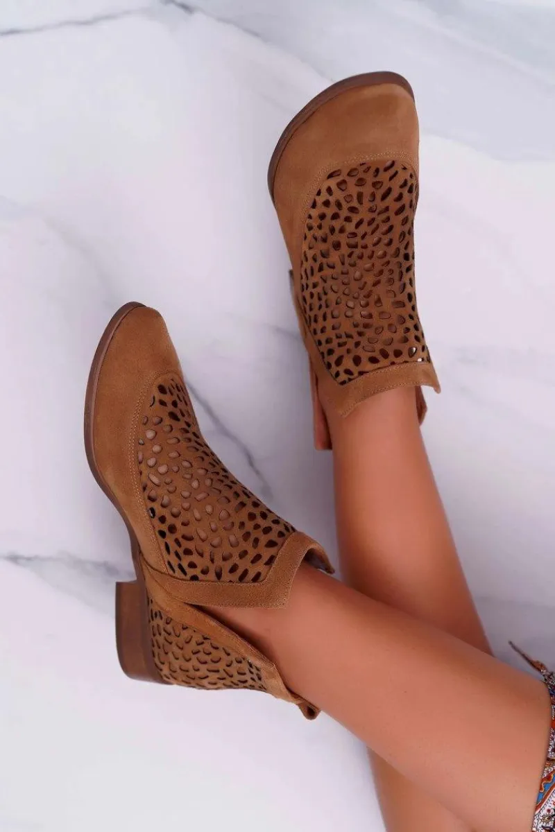 Przepiękne z wycięciami wykonane w całości z zamszowej skóry naturalnej. Jest to produkt Polski, wykonany ręcznie. Występują w dwóch kolorach, więc z pewnością znajdziesz tu swój ulubiony kolor. Ażurowe wykończenie na cholewce oraz zapiętku. Botki idealne sprawdzą się podczas ciepłych wiosennych dni. Przy wyborze rozmiaru prosimy sugerować się tabelą rozmiarów dostępną po najechaniu bądź kliknięciu na dany rozmiar.