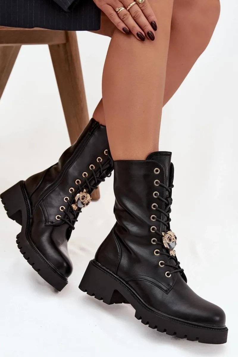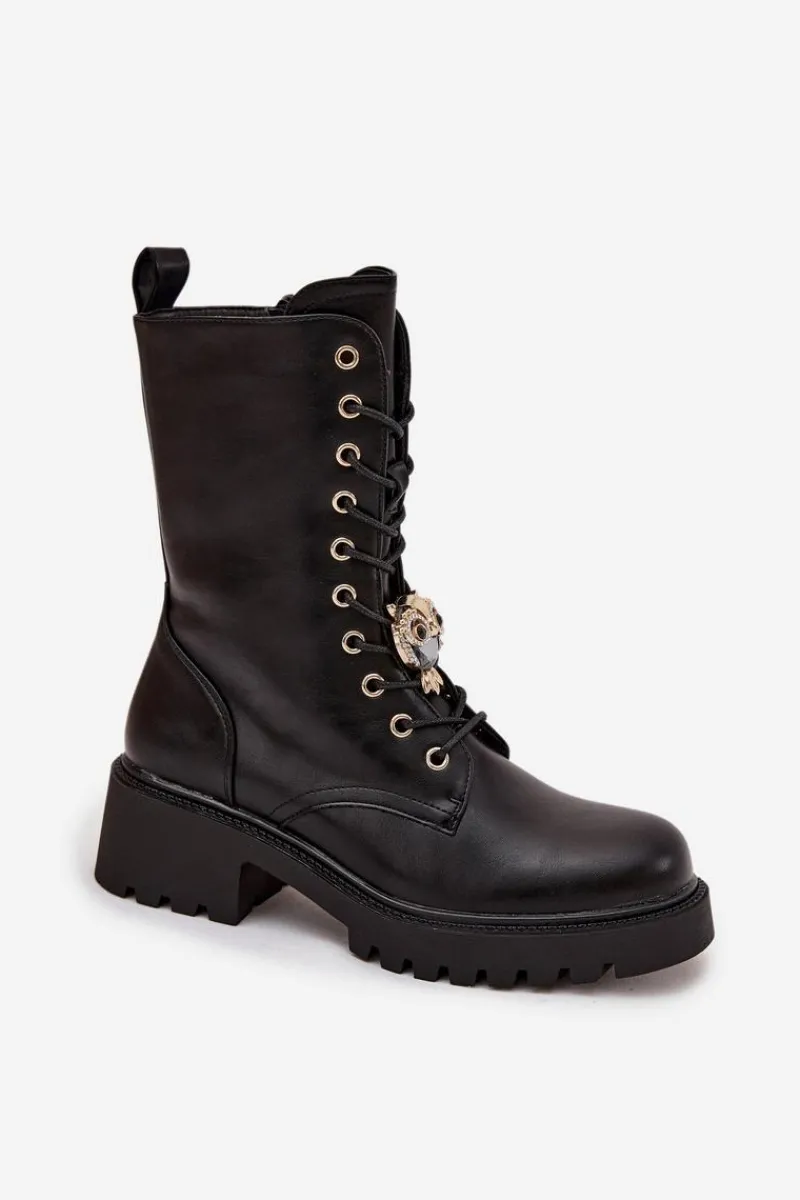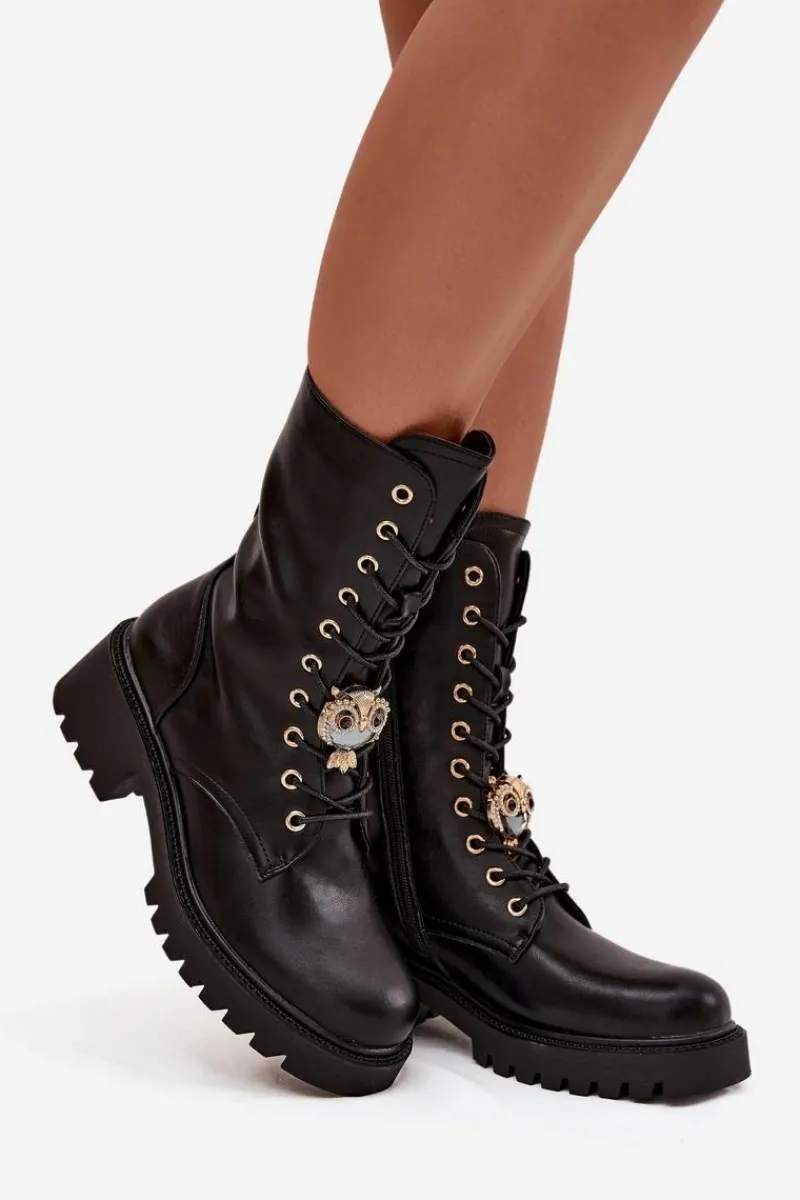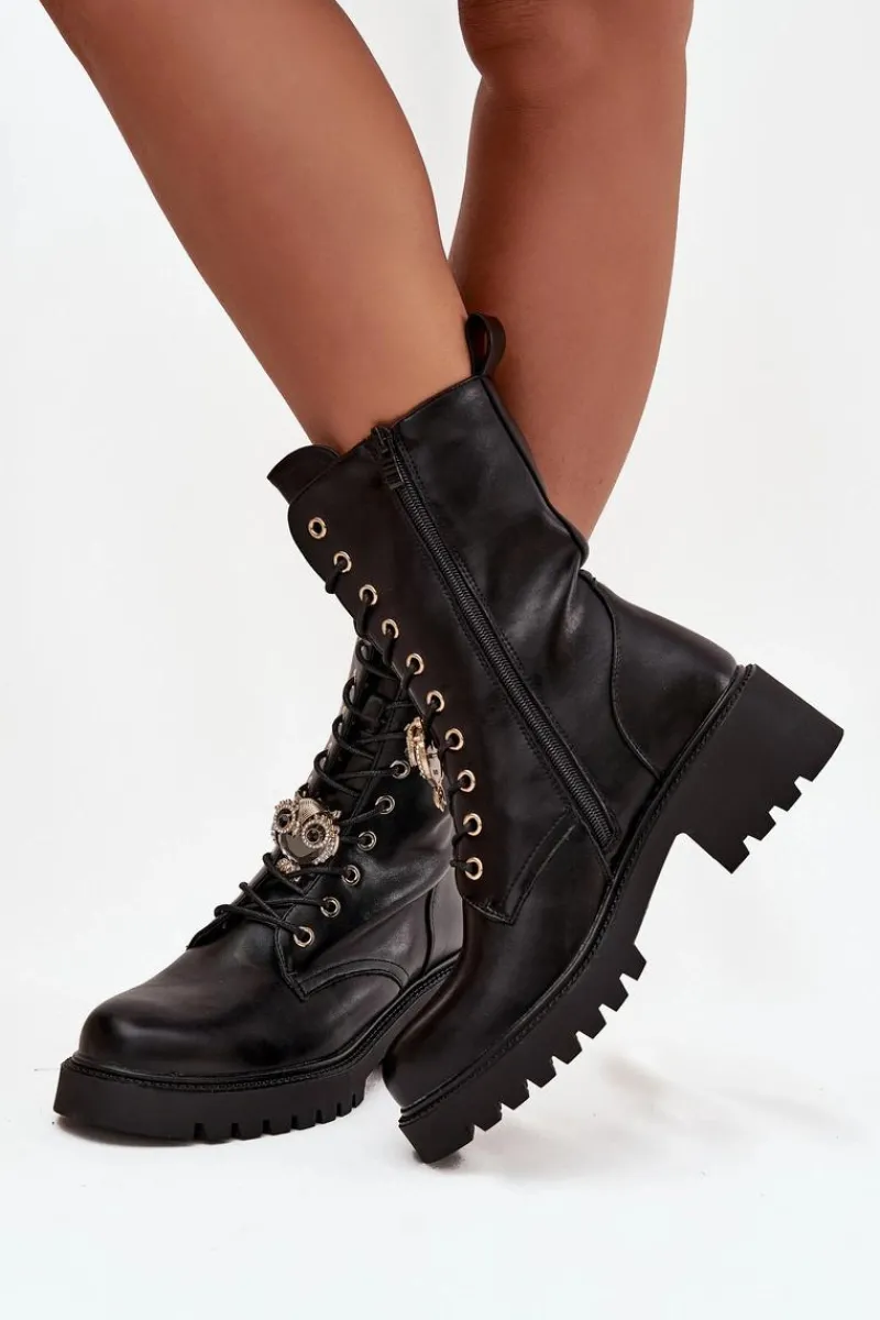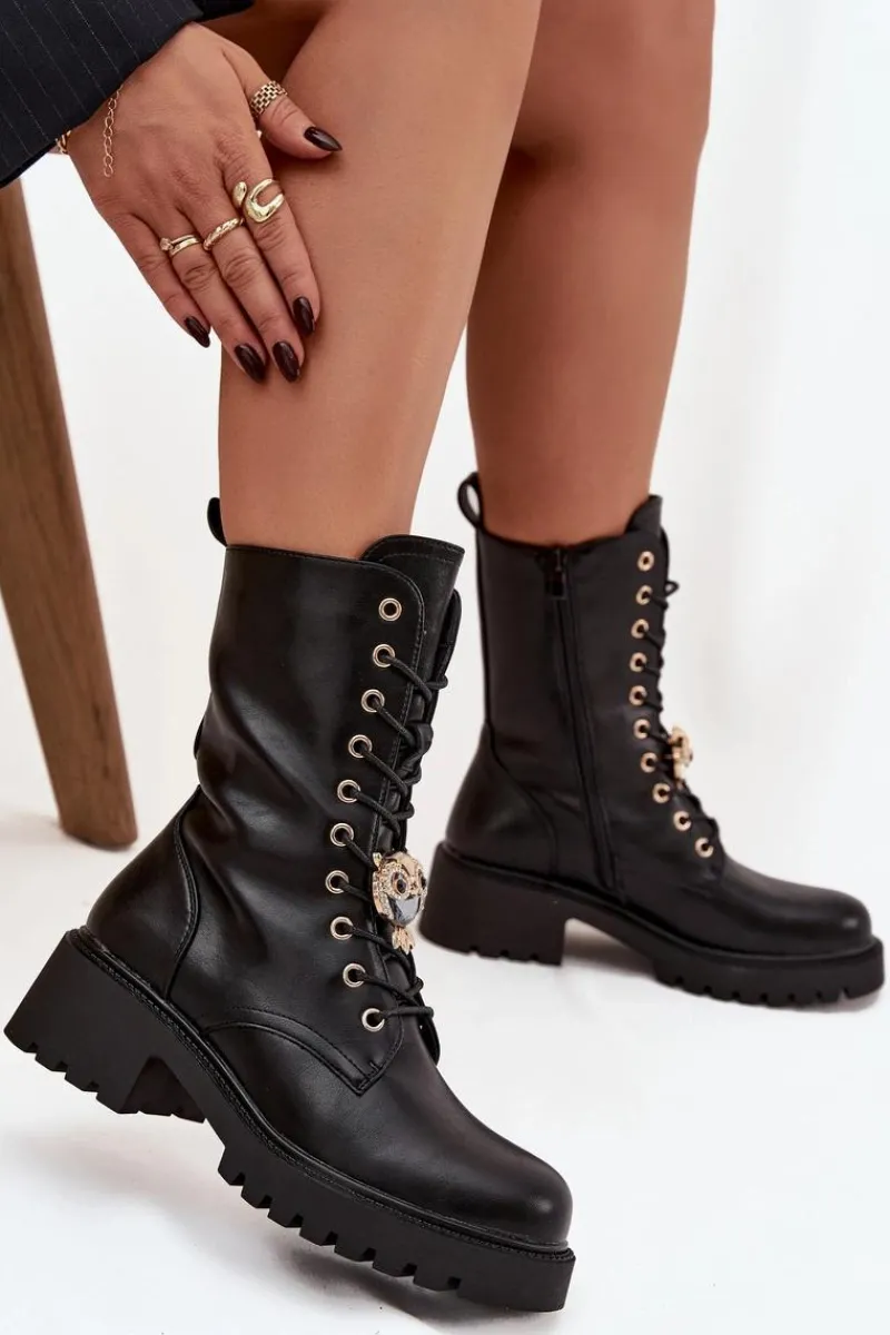 Botki workery damskie wykonane z eko skóry to połączenie stylu i funkcjonalności. Model osadzony na stabilnym obcasie typu klocek zapewnia komfort oraz pewność kroku. Buty są zapinane na zamek i sznurowane, co ułatwia zakładanie oraz dopasowanie do stopy. Ozdoba umieszczona przy sznurowaniu dodaje im modnego, charakterystycznego akcentu. To uniwersalne botki, które doskonale uzupełnią zarówno codzienne, jak i bardziej stylowe, miejskie stylizacje. Przy wyborze rozmiaru prosimy sugerować się tabelą rozmiarów.