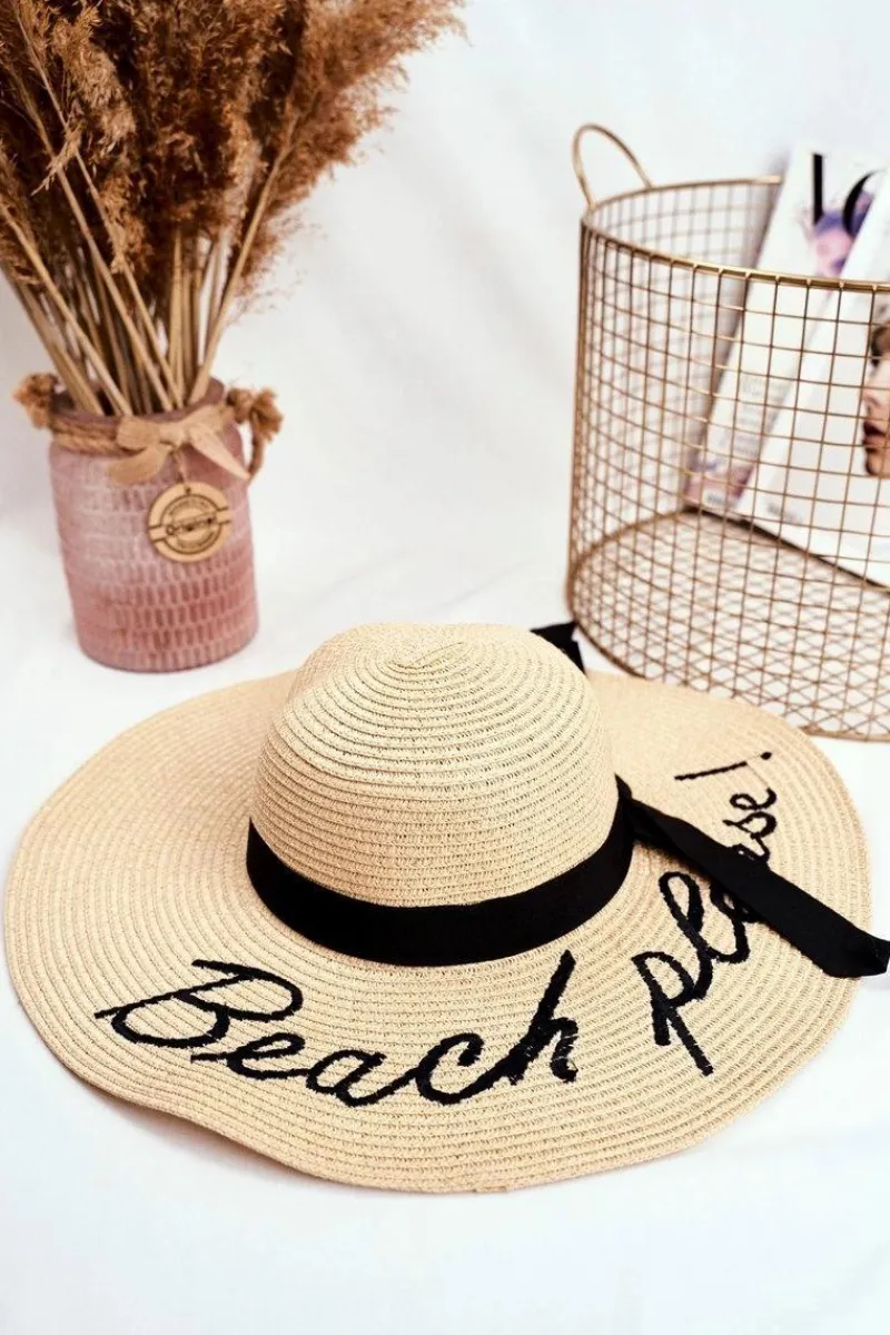 Praktyczny i modny kapelusz, który idealnie wpisze się w letnie stylizacje. Będzie cudownym uzupełnieniem naszych miejskich oraz plażowych stylizacji. Pasuje do zwiewnej sukienki, jeansów czy też bikini <3 Kapelusz w 100% wykonany z plecionego papieru. Rondo zdobione napisem Beach Please. Kapelusz posiada wszytą elastyczną gumkę pod brodę, która utrzyma kapelusz na miejscu podczas wietrznych dni.