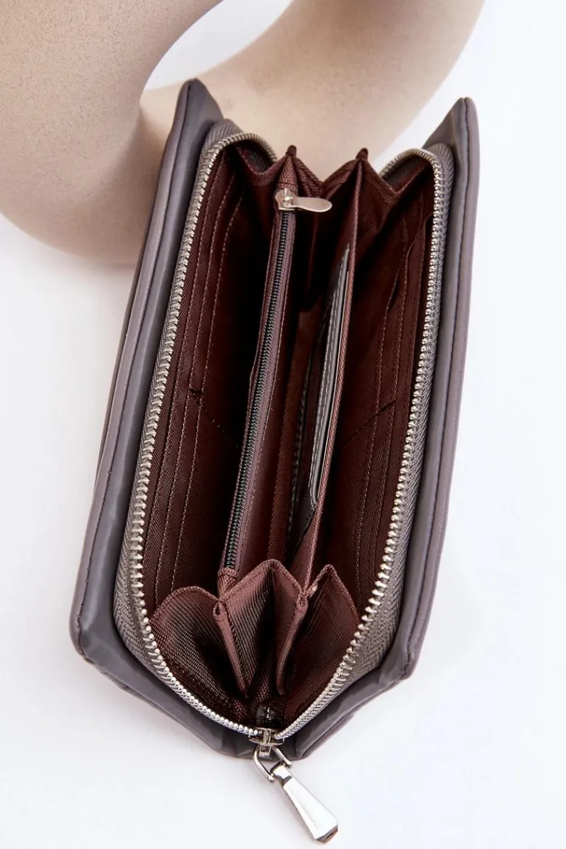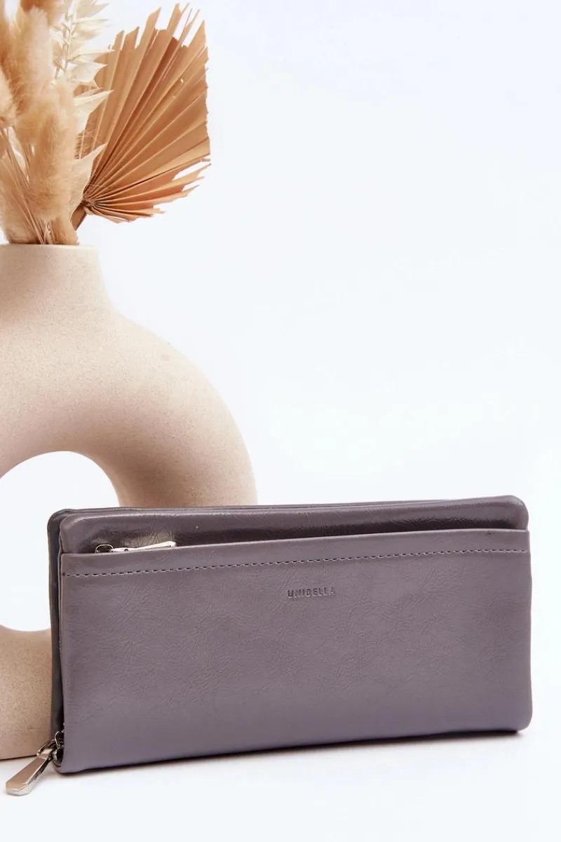 Portfel damski wykonany z eko skóry. Zamykany na wygodny zamek błyskawiczny, co zapewnia łatwe otwieranie i zamykanie. Wewnątrz znajdują się klasyczne przegródki, w tym jedna zasuwana. Dodatkowo model ten posiada odpinany paseczek. To idealny wybór dla osób ceniących prostotę i funkcjonalność!
