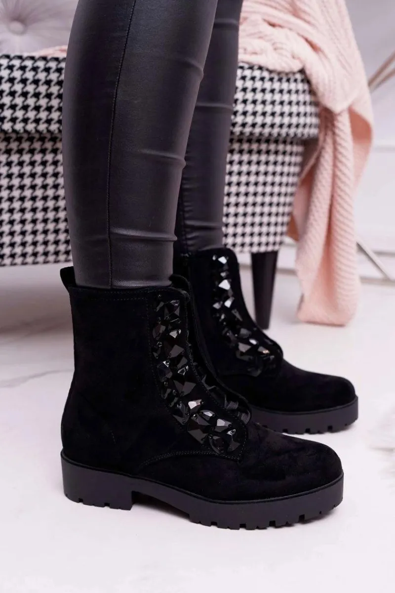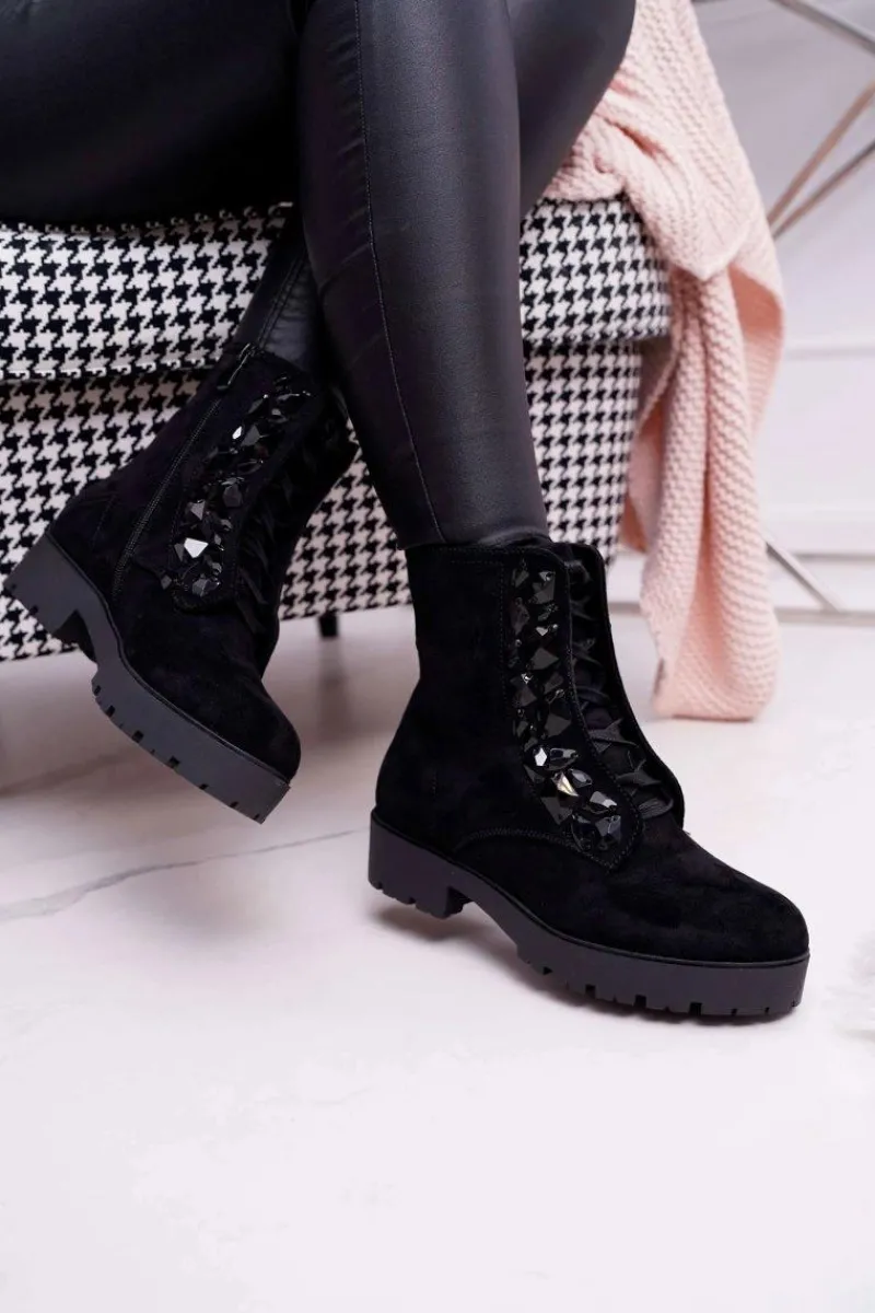 New Boto Damskie Botki Ciepłe Zamszowe Czarne Gerta