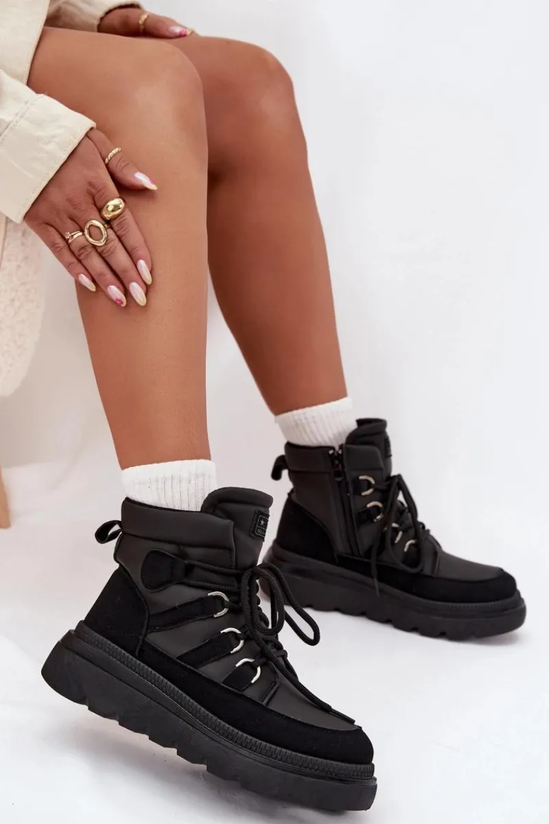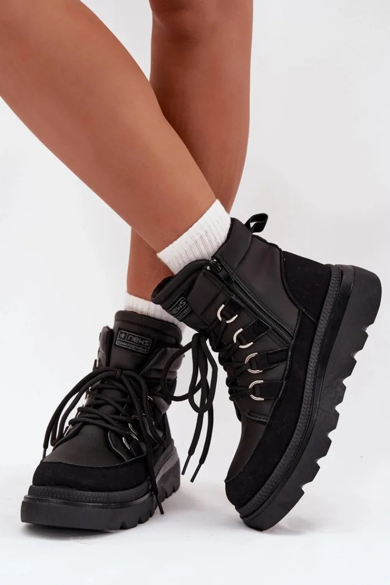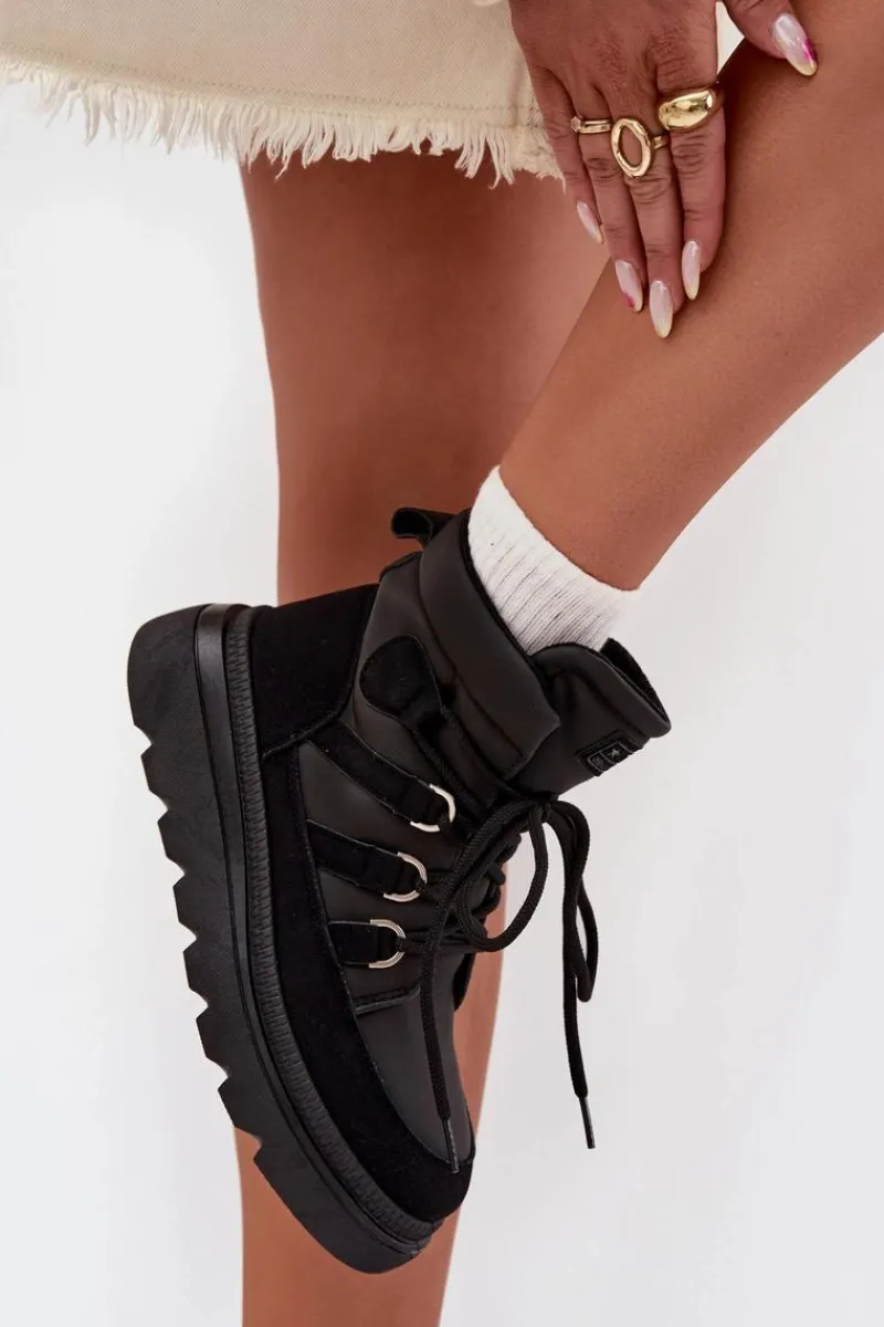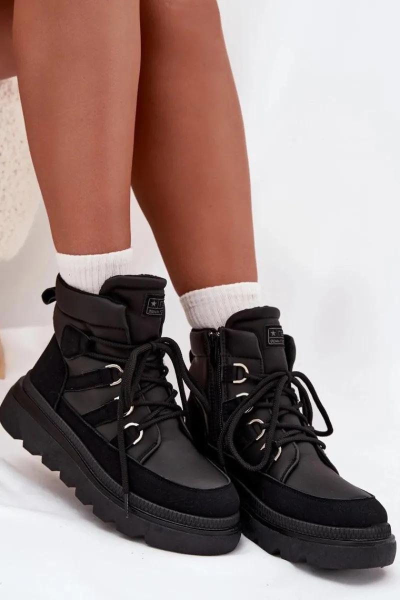 New Boto Damskie Botki Trapery Na Platformie Czarne Liorae Czarny