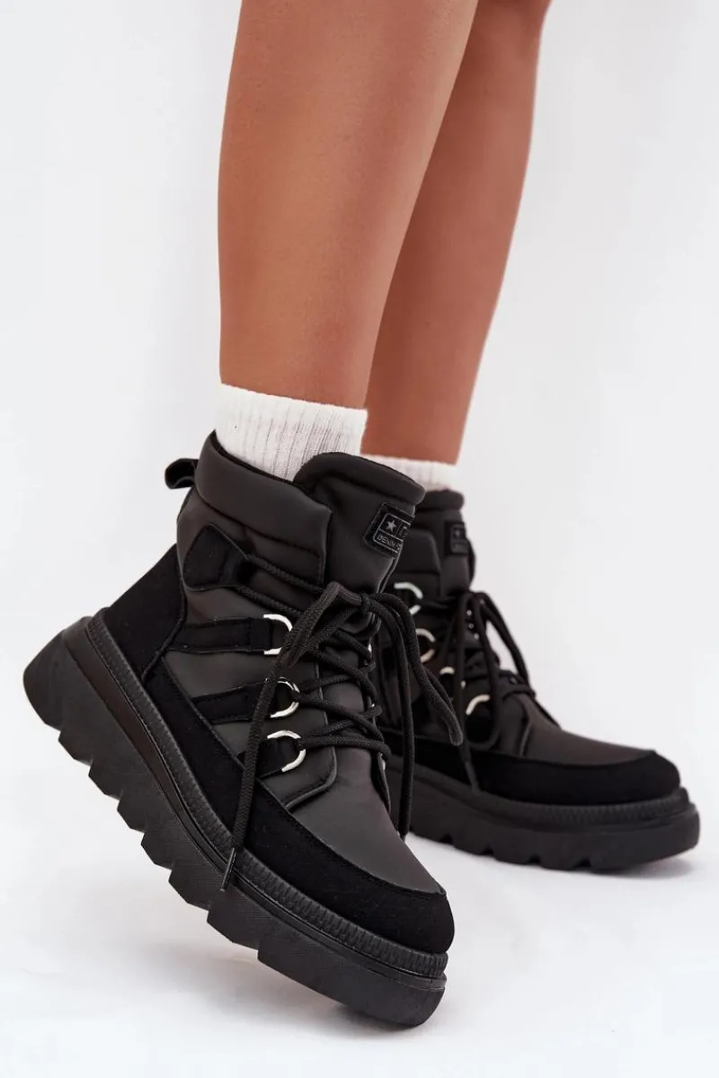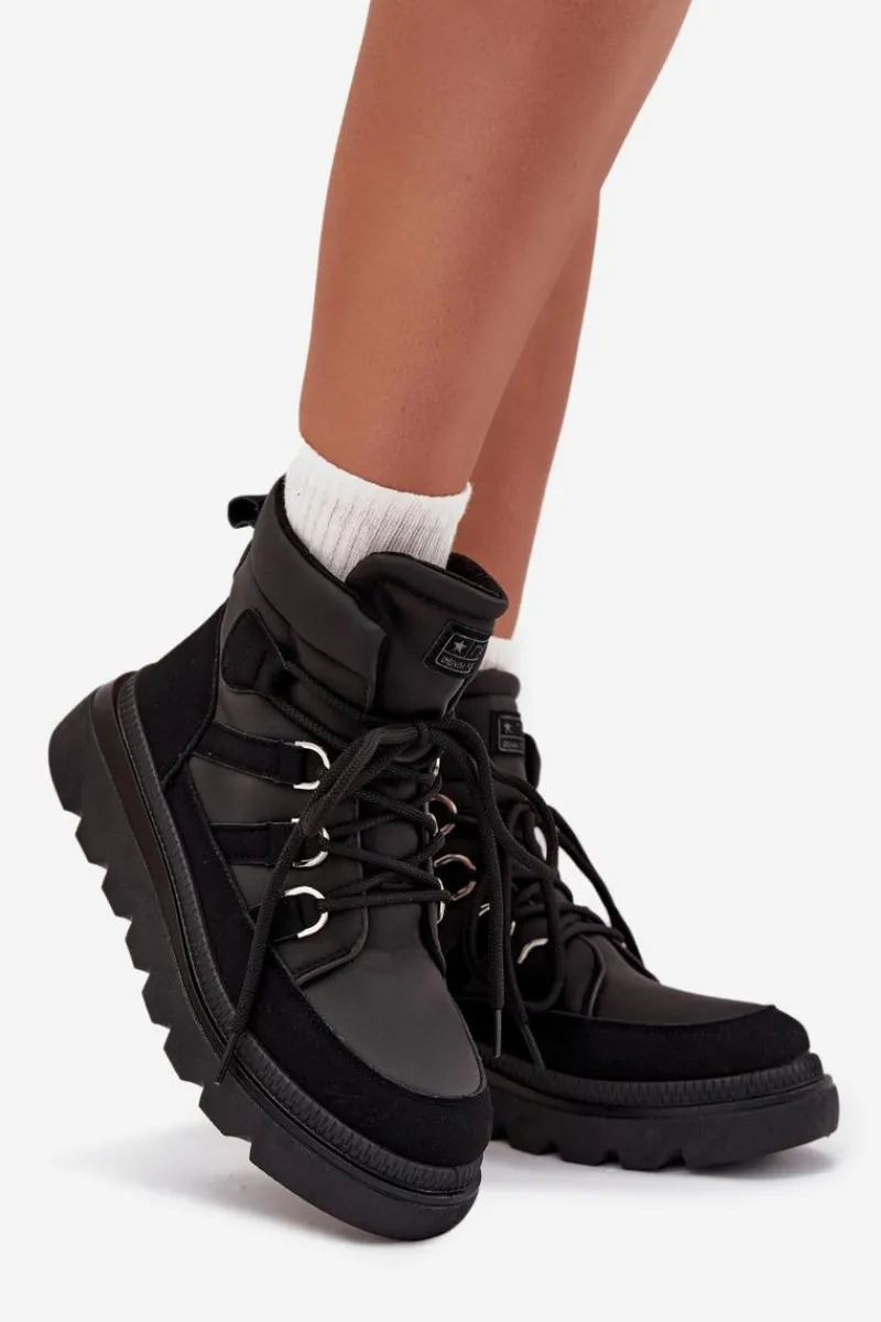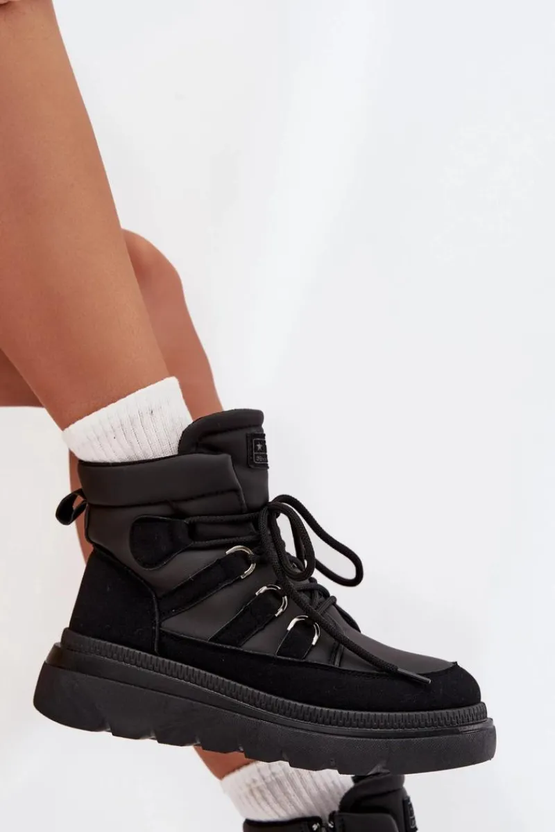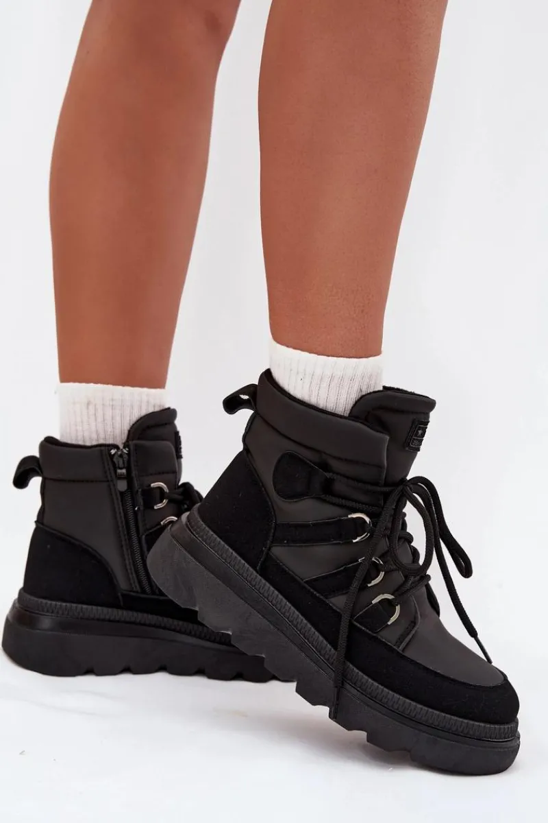 New Boto Damskie Botki Trapery Na Platformie Czarne Liorae Czarny