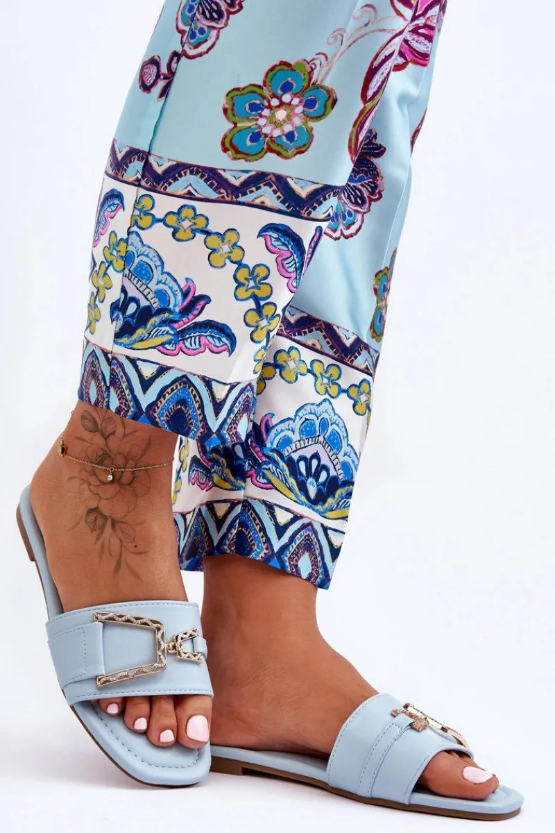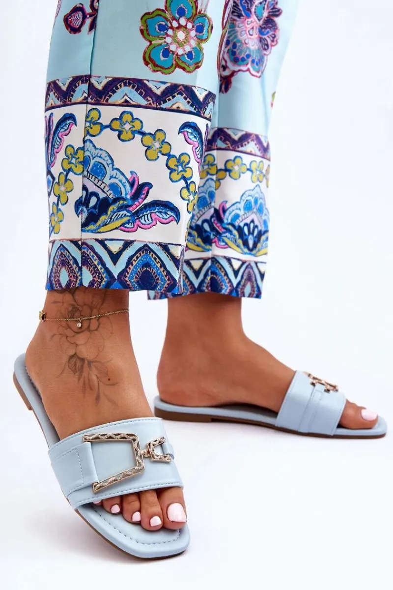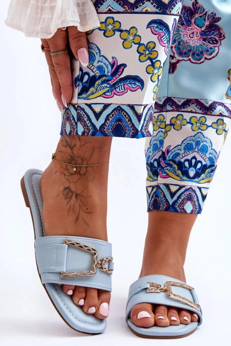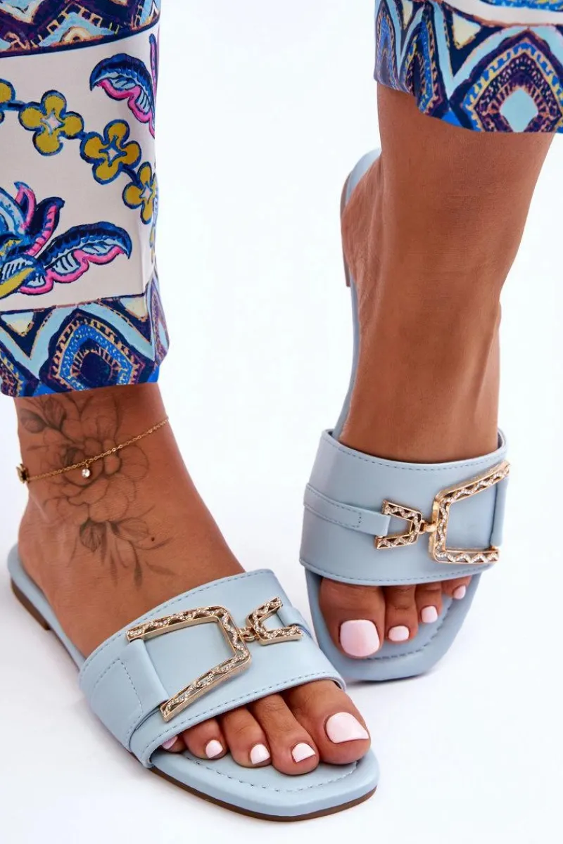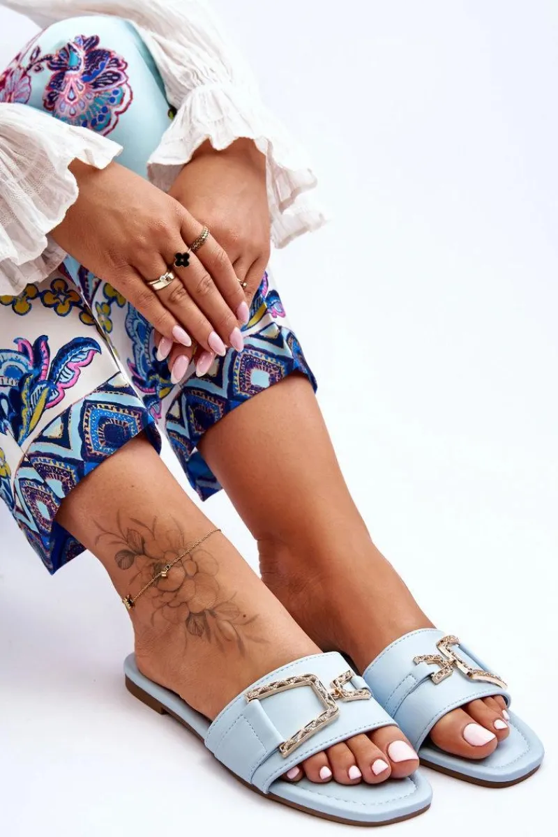 Damskie klapki zostały wykonane z eko skóry. Posiadają na przodzie ozdobę z tworzywa sztucznego z dżetami imitującymi cyrkonie. Klapki osadzono na delikatnym, płaskim obcasie. Wkładka jest wygodna w użytkowaniu i została wykonana z eko skóry. Nosek w tym obuwiu jest odkryty i lekko kwadratowy. Ten model powinien być Twój! Przy wyborze rozmiaru prosimy sugerować się tabelą rozmiarów.