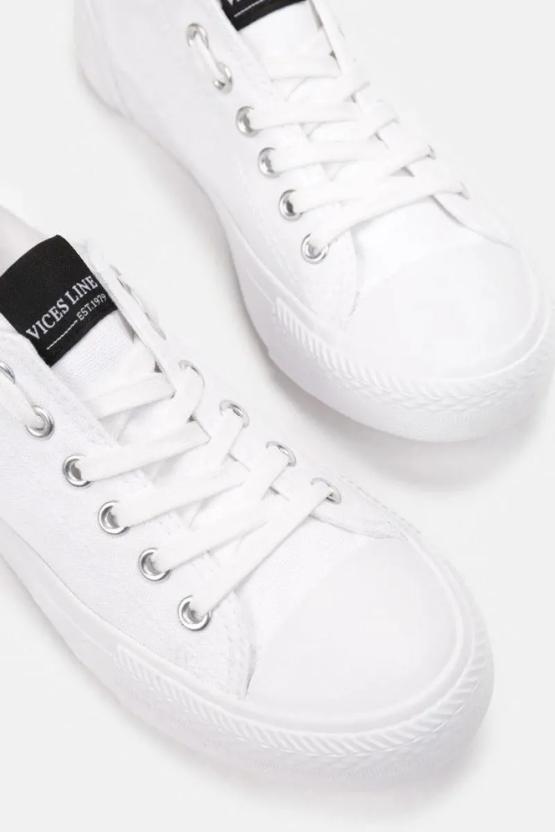 Klasyczne trampki damskie. Buty posiadają gumową podeszwę oraz miękką cholewkę. Koniecznie sprawdź całą naszą kolekcję trampek damskich! Przy wyborze rozmiaru prosimy sugerować się tabelą rozmiarów.