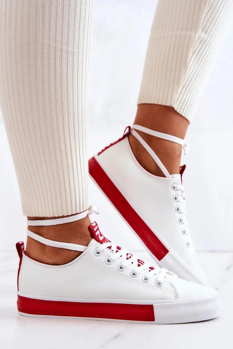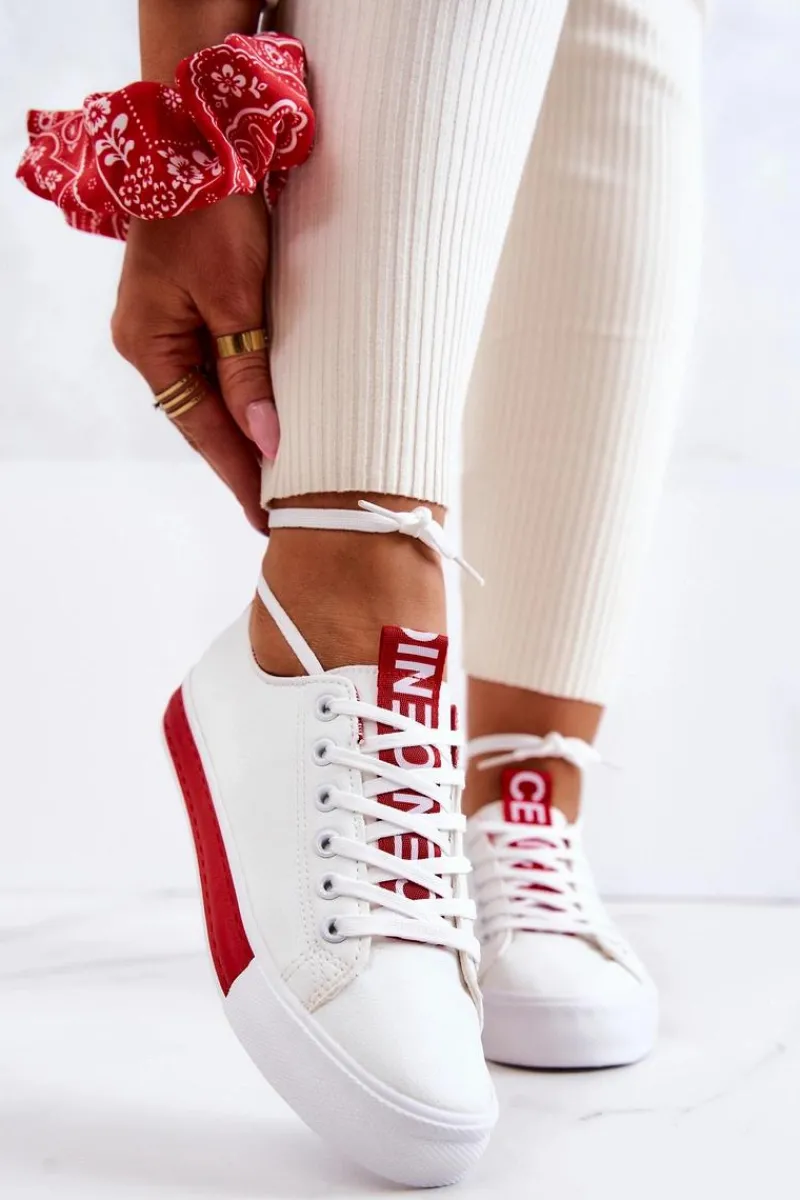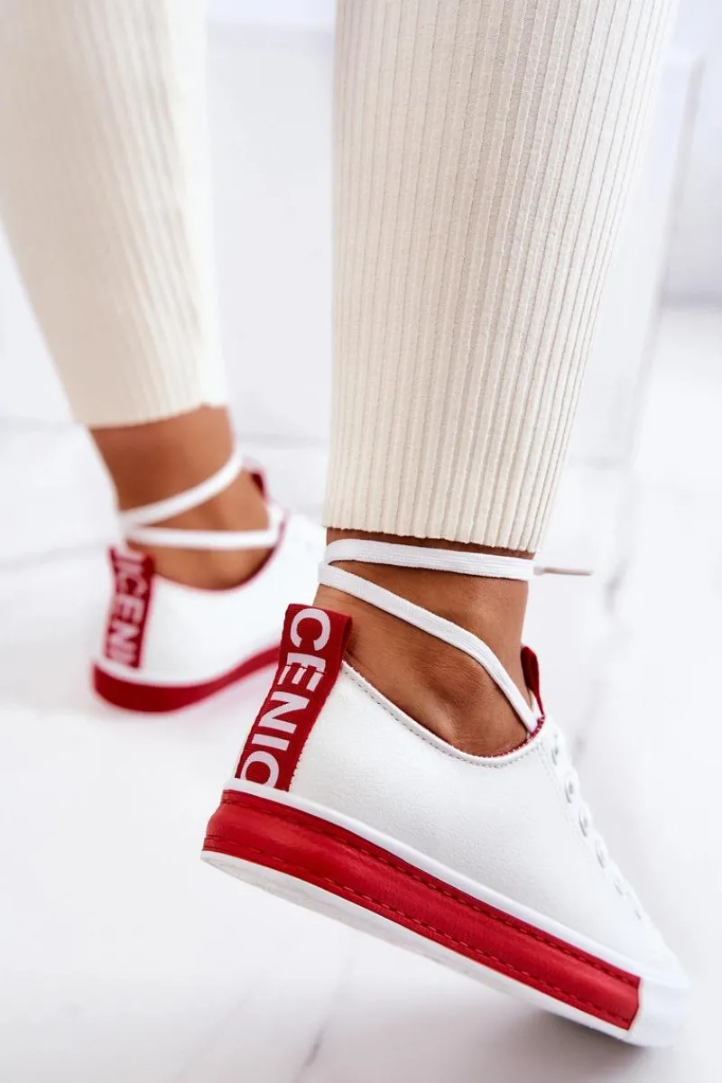 New Boto Damskie Skórzane Tenisówki Biało-Czerwone Mikayla