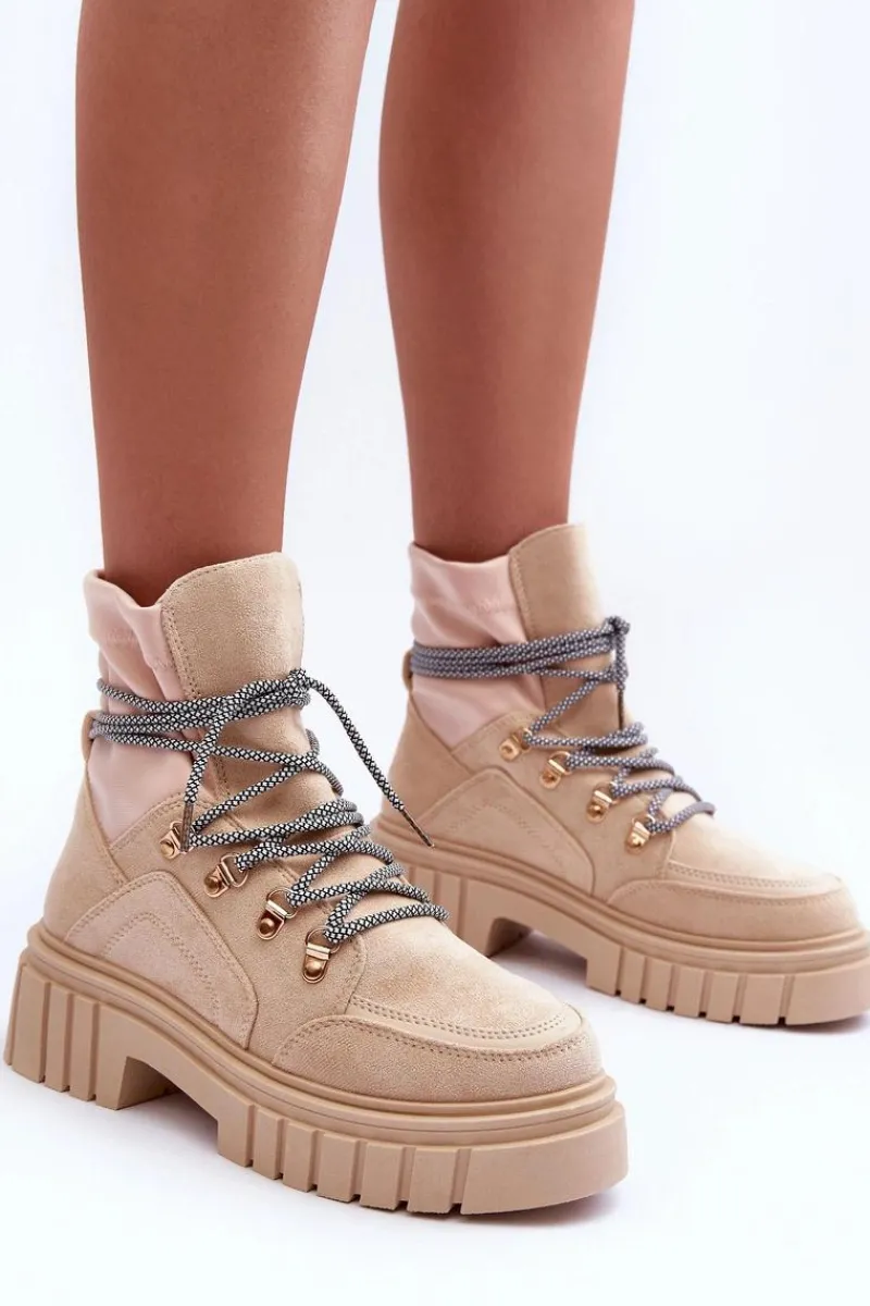 Damskie botki zostały osadzone na masywnym obcasie oraz platformie. Wykonane z eko zamszu. Cholewka za kostkę. Wewnątrz ocieplone kocem obuwniczym. Koniecznie powinnaś je mieć w swojej garderobie. Przy wyborze rozmiaru prosimy sugerować się tabelą rozmiarów.