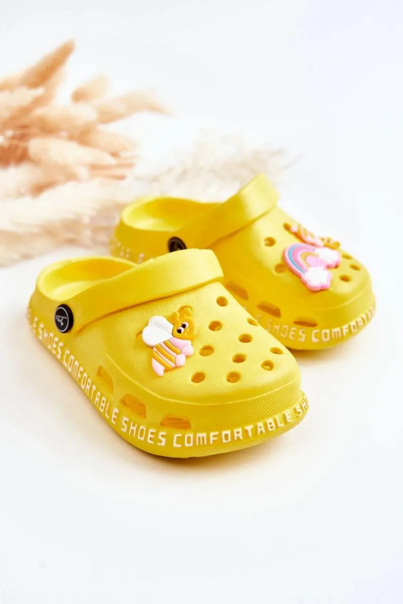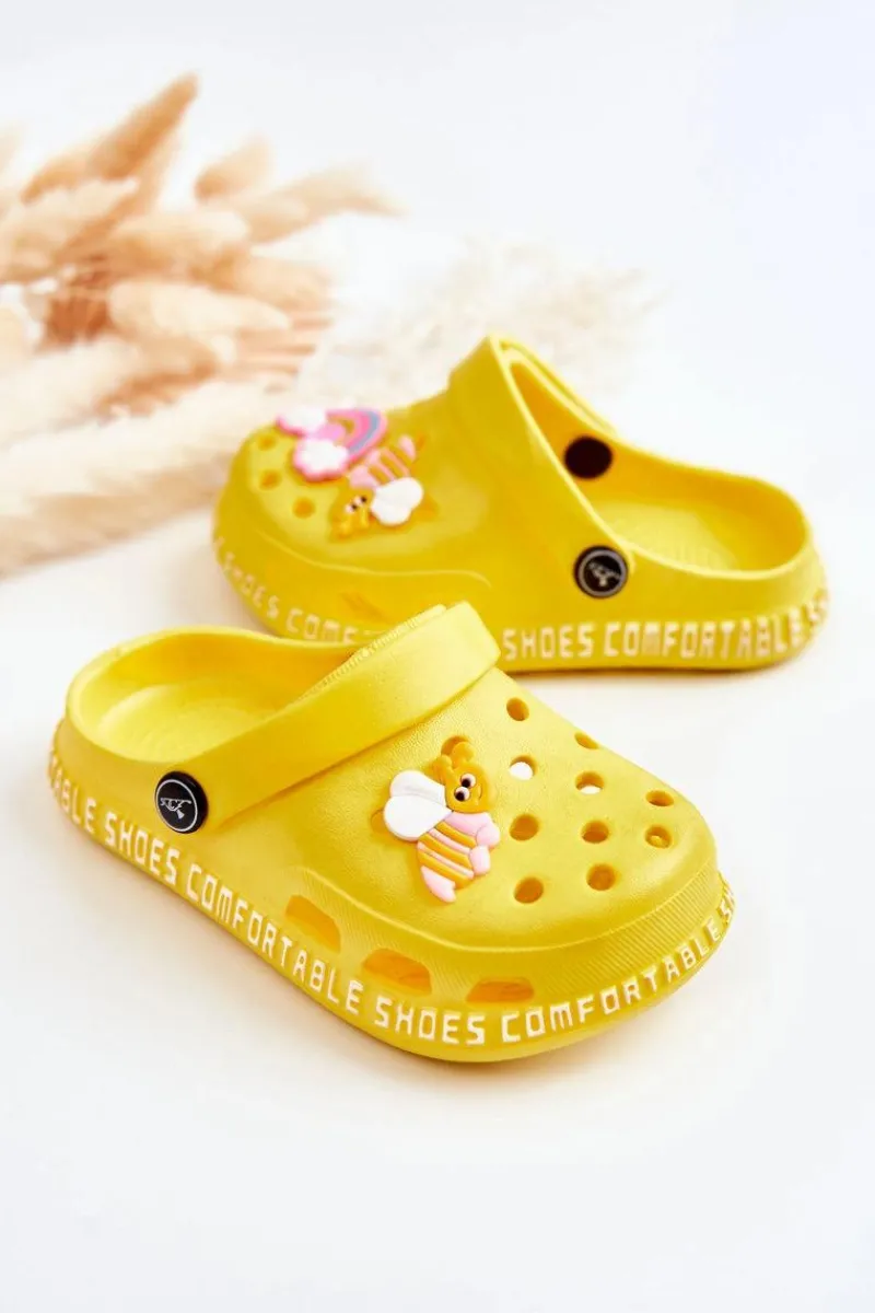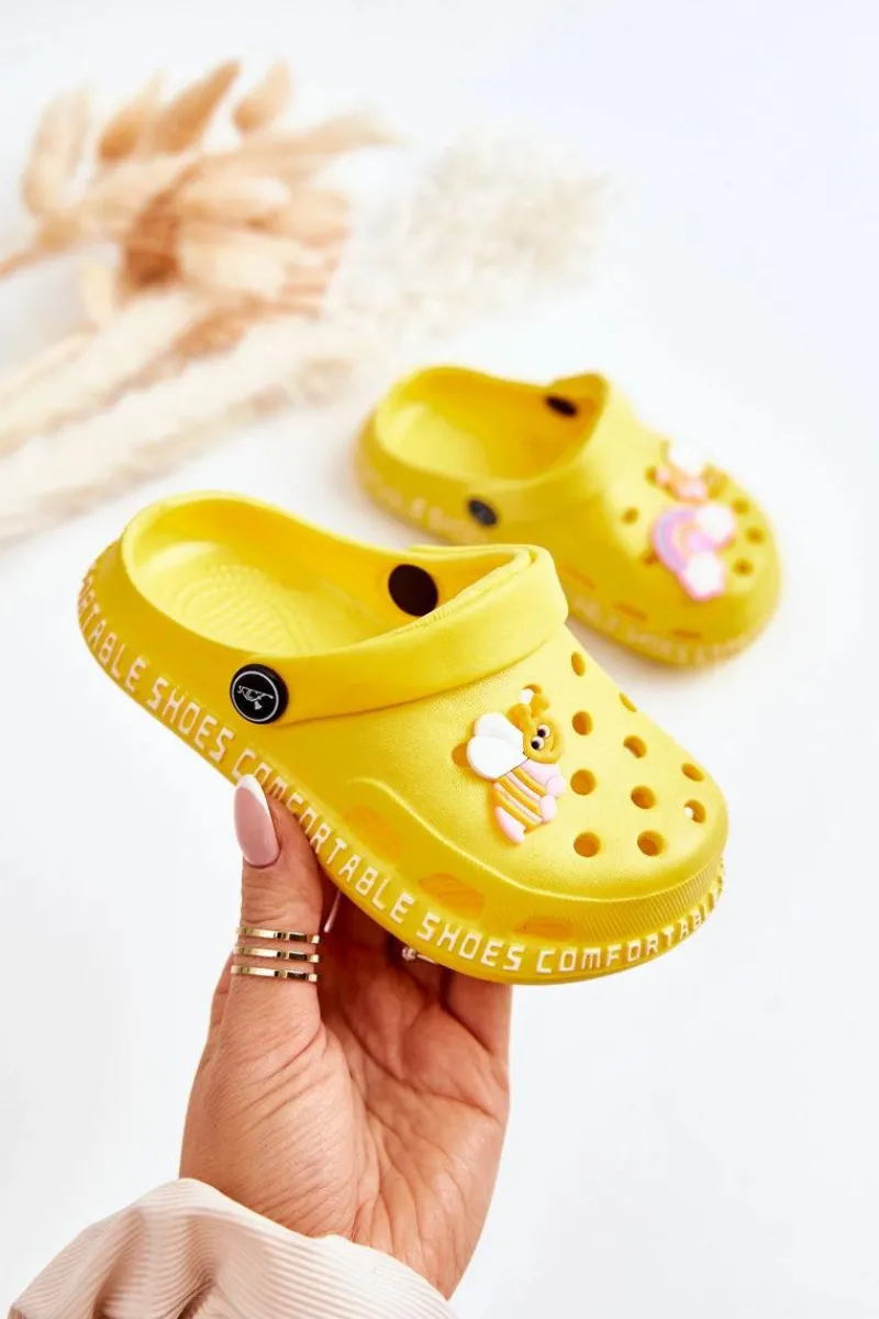 New Boto Dziecięce Lekkie Klapki Kroksy Z Ozdobą Żółte Bertis