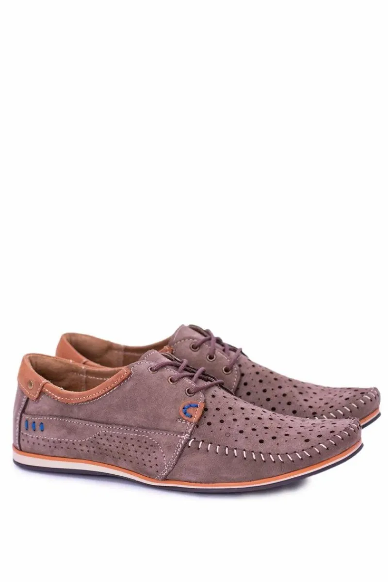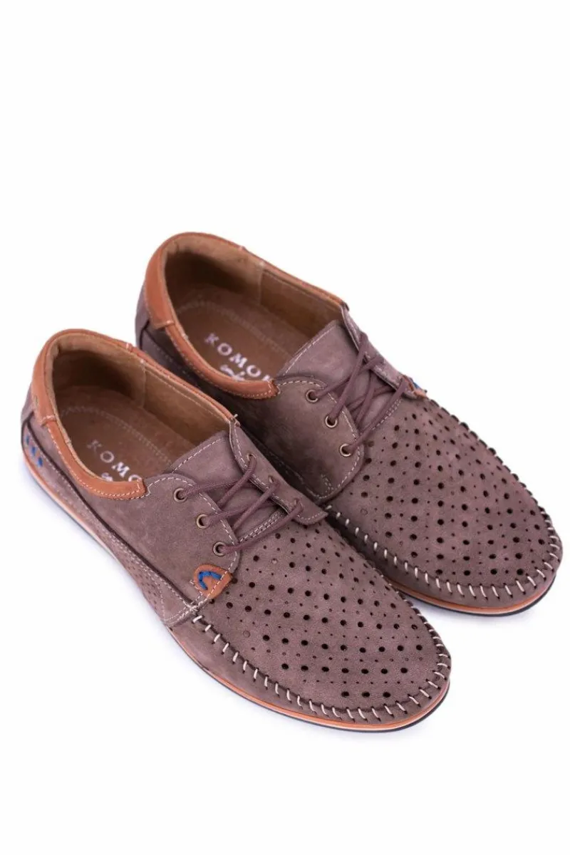 New Boto Dziurkowane Skórzane Mokasyny Półbuty Brąz Mortego