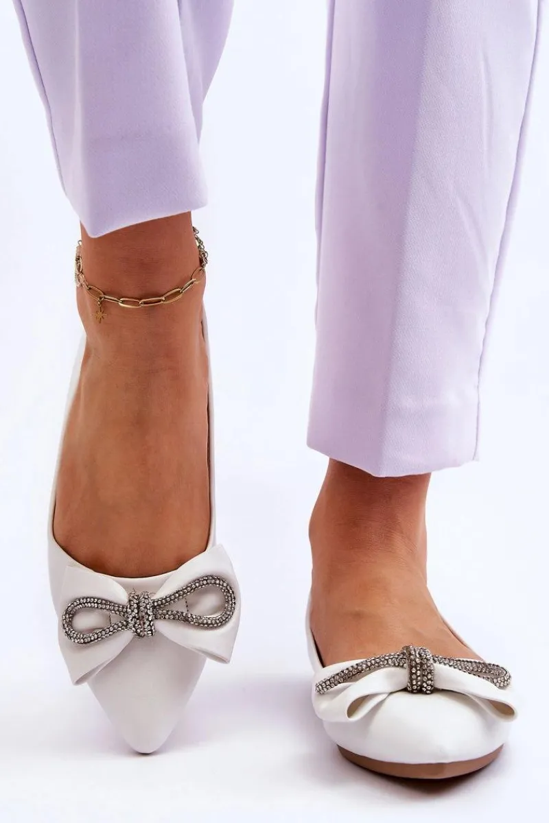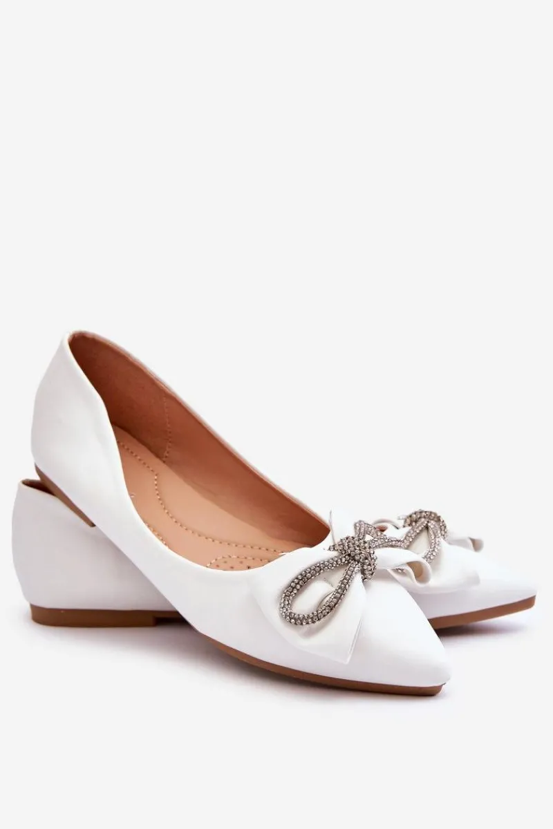 Świetne, damskie baleriny posiadają elegancką kokardę ozdobioną dżetami. Zostały wykonane z eko skóry. Baleriny posiadają miękką, przeszywaną wkładkę z delikatną perforacją. Buty te osadzono na płaskim obcasie. Ten uroczy model z pewnością będzie odpowiedni do wielu stylizacji! Przy wyborze rozmiaru prosimy sugerować się tabelą rozmiarów.