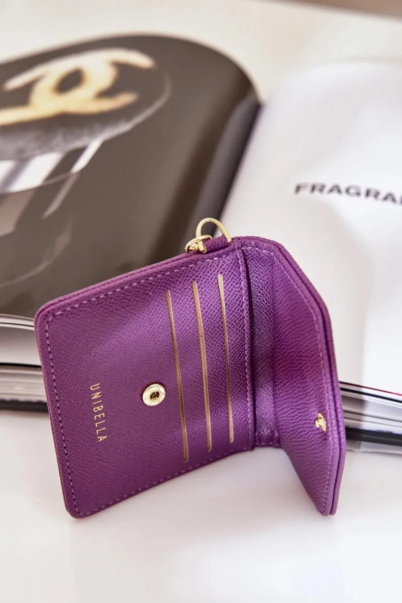 Praktyczne i eleganckie etui na karty wykonane z eko skóry. Zapinane na zatrzask, zapewnia wygodę i bezpieczeństwo przechowywania. Dodatkowym atutem jest ozdobny złoty brelok. Stylowy i funkcjonalny dodatek, idealny do codziennego użytku.