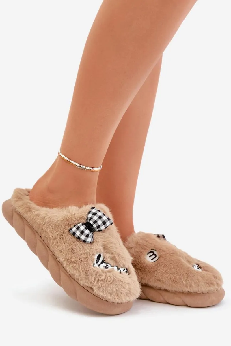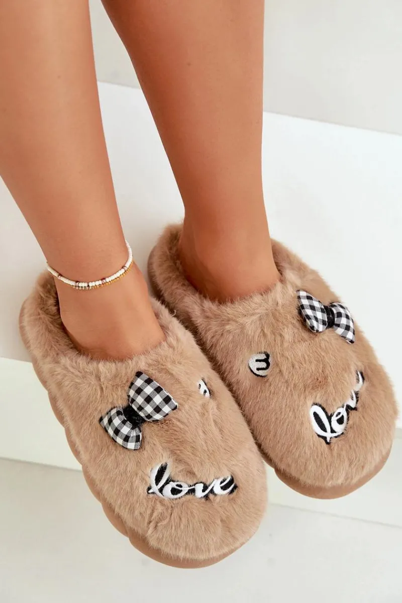 Futrzane kapcie damskie to doskonałe połączenie komfortu i uroku. Wykonane z miękkiego, przytulnego futerka, zapewniają ciepło i wygodę podczas noszenia. Dodatkową ozdobą są urocze naszywki oraz delikatna kokardka, które nadają wyjątkowego, stylowego charakteru. Idealne do noszenia w domu, świetnie sprawdzą się w chłodniejsze dni, zapewniając jednocześnie modny wygląd. Przy wyborze rozmiaru prosimy sugerować się tabelą rozmiarów.