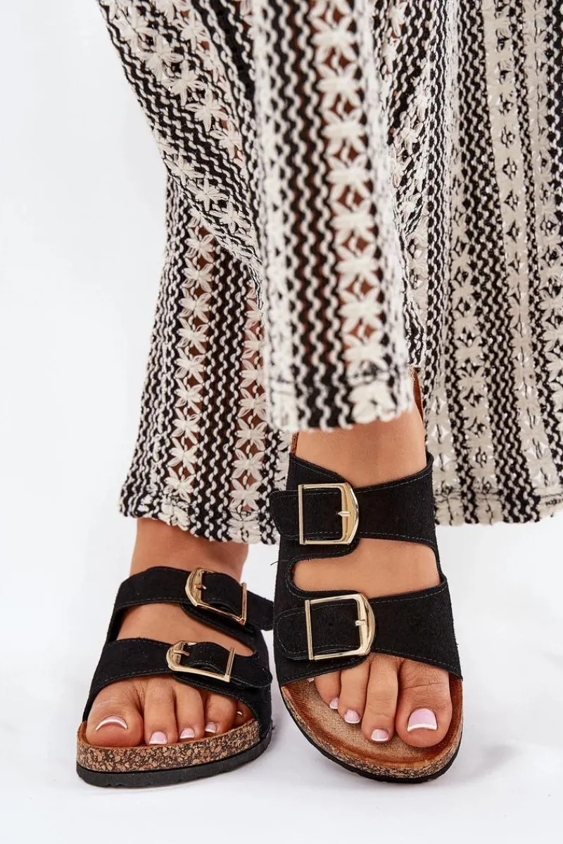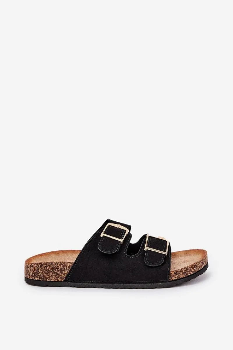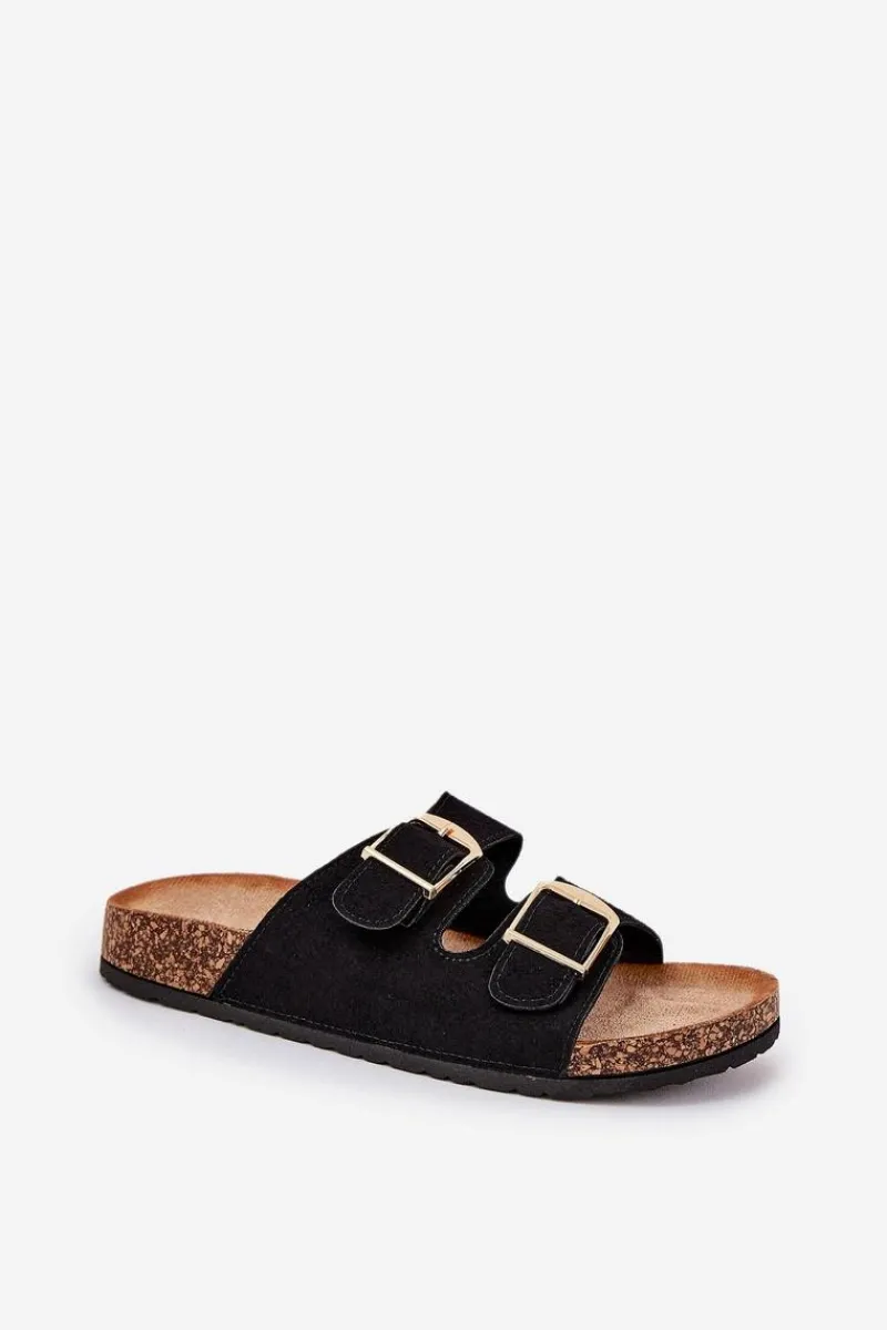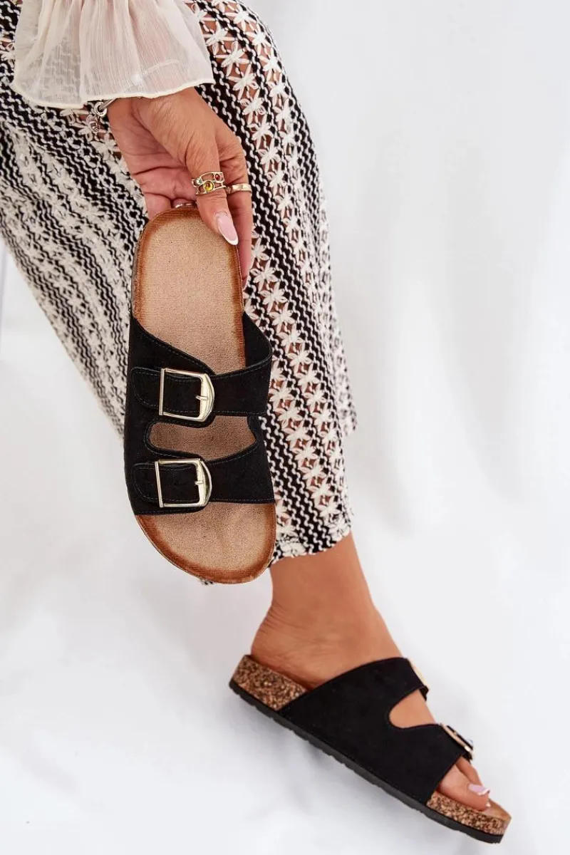 Stylowe klapki damskie na korkowej platformie, które łączą wygodę z modnym wyglądem. Z przodu znajdują się dwa paski z klamrami, które zapewniają idealne dopasowanie. Profilowana eko zamszowa wkładka gwarantuje komfort przez cały dzień. Te klapki będą doskonałym wyborem na letnie dni, świetnie komponując się z sukienkami, spódnicami i spodniami. Przy wyborze rozmiaru prosimy sugerować się tabelą rozmiarów.