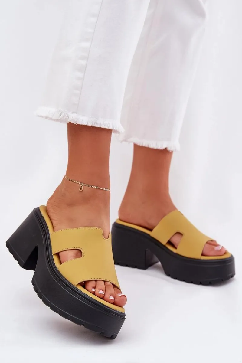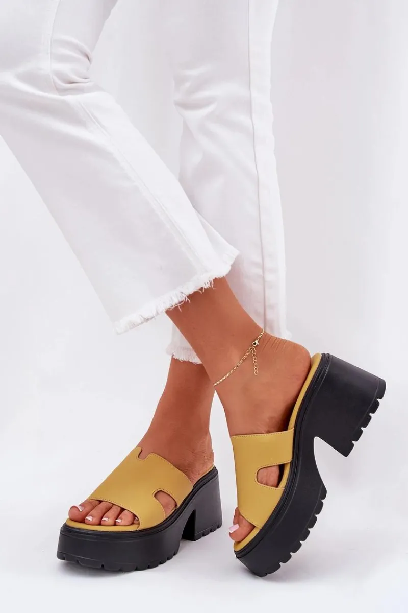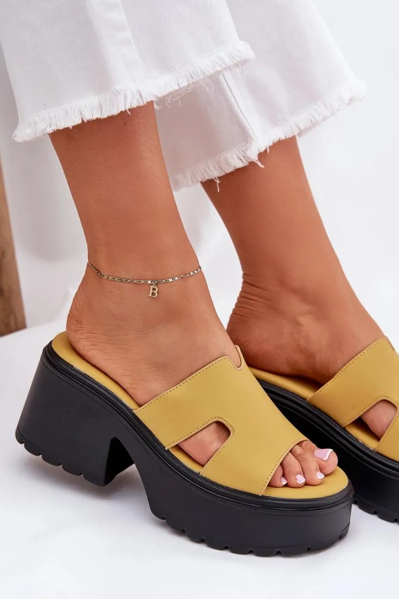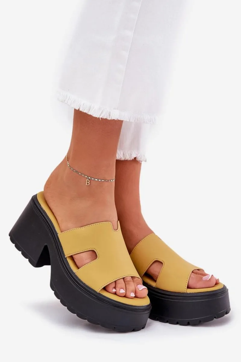Stylowe klapki damskie wykonane z eko skóry. Osadzone na platformie i masywnym, stabilnym obcasie. Z przodu, na pasku, posiadają subtelne wycięcia, które nadają im modnego, nowoczesnego charakteru. Miękka wkładka zapewnia komfort noszenia przez cały dzień. Doskonały wybór na letnie dni, te klapki będą idealnym dopełnieniem codziennych stylizacji. Przy wyborze rozmiaru prosimy sugerować się tabelą rozmiarów.