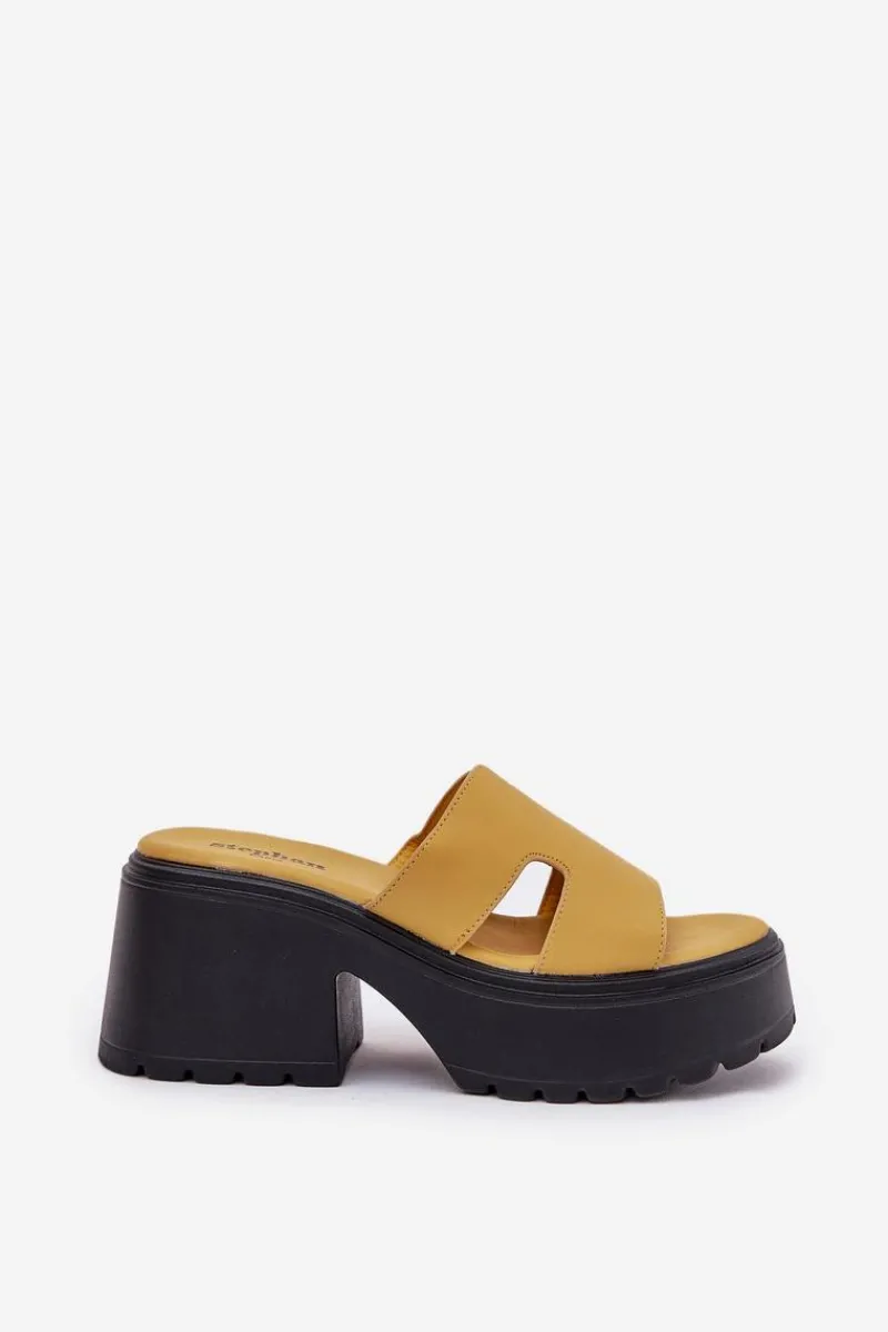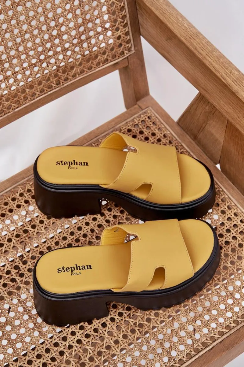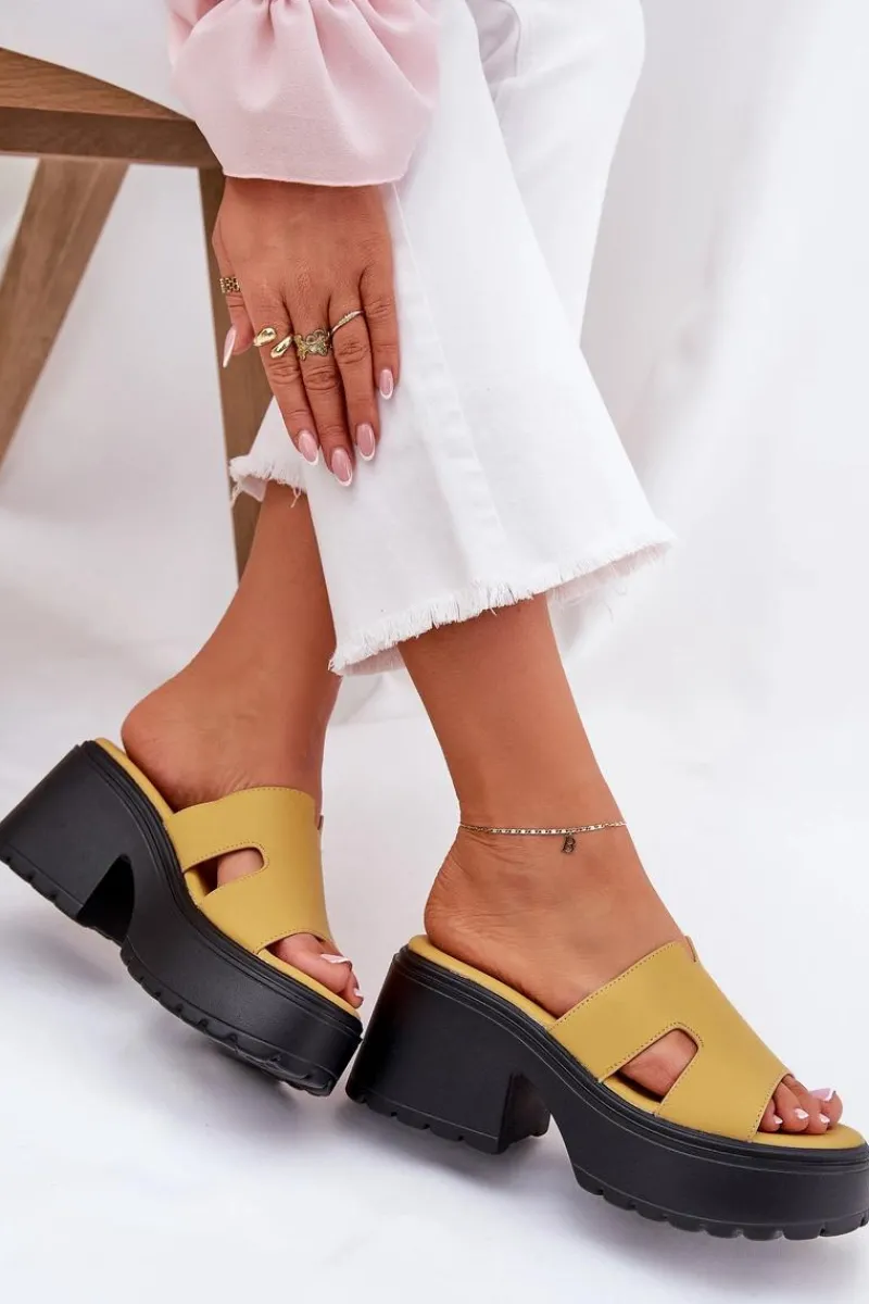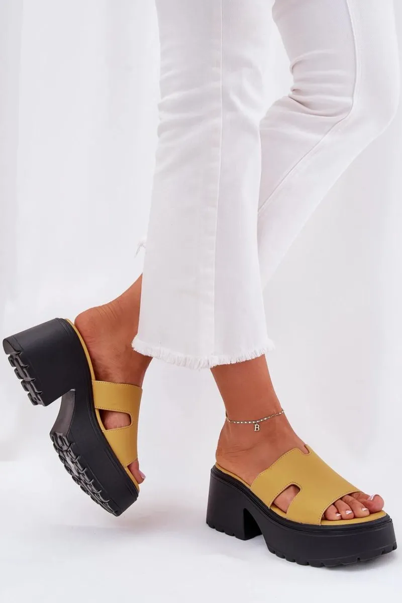 Stylowe klapki damskie wykonane z eko skóry. Osadzone na platformie i masywnym, stabilnym obcasie. Z przodu, na pasku, posiadają subtelne wycięcia, które nadają im modnego, nowoczesnego charakteru. Miękka wkładka zapewnia komfort noszenia przez cały dzień. Doskonały wybór na letnie dni, te klapki będą idealnym dopełnieniem codziennych stylizacji. Przy wyborze rozmiaru prosimy sugerować się tabelą rozmiarów.