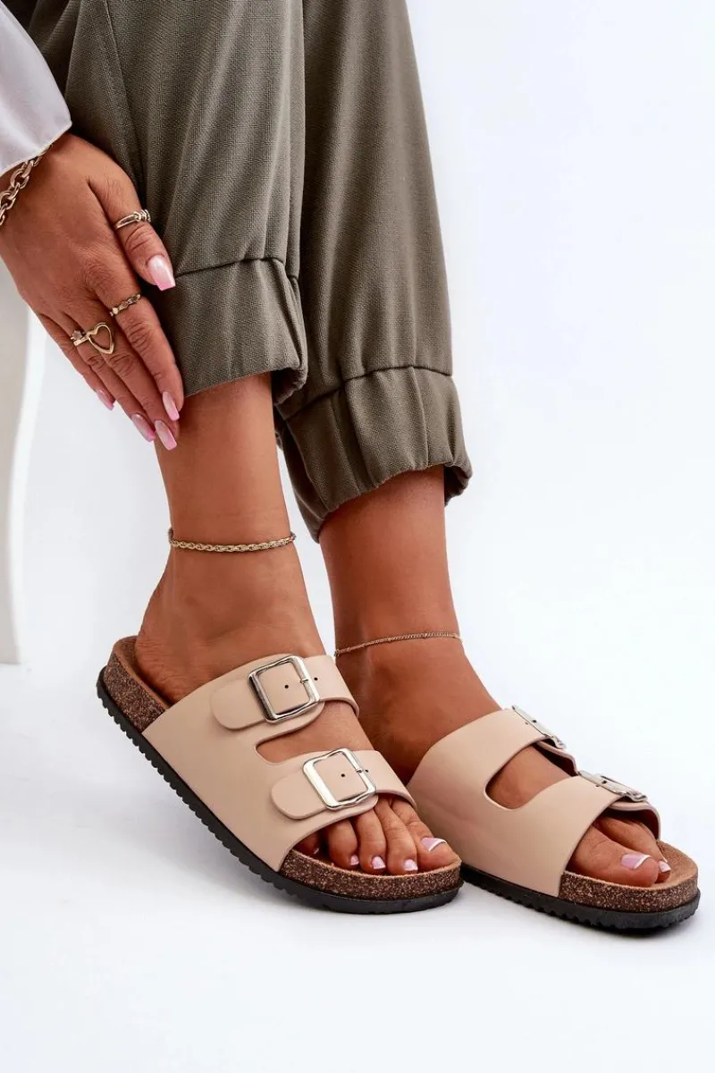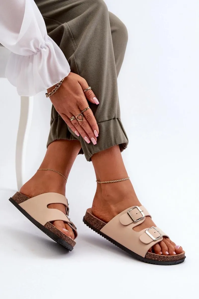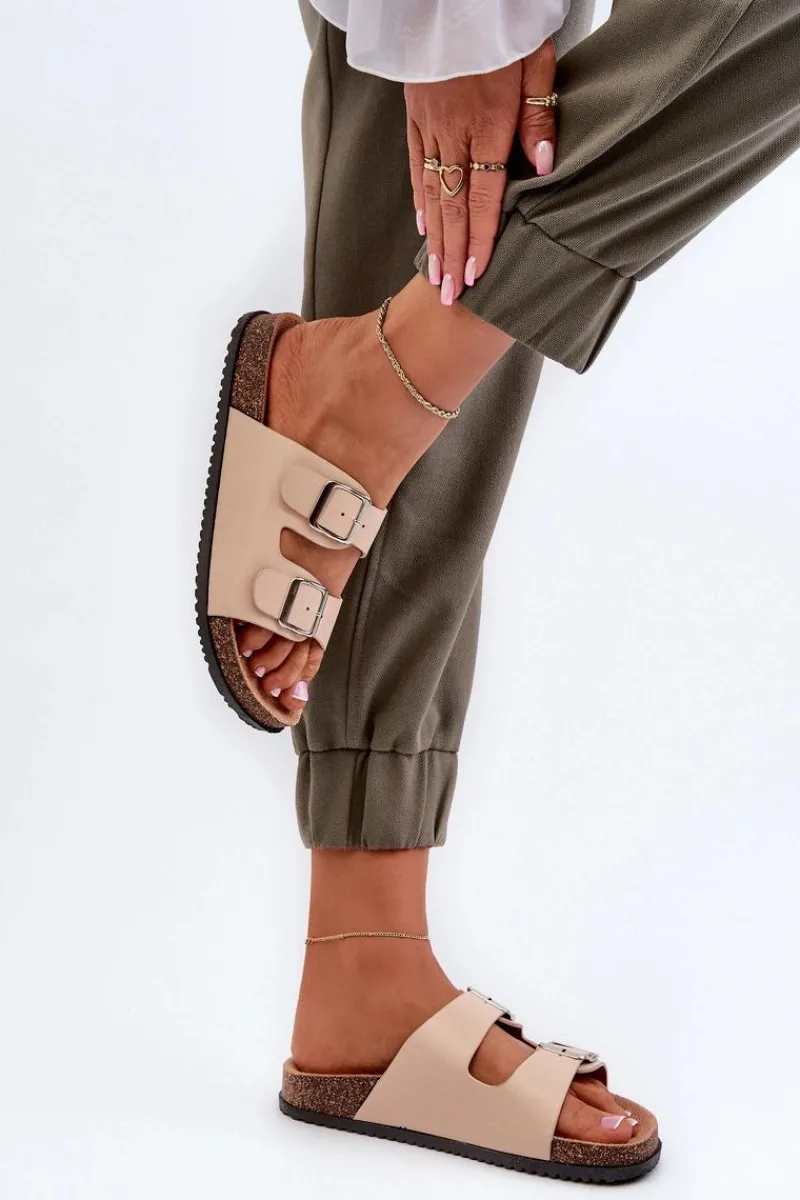 New Boto Klapki Damskie Z Klamrami Beżowe Oliena Beżowy