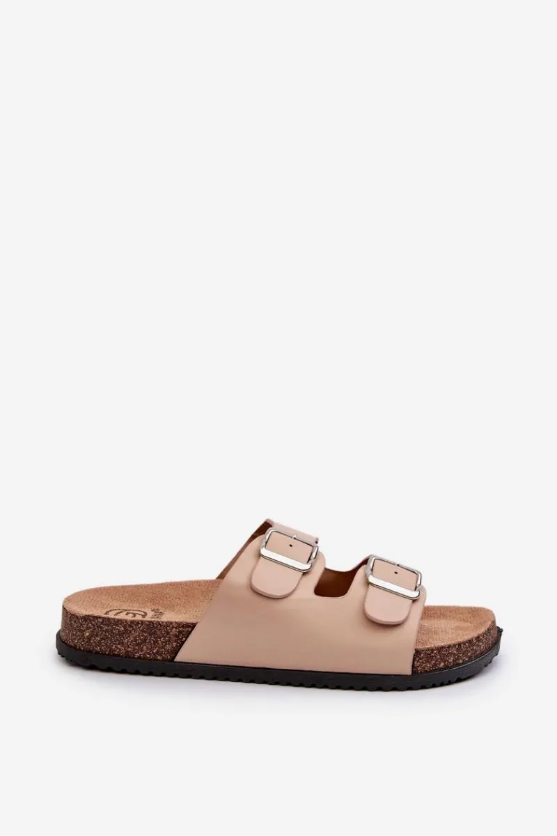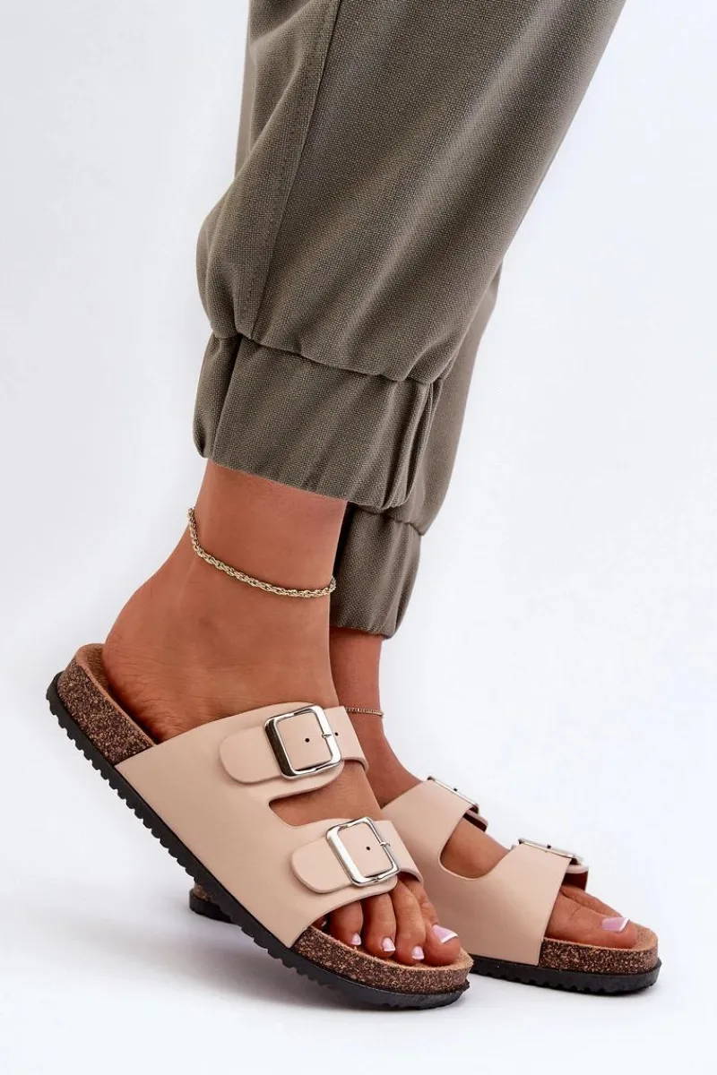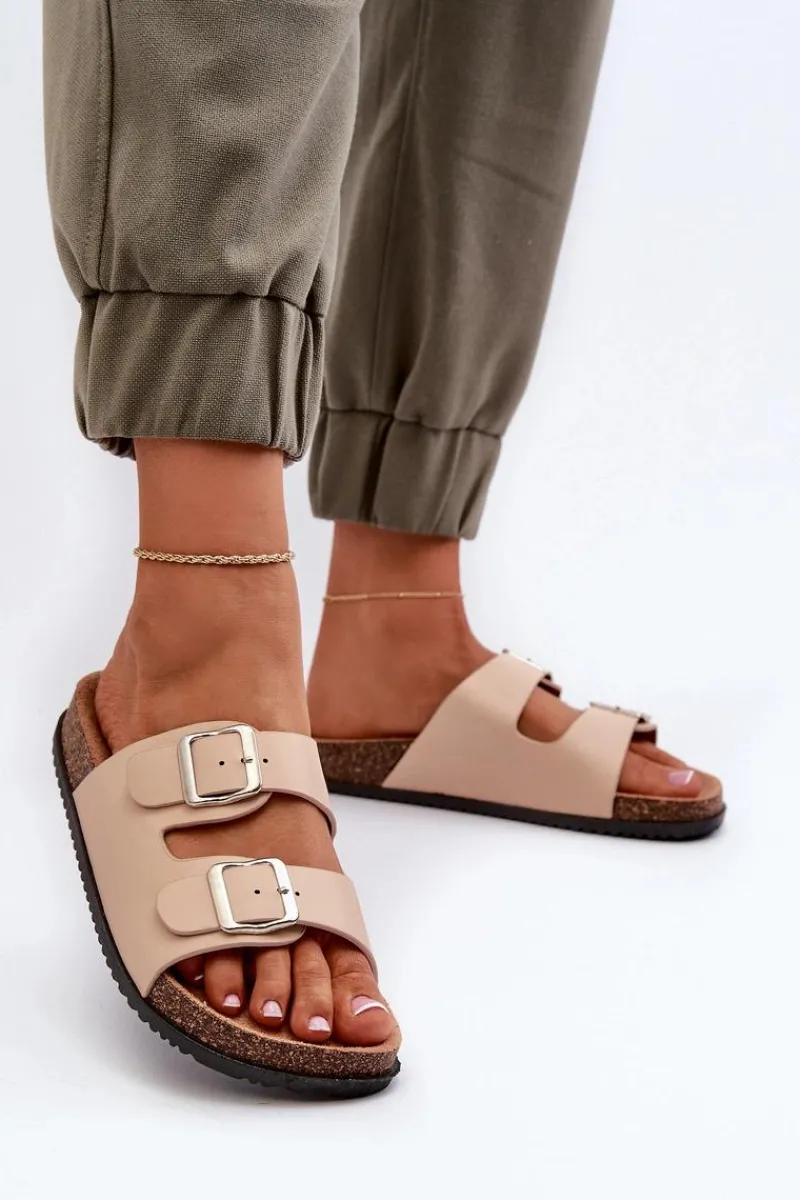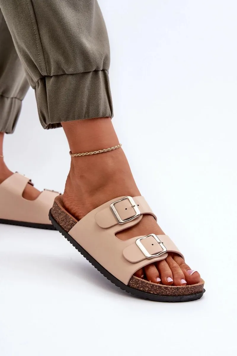 New Boto Klapki Damskie Z Klamrami Beżowe Oliena Beżowy