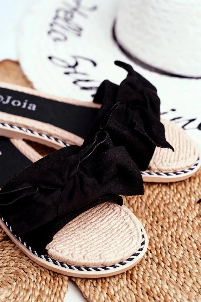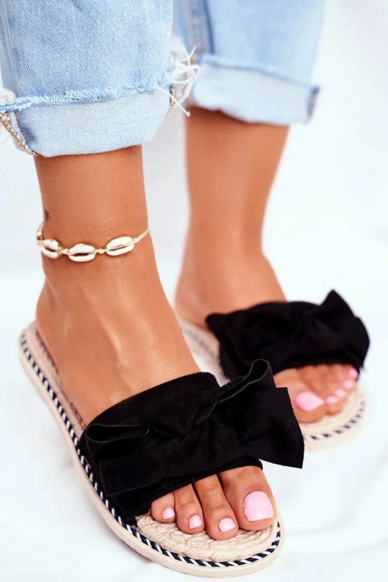 New Boto Klapki Damskie Z Kokardką Czarne Happiness