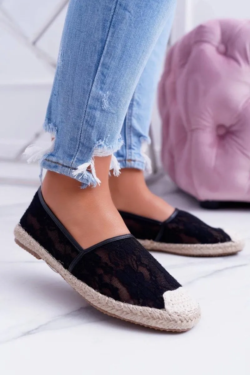 New Boto Lu Boo | Czarne Koronkowe Espadryle Tenisówki Hilary