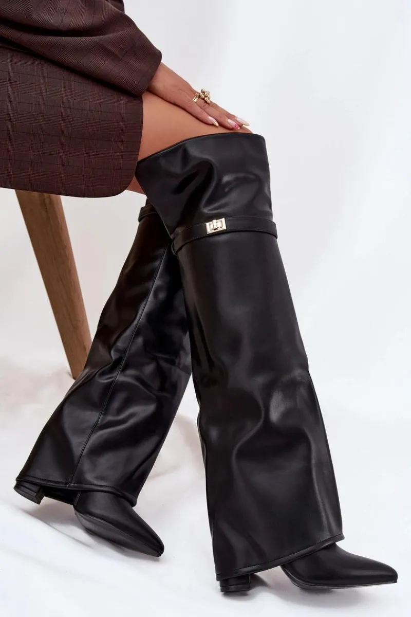 Kozaki damskie z wywiniętą cholewką to prawdziwy hit nadchodzącego sezonu jesienno-zimowego! Cholewka sięga za kolano i nachodzi na obcas dodaje im niepowtarzalnego charakteru. Osadzone na stabilnym obcasie typu słupek, zapewniają komfort i elegancję, a ocieplenie gwarantuje ciepło w chłodniejsze dni. Wsuwane i z noskami w szpic, łączą w sobie wygodę z modnym, kobiecym stylem – idealne do tworzenia efektownych, zimowych stylizacji. Przy wyborze rozmiaru prosimy sugerować się tabelą rozmiarów.