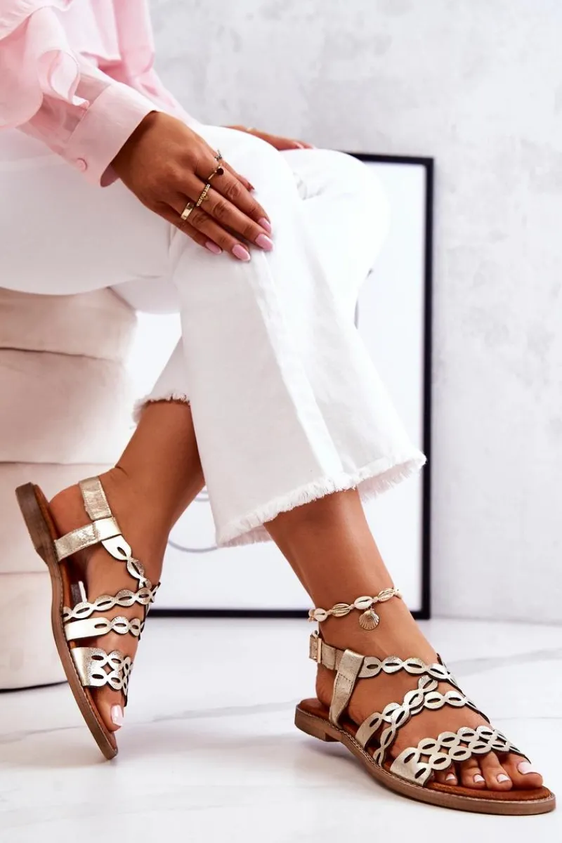 New Boto Skórzane Ażurowe Sandały Lewski 3022 Złote