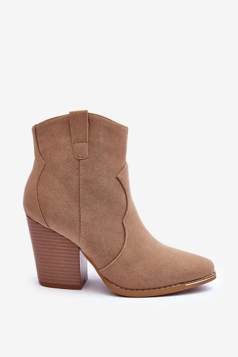 New Boto Skórzane Botki Kowbojki Na Obcasie Beżowe Lotoune