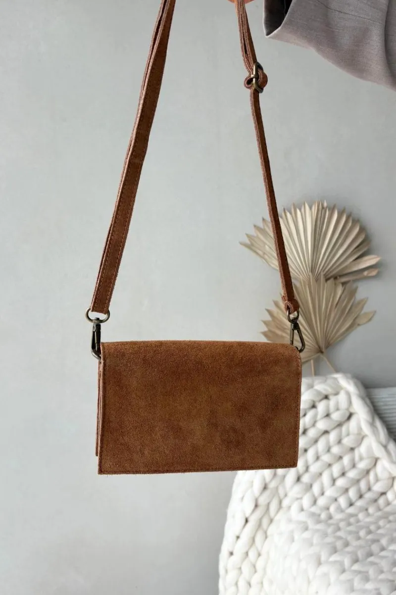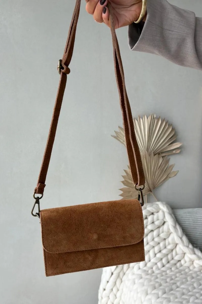 Mała torebka wykonana z naturalnego zamszu to elegancki i uniwersalny dodatek, który sprawdzi się zarówno na co dzień, jak i przy wyjątkowych okazjach. Model zapinany na klips magnetyczny jest wygodny w użytkowaniu, a odpinany, regulowany pasek pozwala dopasować sposób noszenia do indywidualnych potrzeb – na ramieniu lub w dłoni. Dzięki kompaktowemu rozmiarowi i ponadczasowemu fasonowi torebka świetnie uzupełni różnorodne stylizacje, dodając im klasy i subtelnej elegancji.