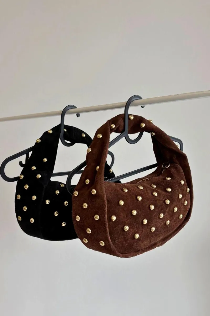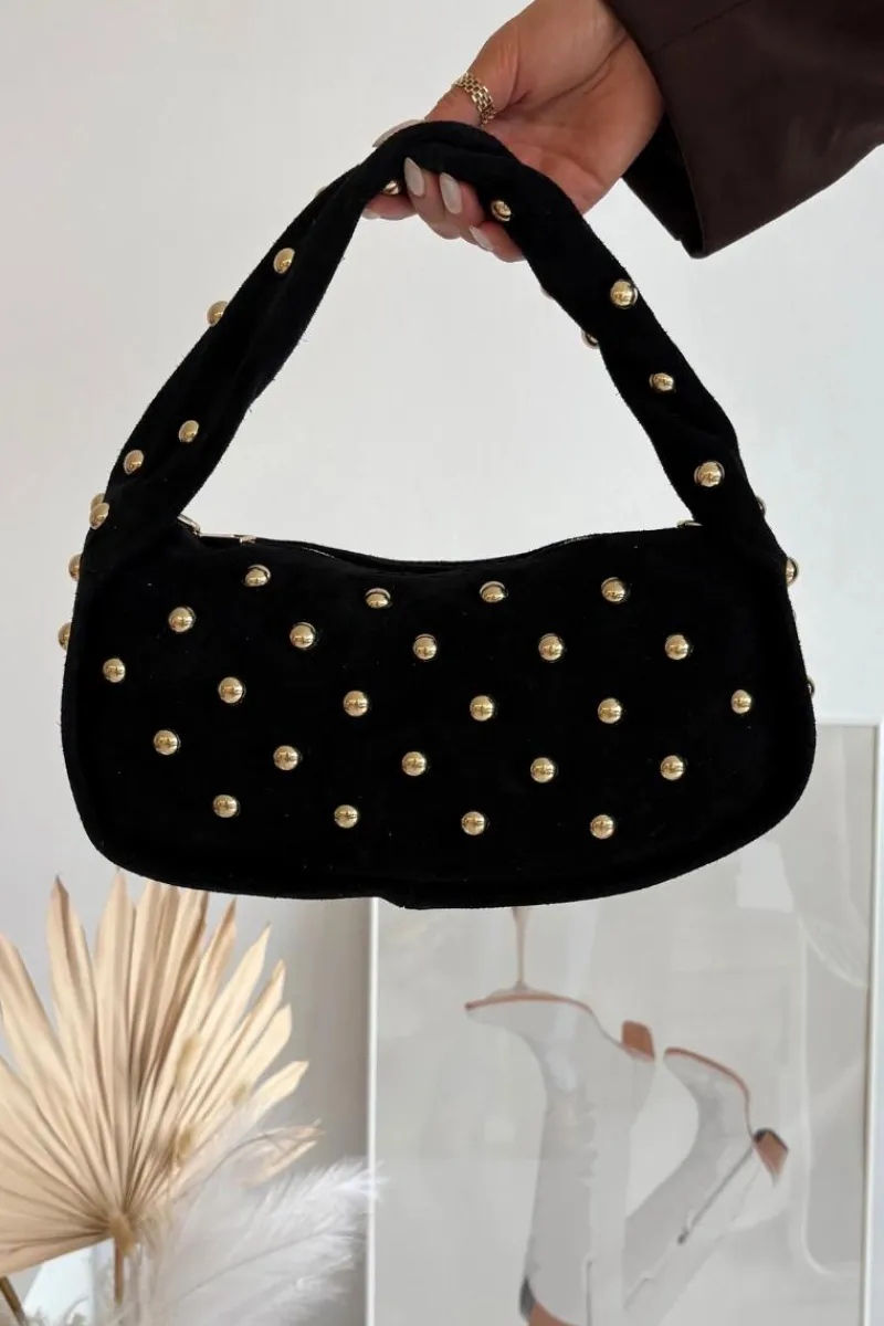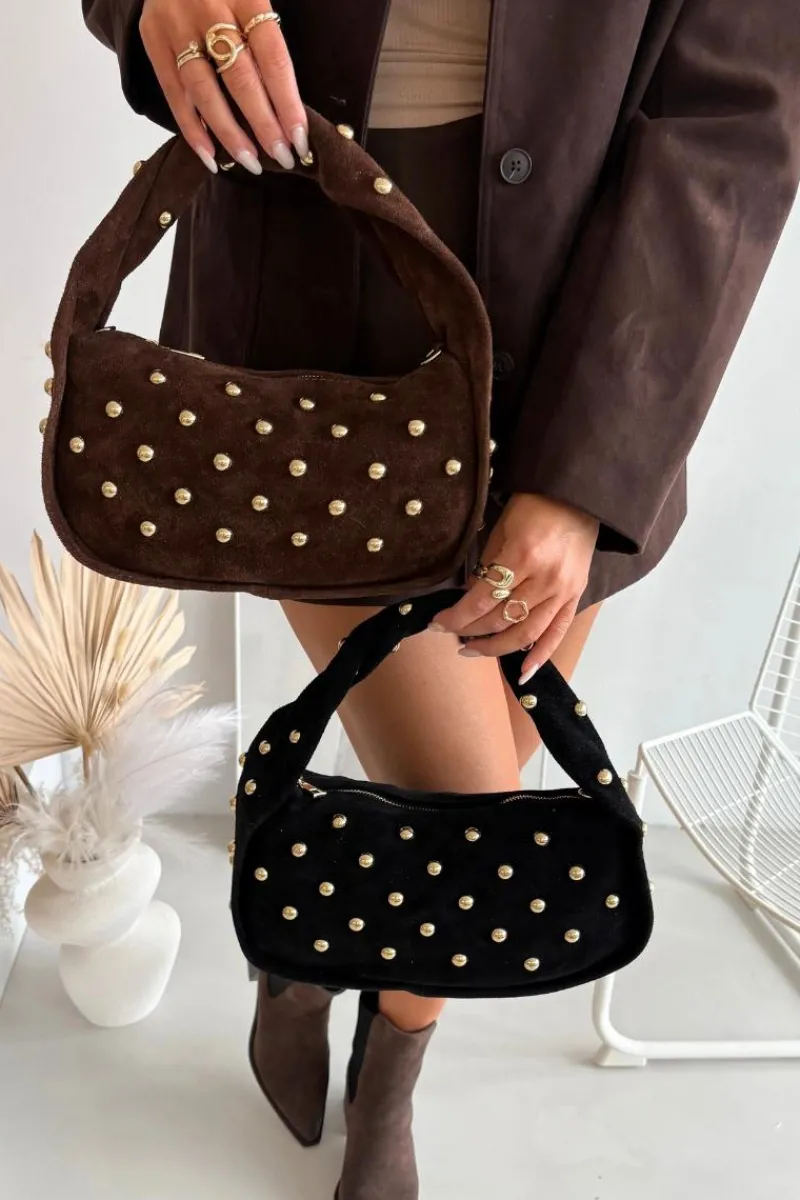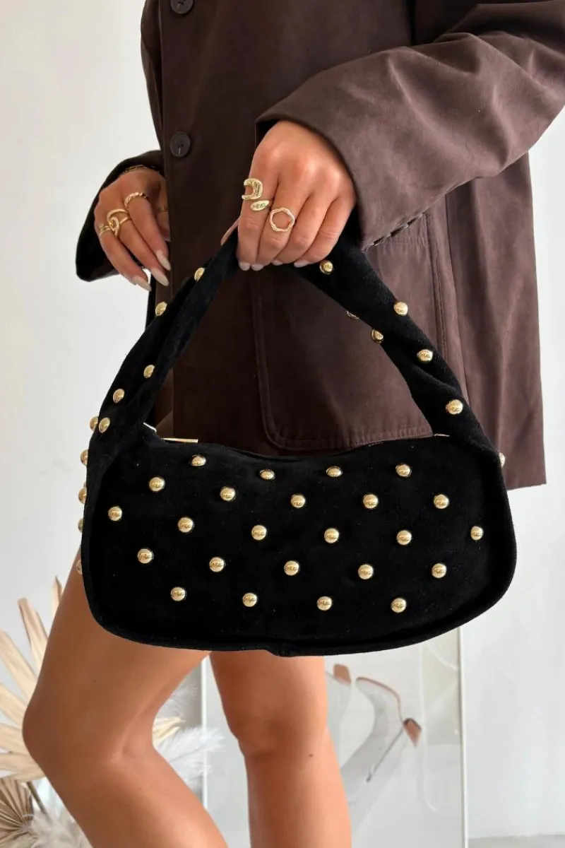 Torebka wykonana z naturalnego zamszu to elegancki dodatek, który podkreśli każdą stylizację. Złote zdobienie nadaje jej nowoczesnego charakteru. Model zapinany na zamek jest praktyczny i bezpieczny w użytkowaniu. Torebka posiada dodatkowy, odpinany i regulowany pasek, dzięki czemu można nosić ją na ramieniu lub w dłoni. Stylowy fason sprawia, że doskonale sprawdzi się zarówno na co dzień, jak i przy bardziej eleganckich okazjach.