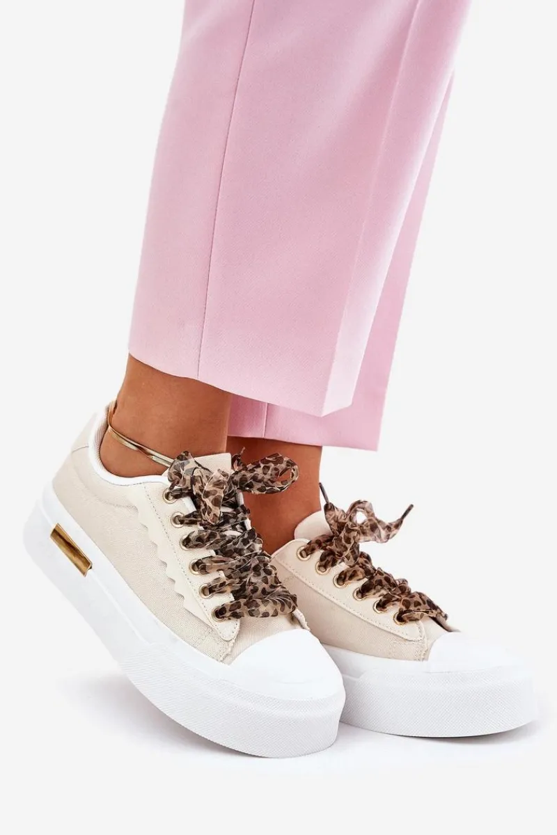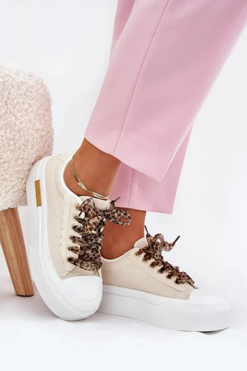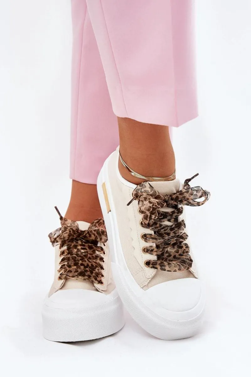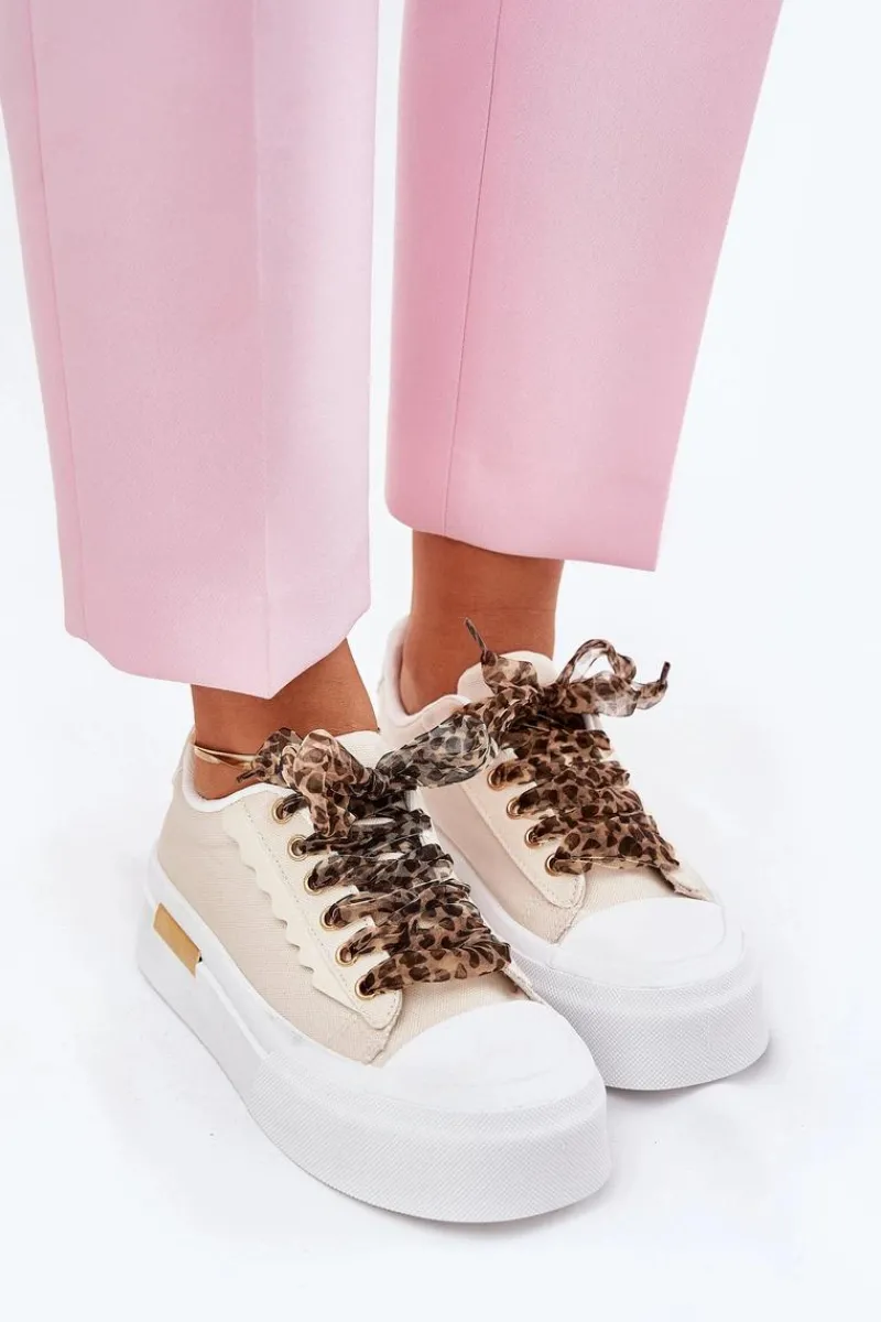 Trampki damskie wykonane z materiału tekstylnego. Osadzone na masywnej platformie, które łączą wygodę z modnym wyglądem. Model wyróżnia się ozdobnym sznurowaniem, które dodaje im charakteru, a zaokrąglone noski zapewniają komfort. Piankowa wkładka pokryta materiałem gwarantuje wygodę przez cały dzień. Idealne do codziennych stylizacji, te trampki będą doskonałym wyborem na każdą okazję. Przy wyborze rozmiaru prosimy sugerować się tabelą rozmiarów.