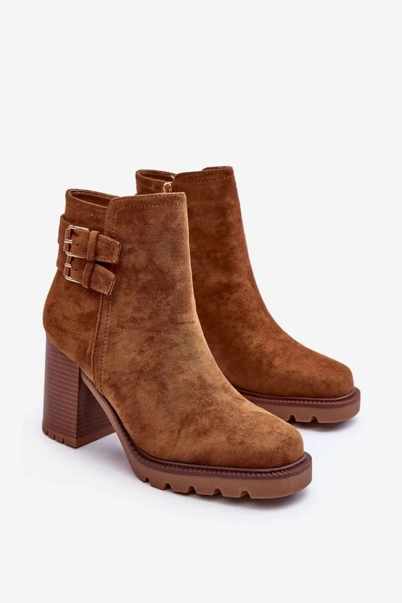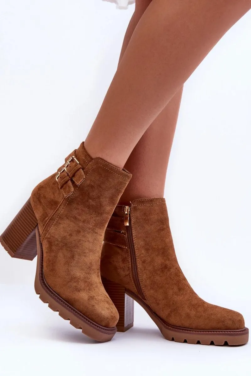 New Boto Zamszowe Botki Na Obcasie Brązowe Makeline Brązowy