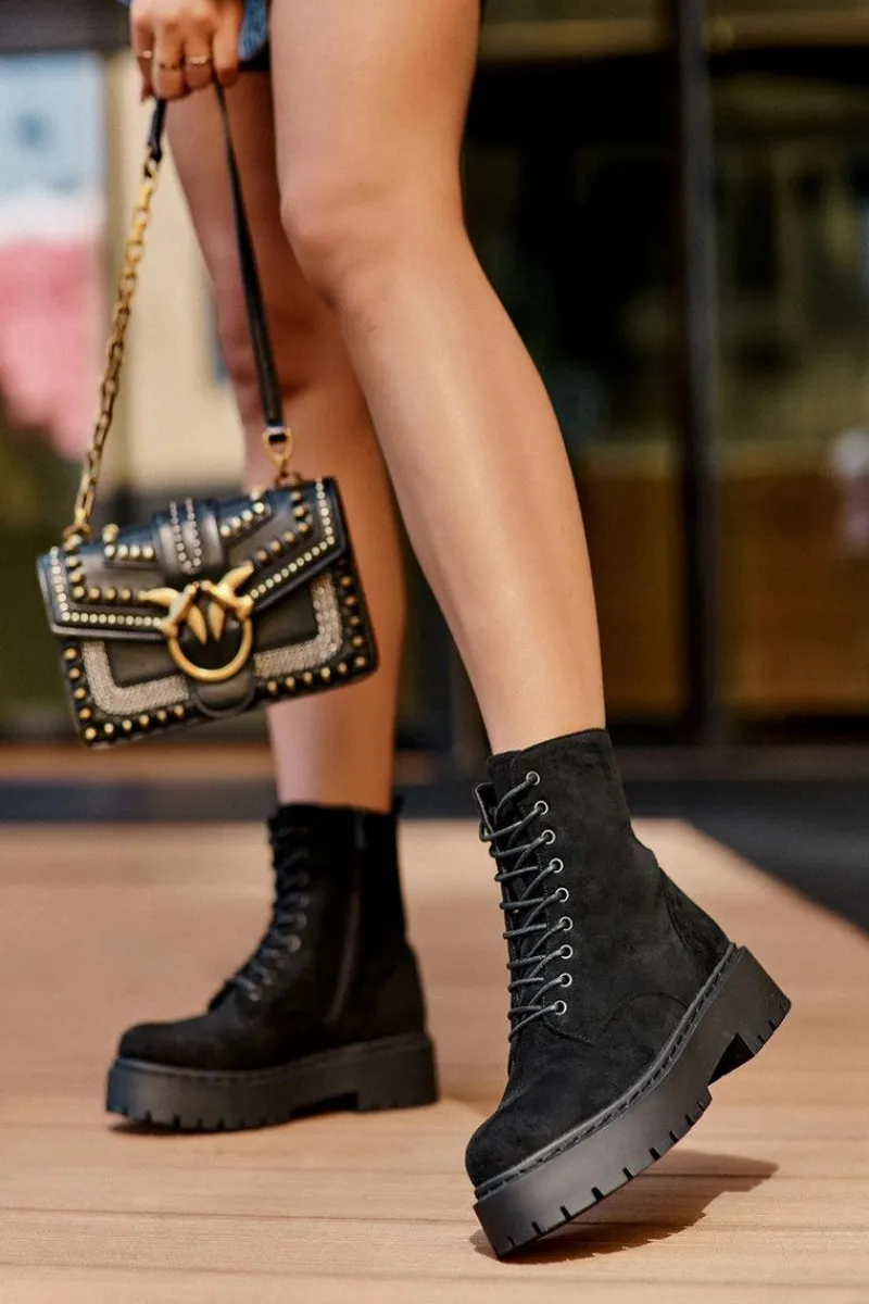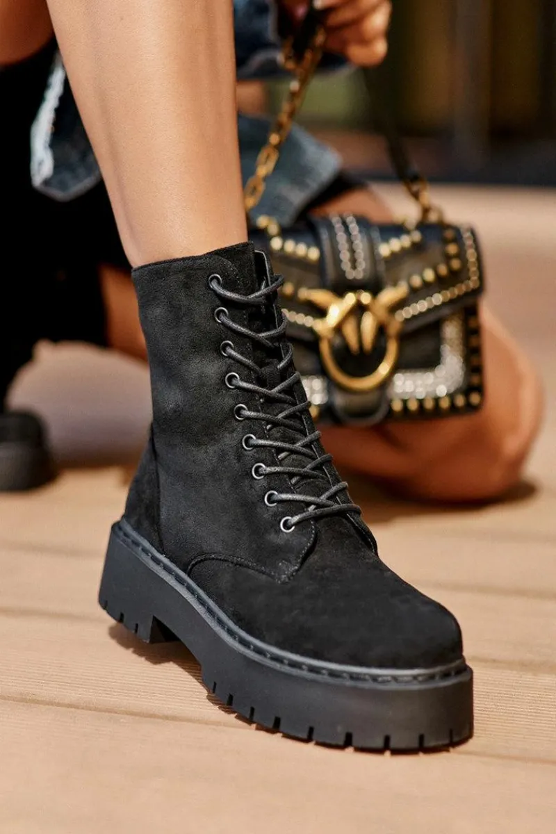 New Boto Zamszowe Botki Workery Damskie Czarne Dearia