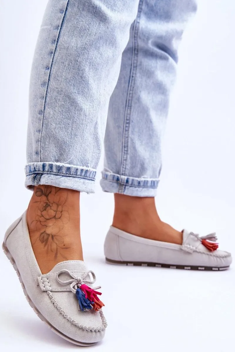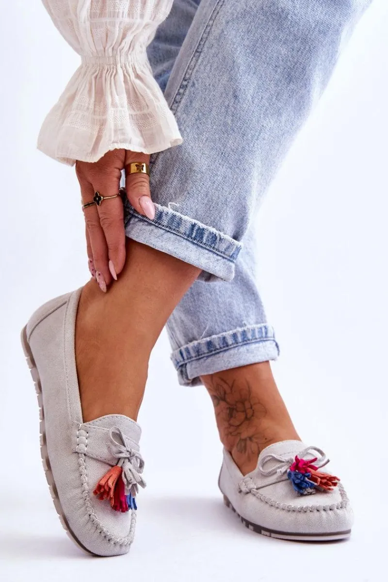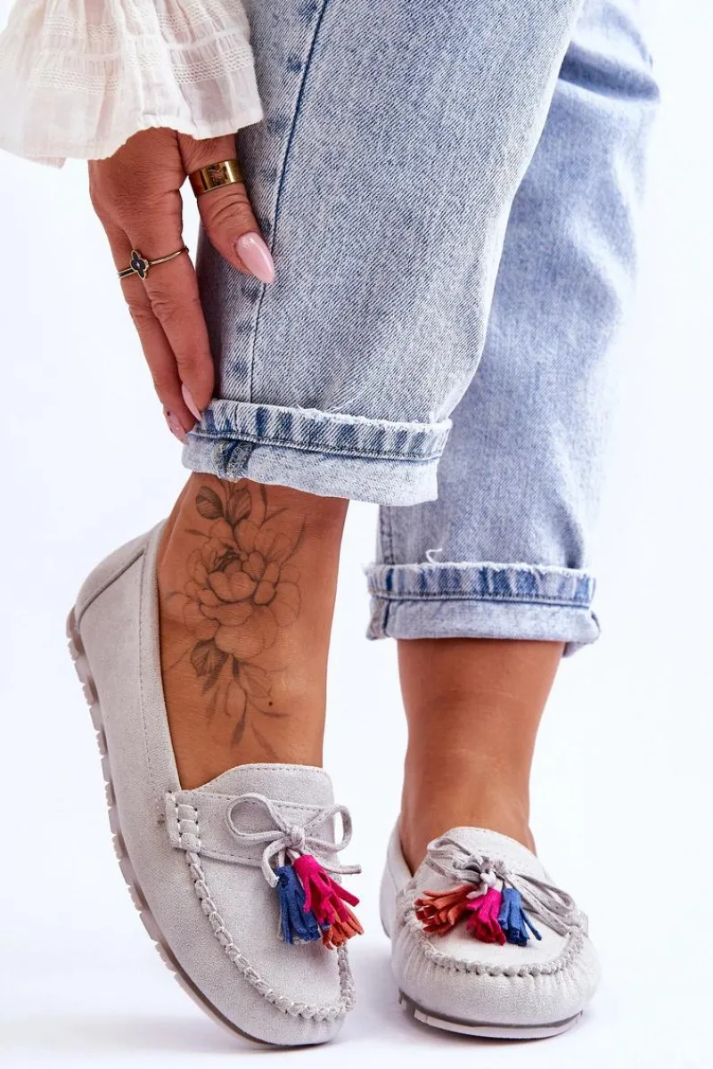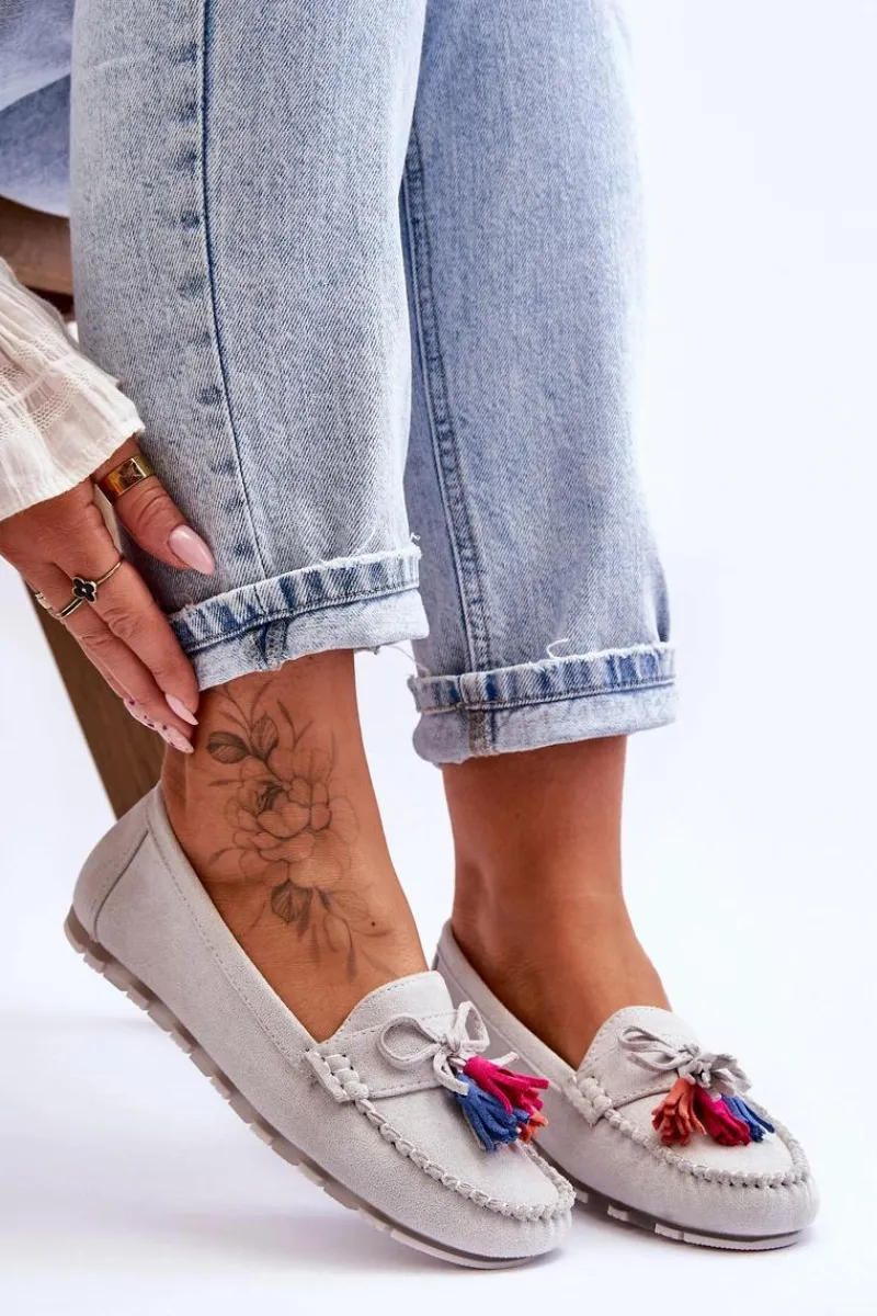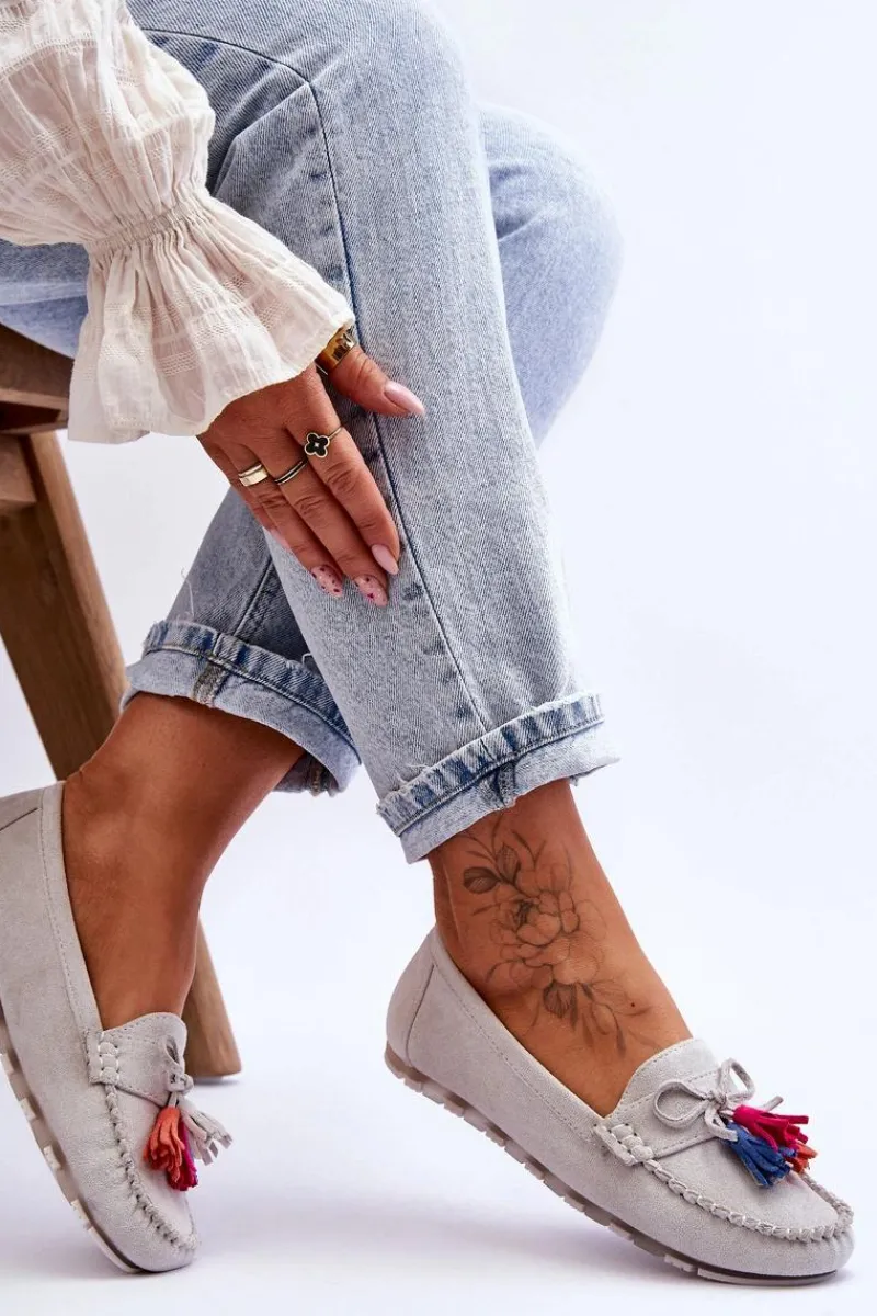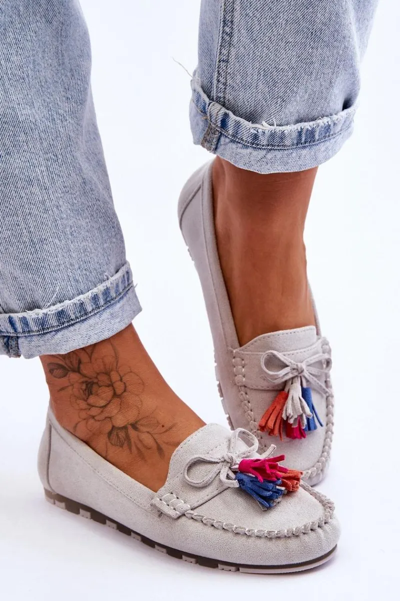 Niesamowicie wygodne mokasyny damskie zostały wykonane z eko zamszu. Wkładka z naturalnej skóry zapewni wygodę podczas użytkowania. Te fason dopełni wiele Twoich stylizacji. Mokasyny zostały osadzone na delikatnej platformie. Dodatkowo mokasyny posiadają ozdobną kokardę i frędzle. Przy wyborze rozmiaru prosimy sugerować się tabelą rozmiarów.