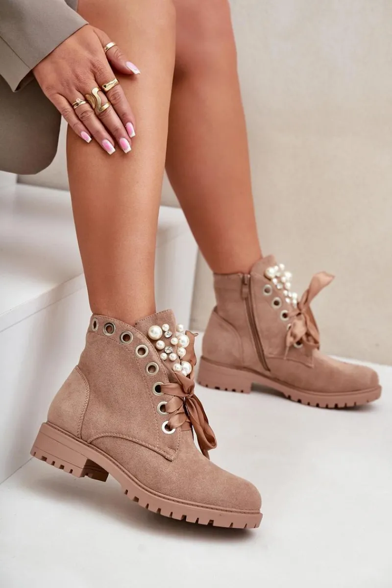 Wyjątkowe botki damskie wykonane z eko skóry. Wnętrze ocieplone pianką pokrytą materiałem. Model wyróżnia się krojem cholewki oraz ozdobami. Przy wyborze rozmiaru prosimy sugerować się tabelą rozmiarów.