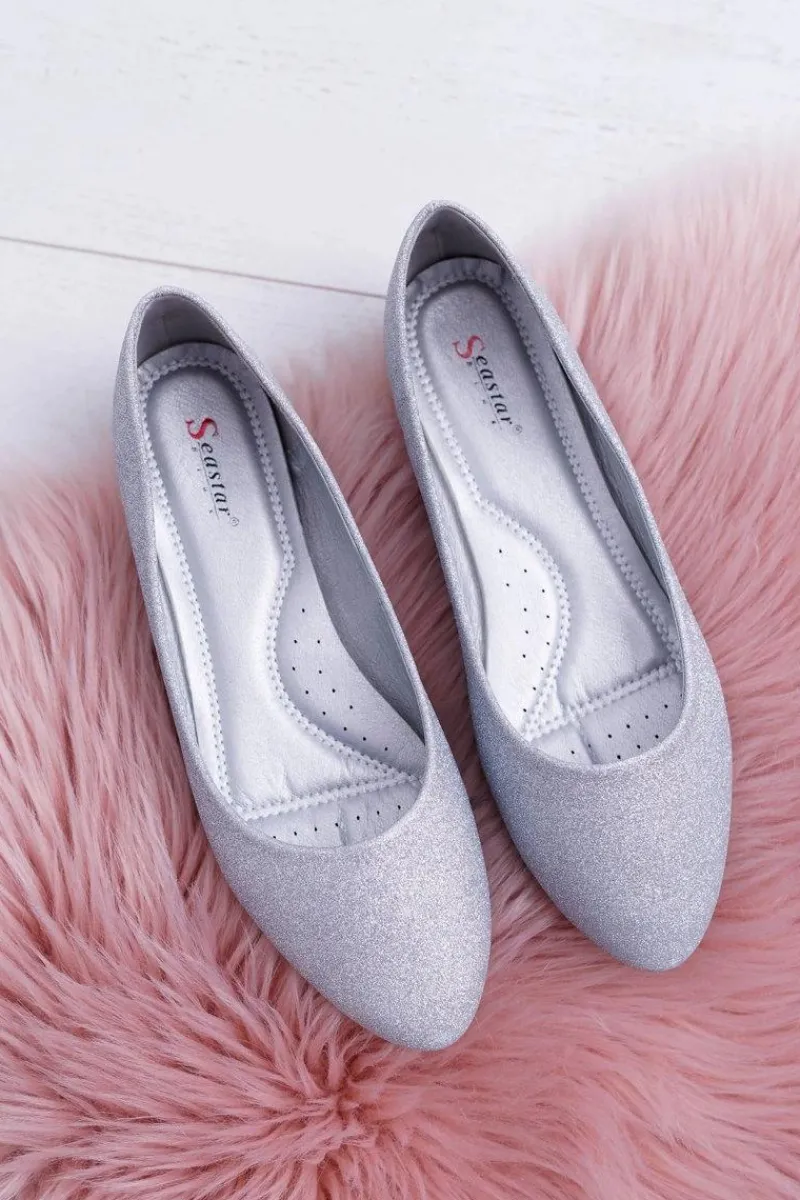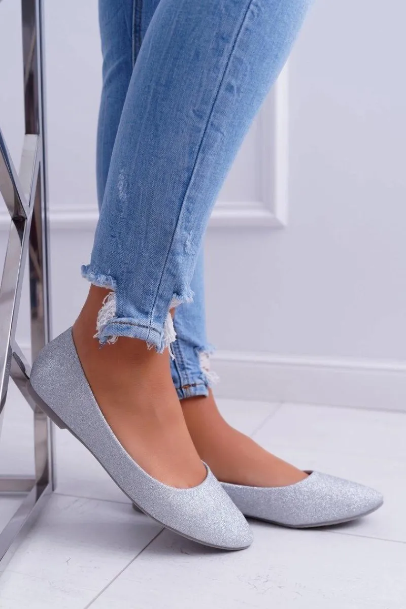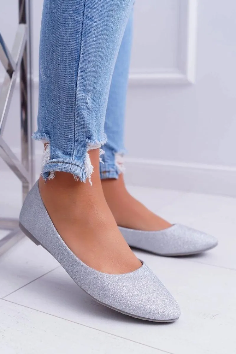 Delikatne baleriny ozdobione brokatem. Buty wykonane są ze skóry ekologicznej, posiadają profilowaną wkładkę. Przy wyborze rozmiaru prosimy sugerować się tabelą rozmiarów.